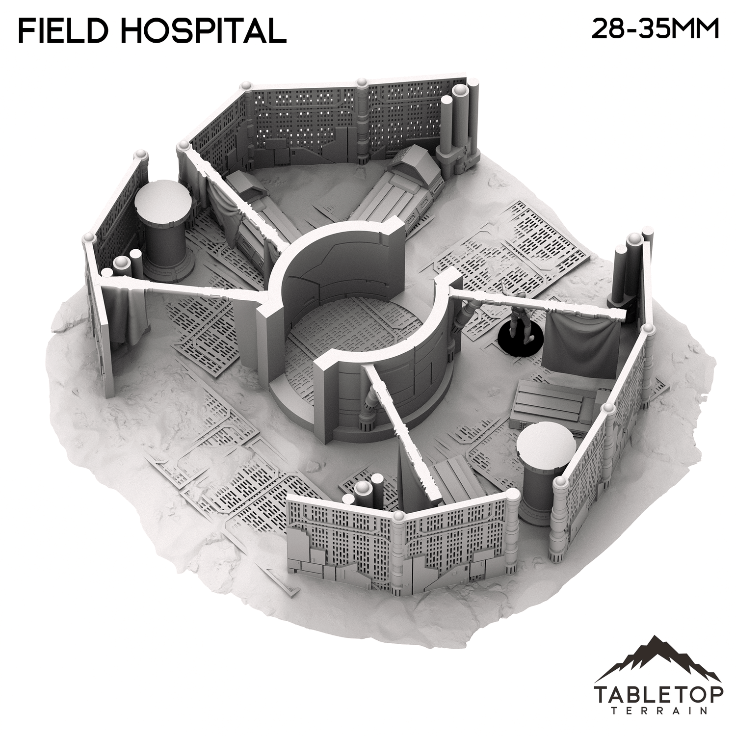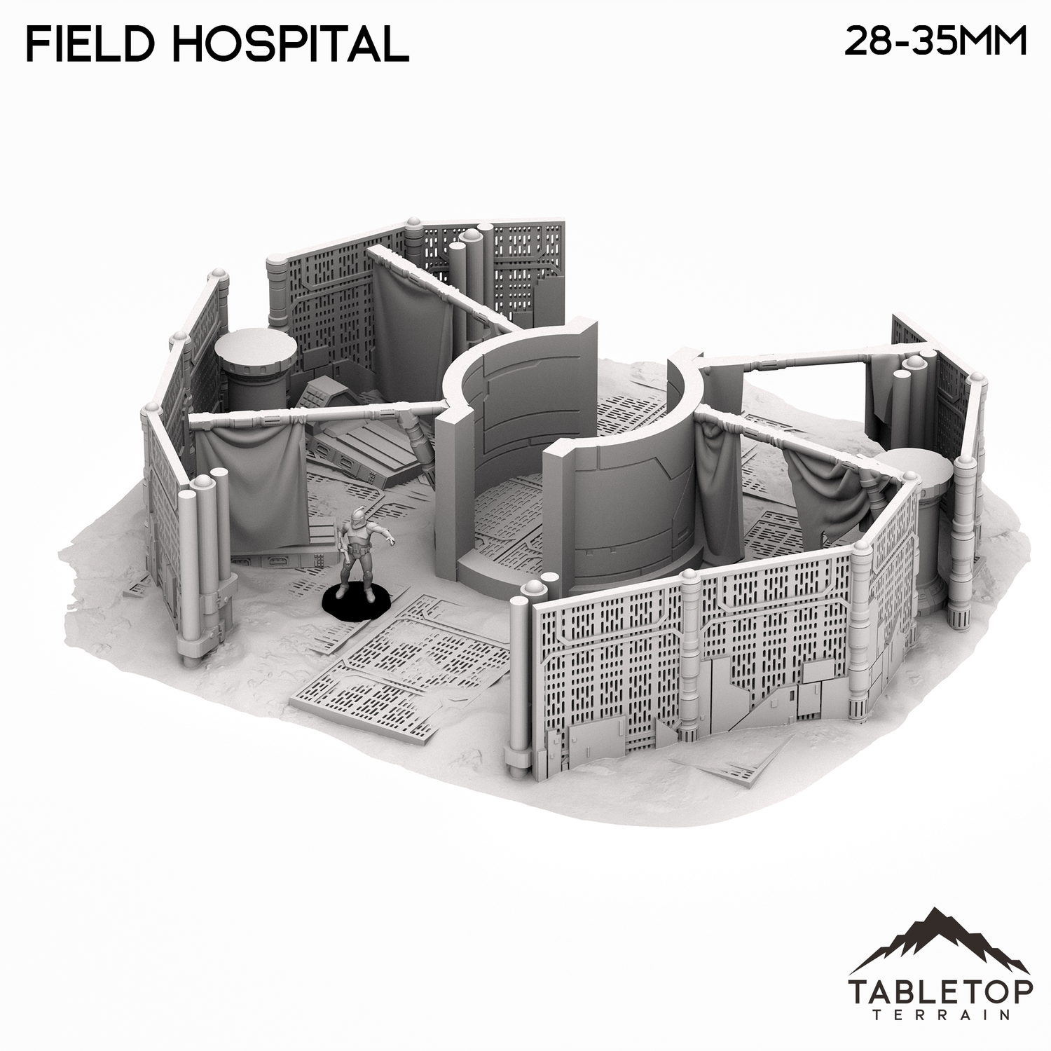 In 28-35mm scale, the field hospital measures 421x380x164mm / 16.6x15x6.5 inches.