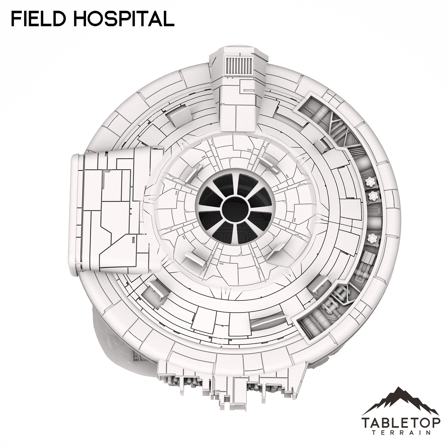 The crafty insurgents have gutted a small freighter ship and turned it into a field hospital for the wounded. The model can be assembled in quarters or halves to be used at the edge or corner of your table. It works well with the rest of the Distant Outpost set, or as a standalone piece. Great for wargames and RPGs.