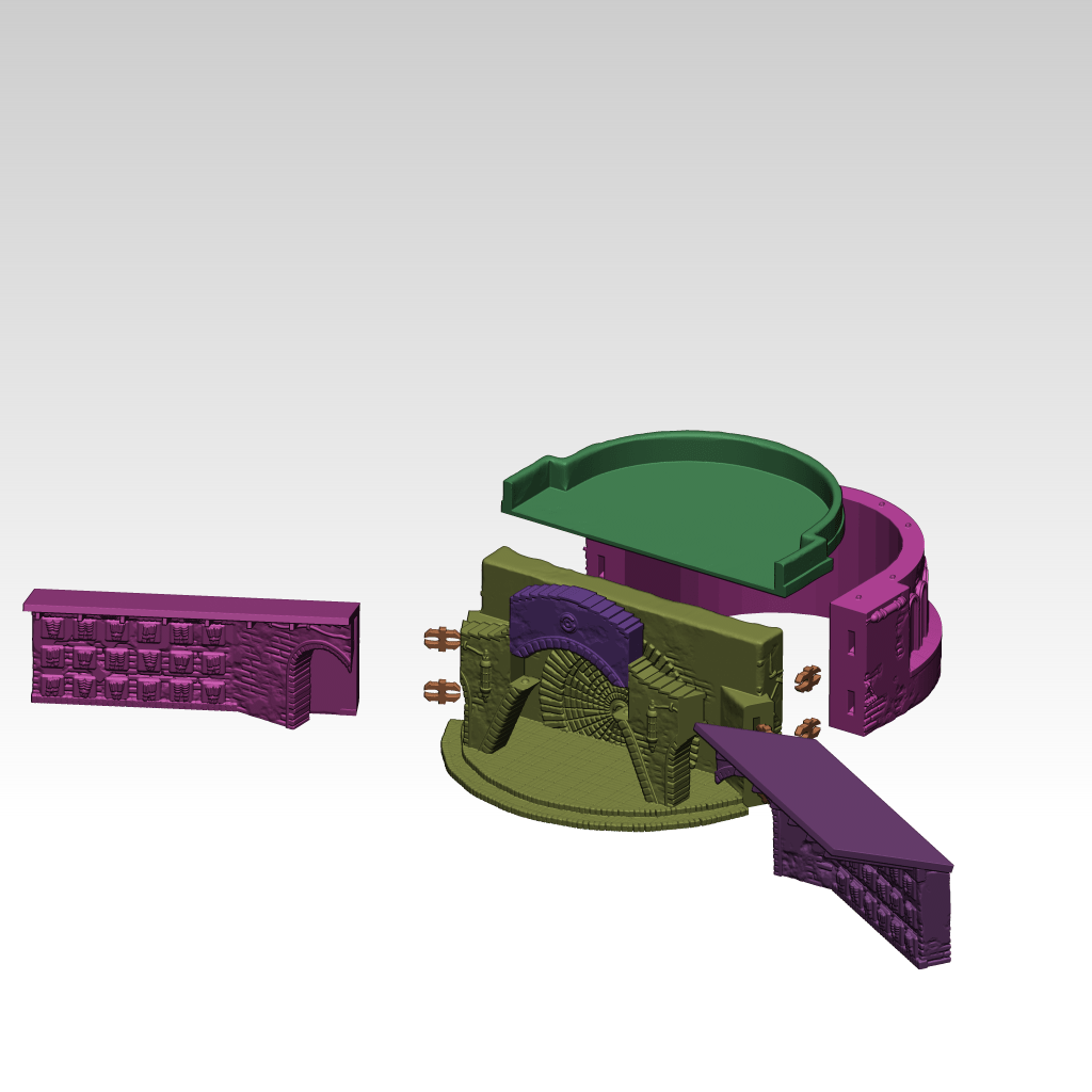 The Mining Guild is a huge guild with main steps and curved building. There are 36 spots for gloves to be attached to the wall (included). Inspired from a popular TV show from a galaxy far far away, Ord Ferrum is a full city you can now bring your miniatures to battle in. The building is printed in 32mm, 28mm, 20mm, or 15mm scale with other scales available by request. The 28mm scale is designed for Star Wars Legion. The 32mm scale can also be used but it may run a little large - see the scaled photos for comparison.