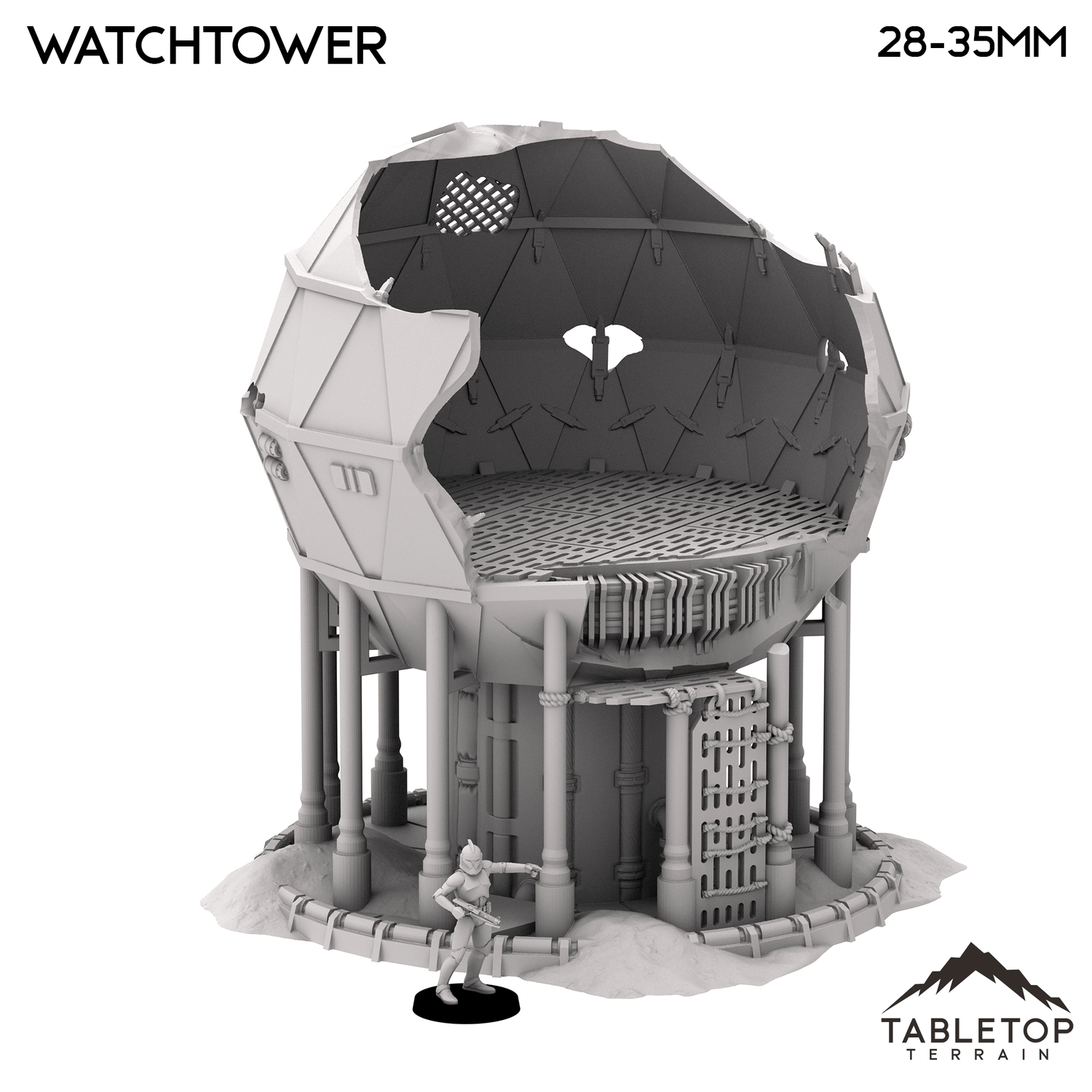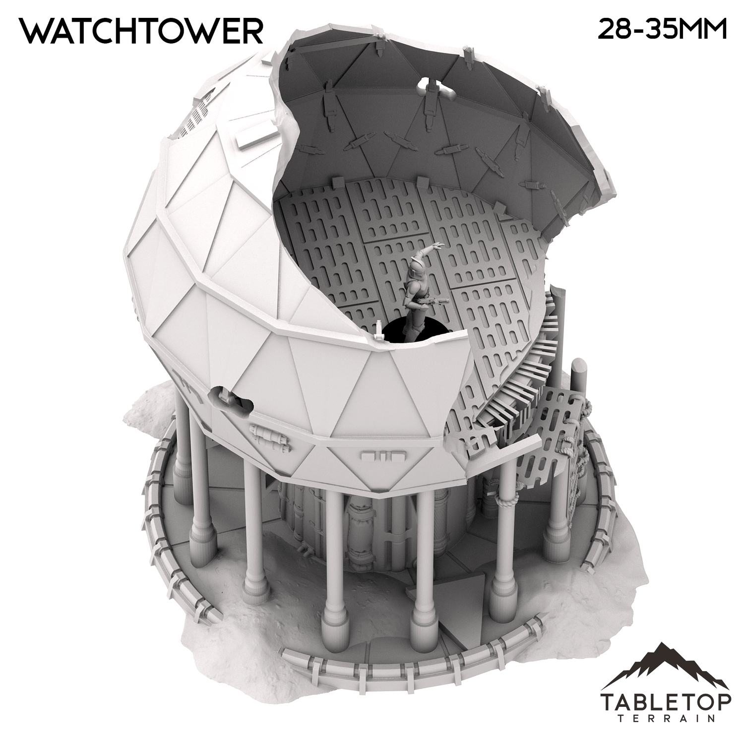 In 28-35mm scale, the tower measures 177x179x205mm / 7x7x8.1 inches.