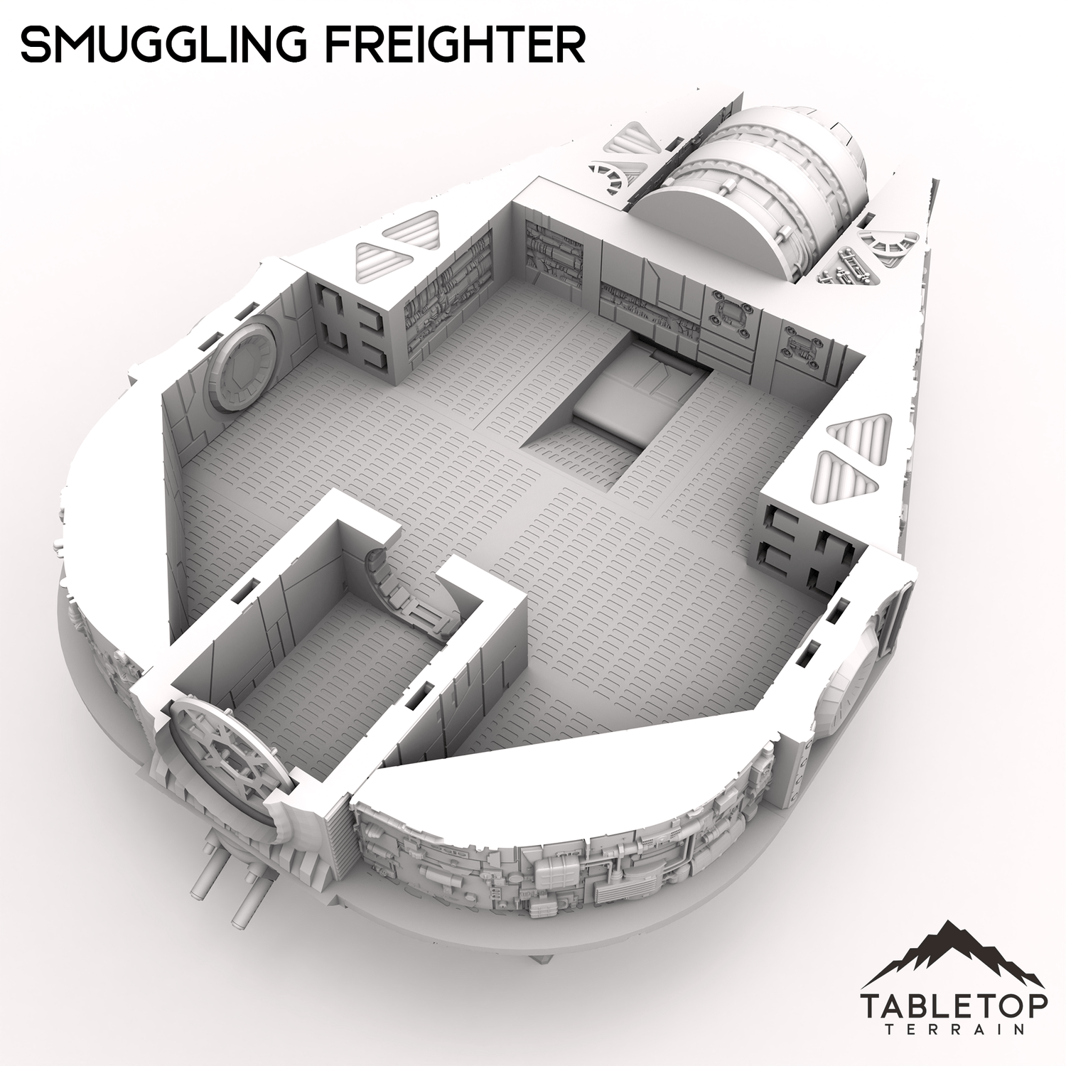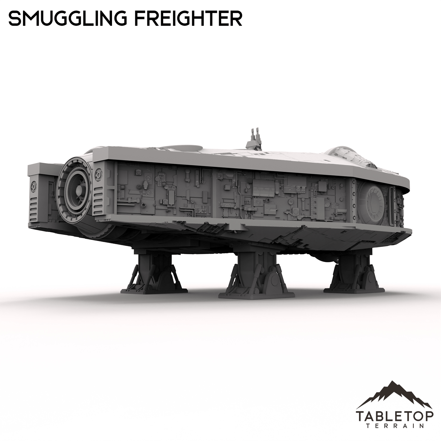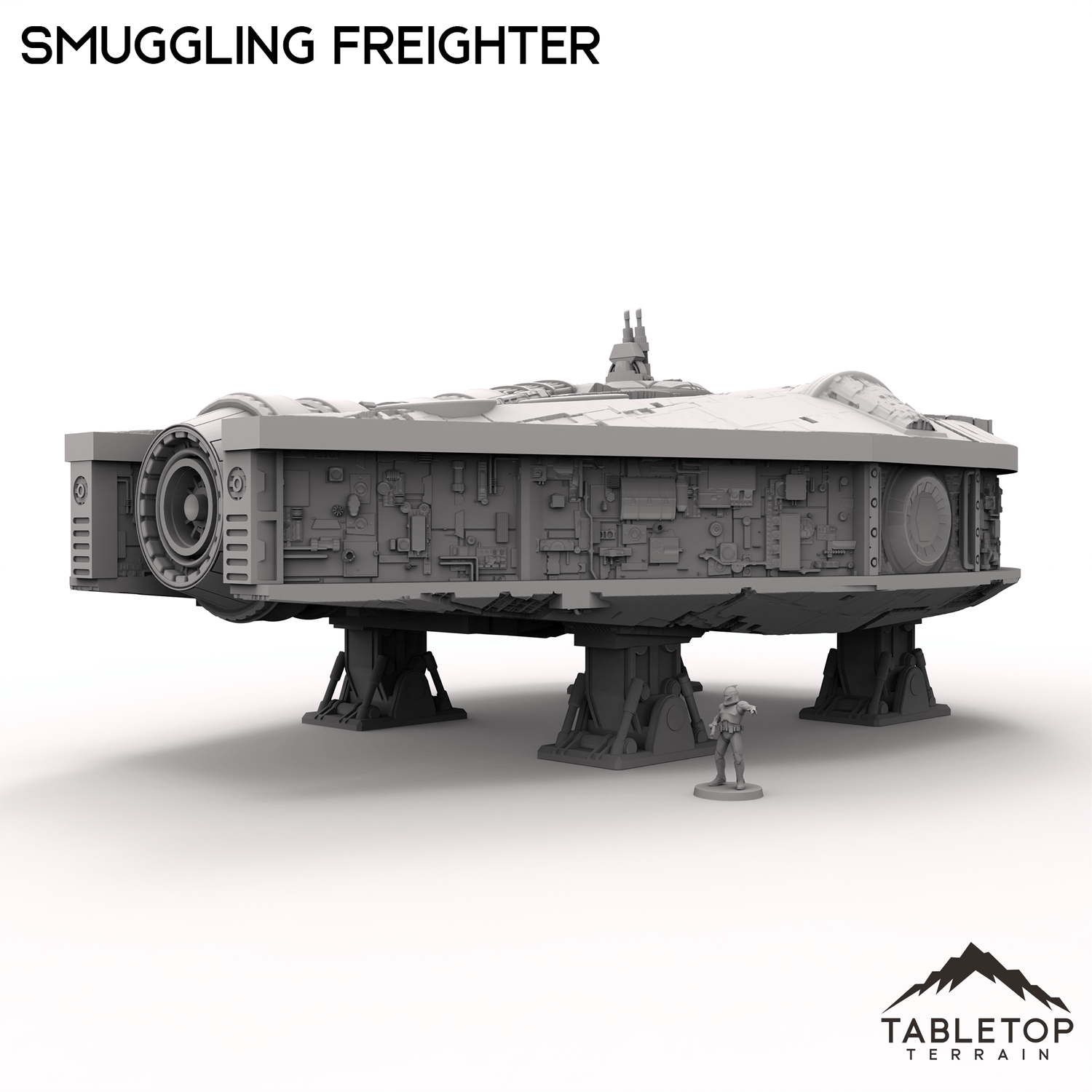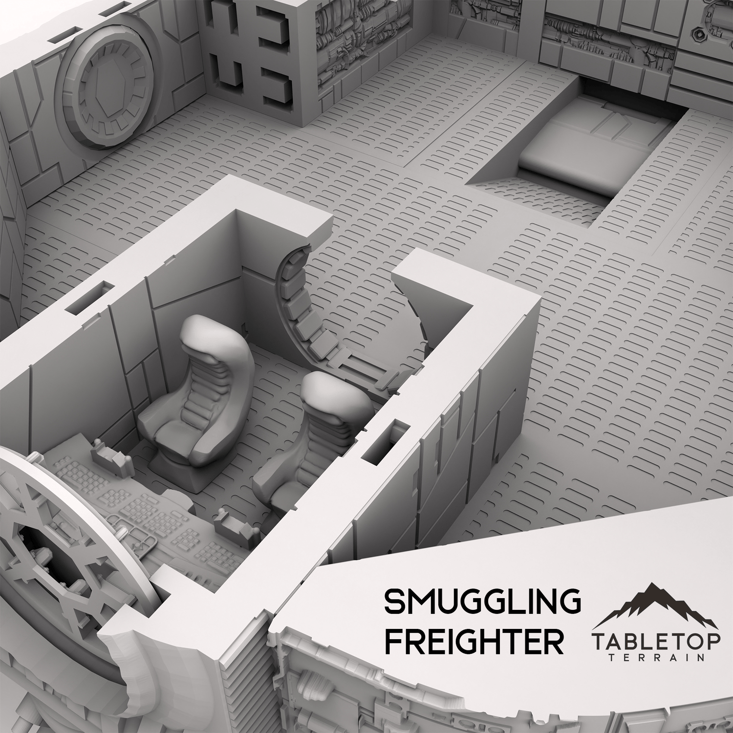 This massive modular set will allow you to build a smuggling freighter for a space opera/sci-fi table and customize it to your taste.