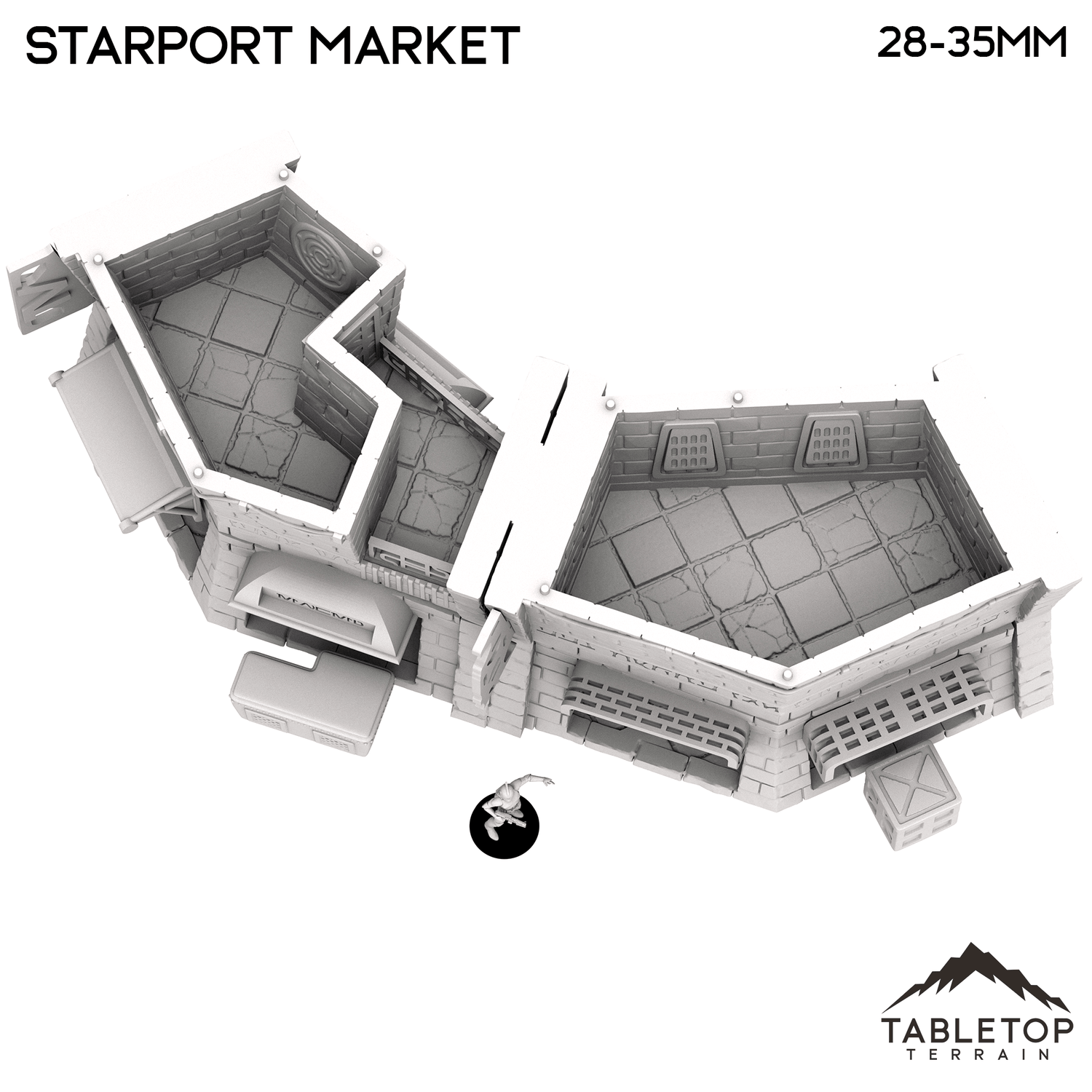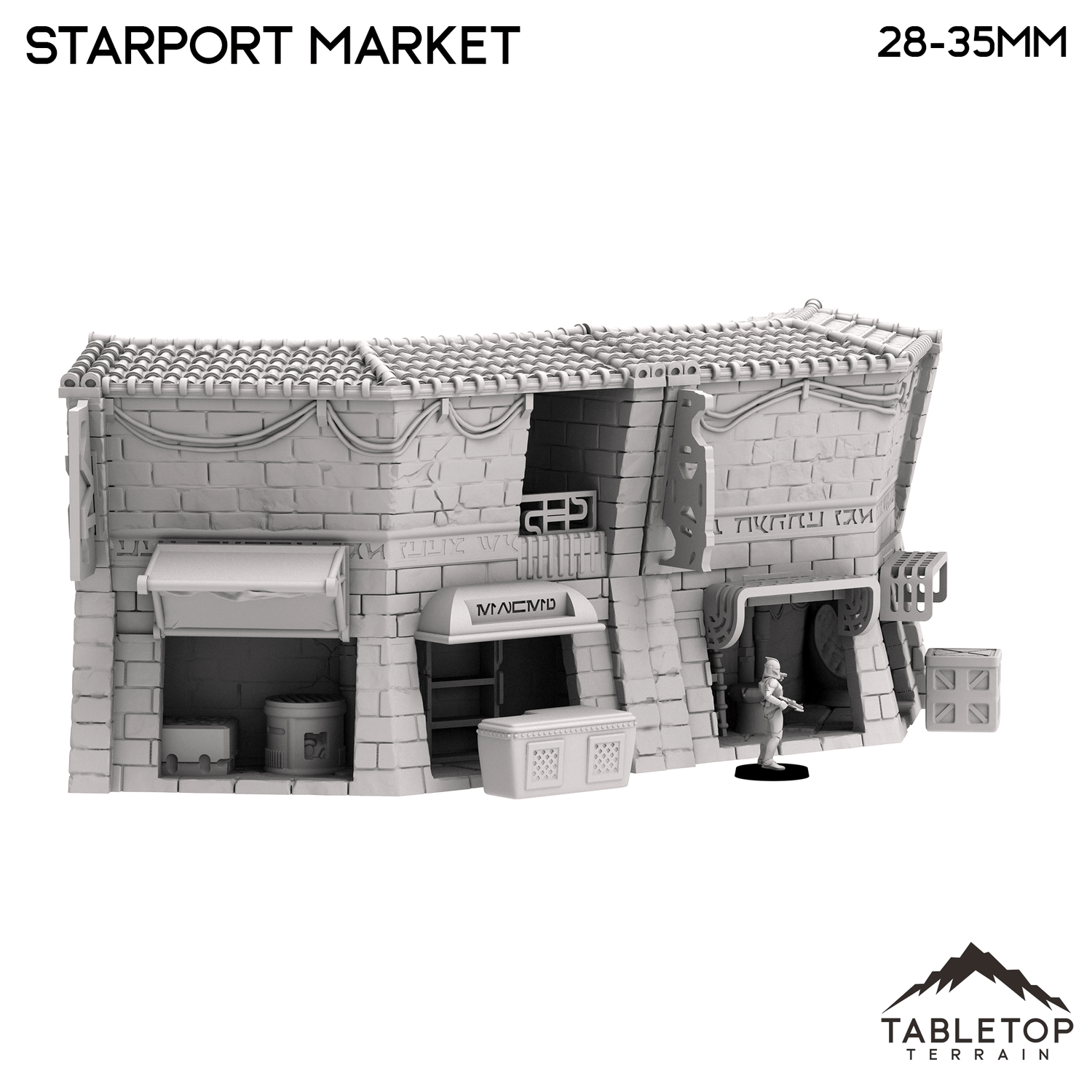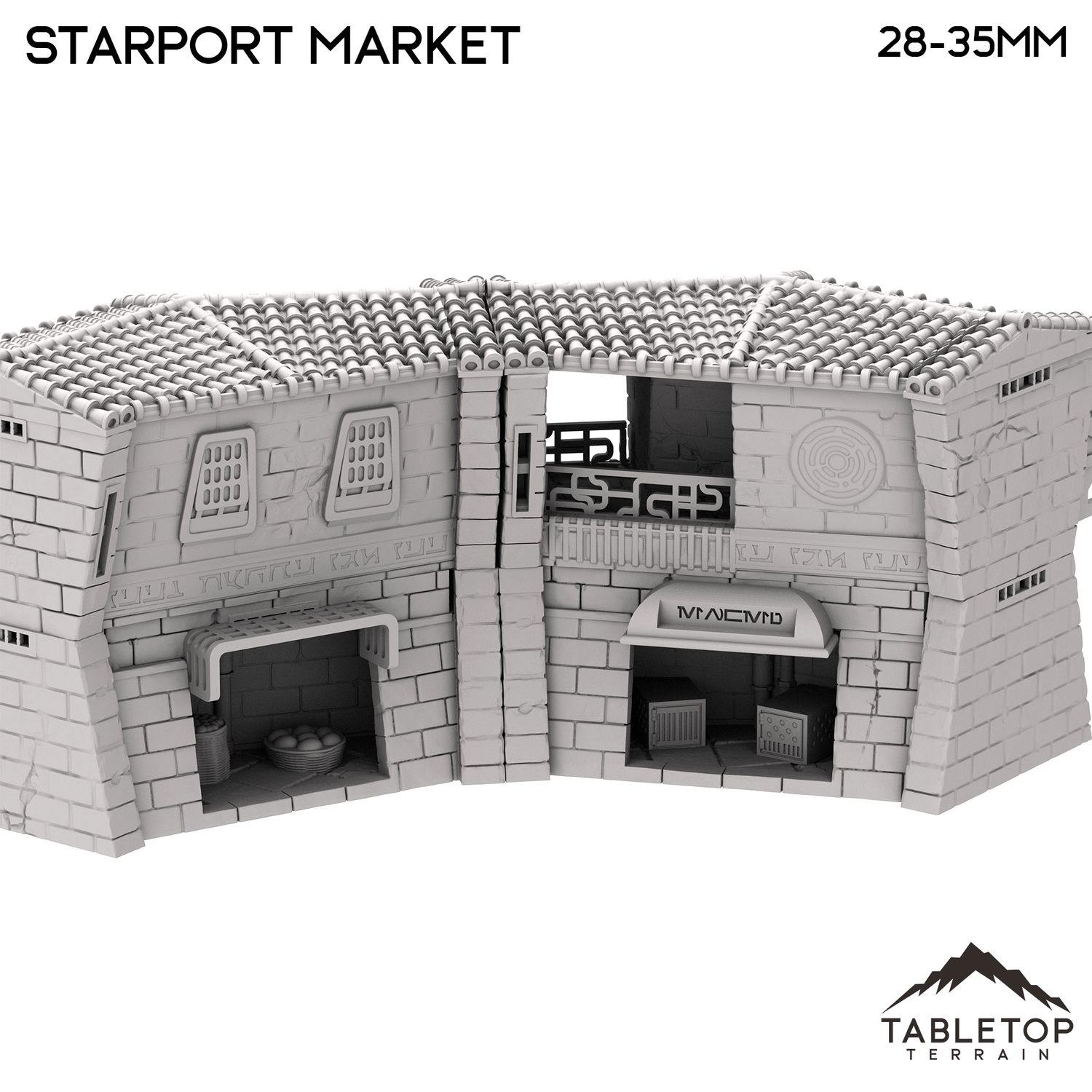 This modular set allows you to build and customize a marketplace located in a starport somewhere in a galaxy far away. Two separate buildings are included that can be combined together or kept separate. Each building has a lower floor, upper floor, and removable roof. Each level has a playable interior with plenty of scatter terrain for flavor! The set has a ton of modularity with plenty of options for signage and different canopies. It works well with the rest of the Ancient Starport set, or as a standalone piece. Great for wargames and RPGs.