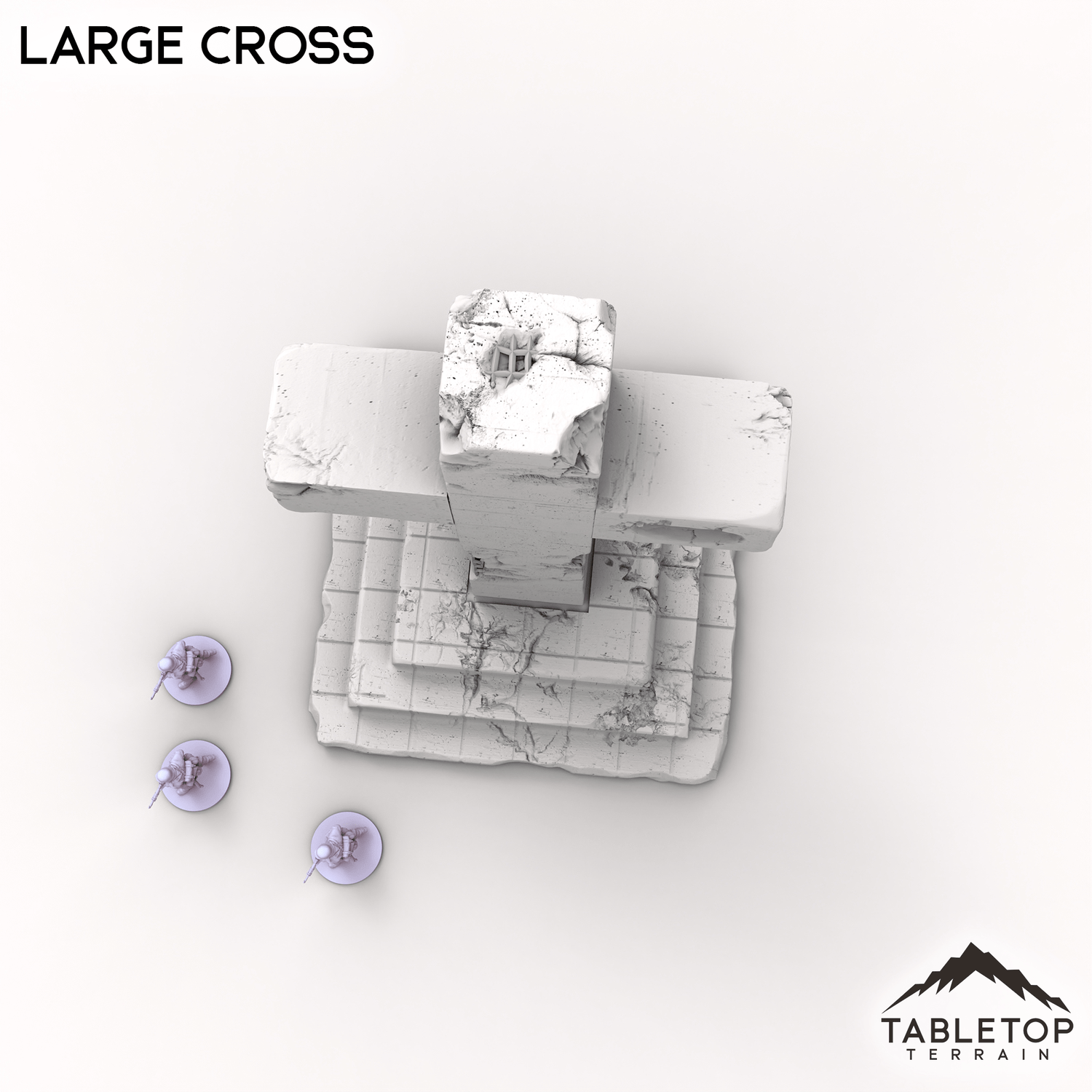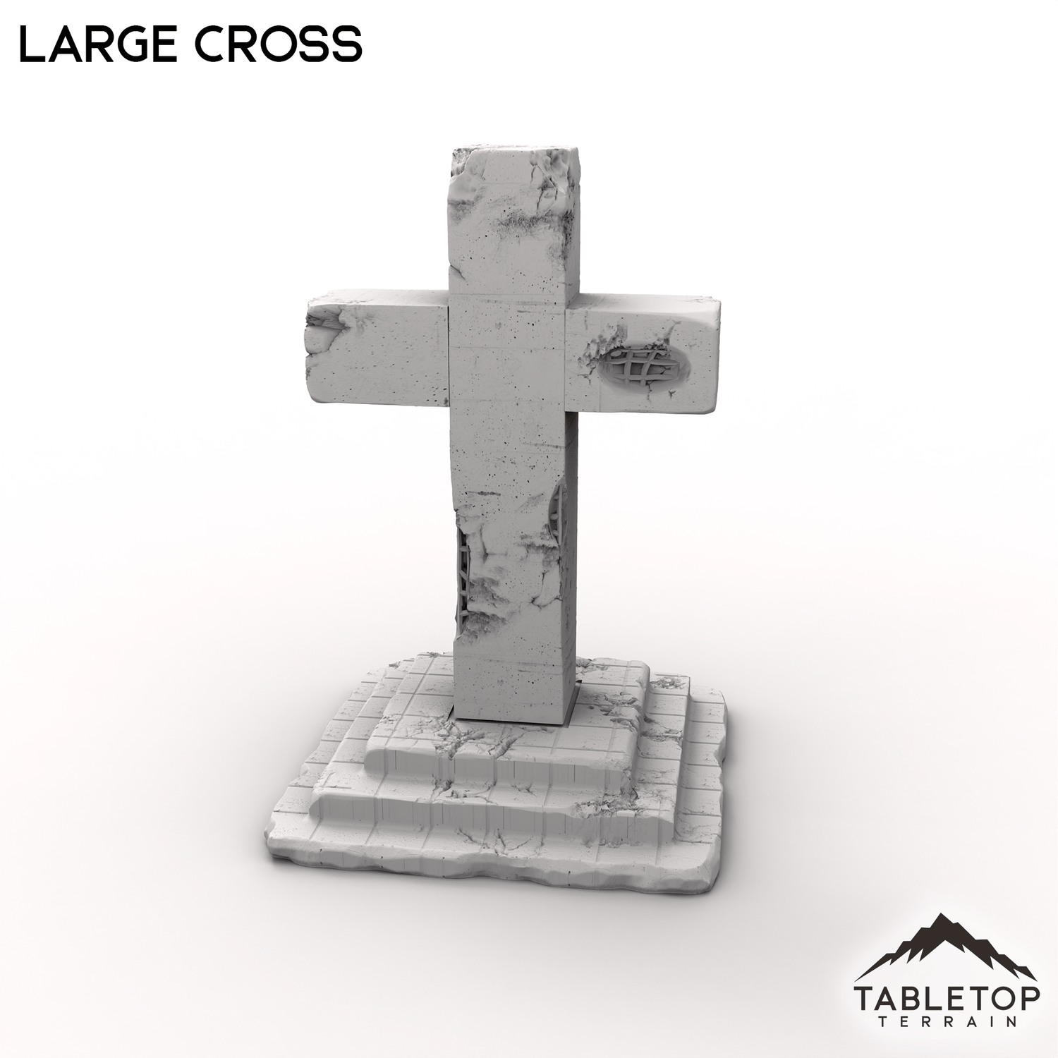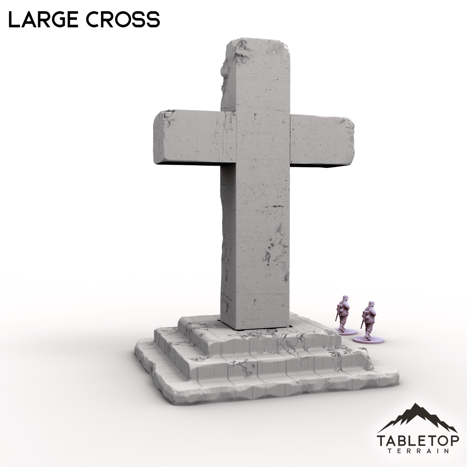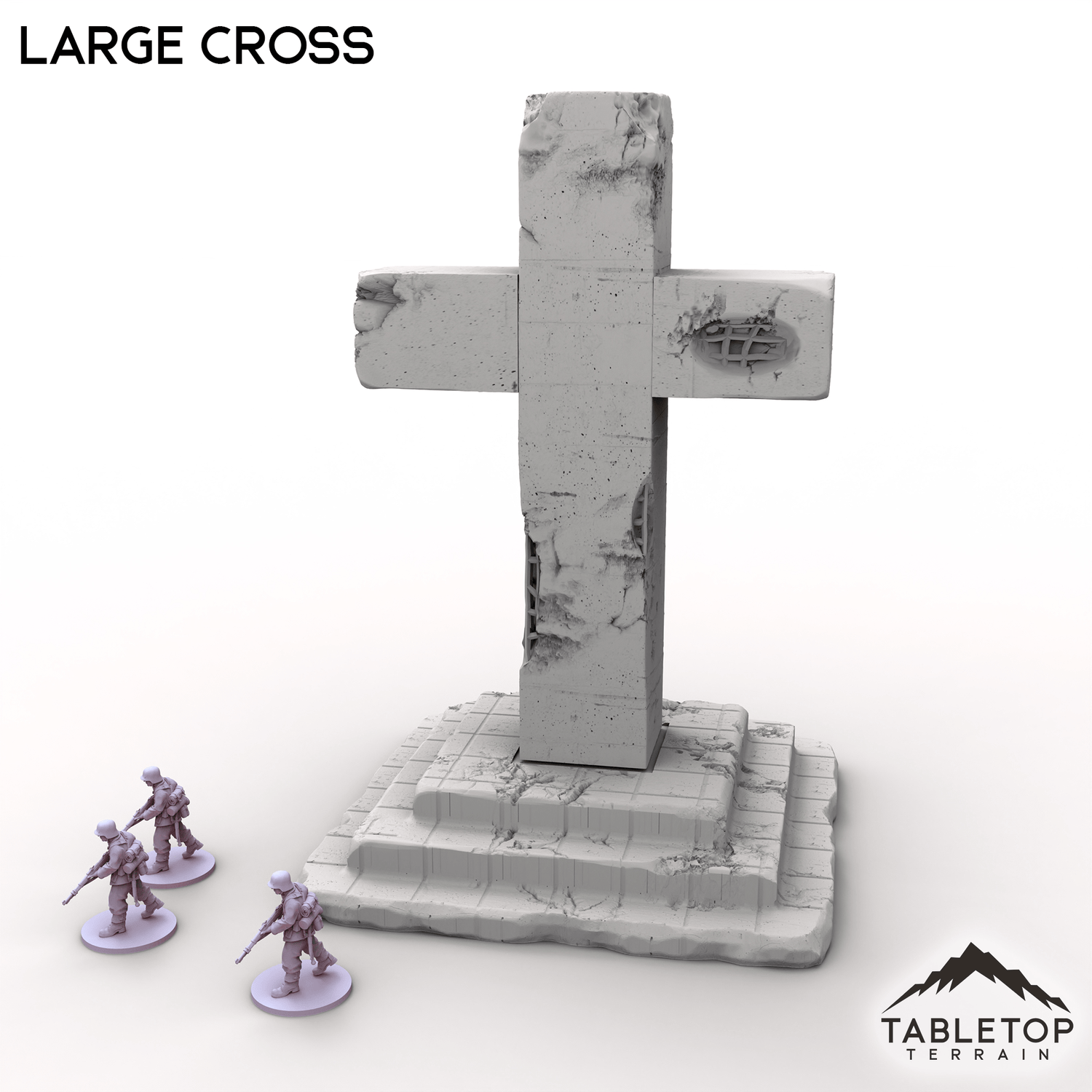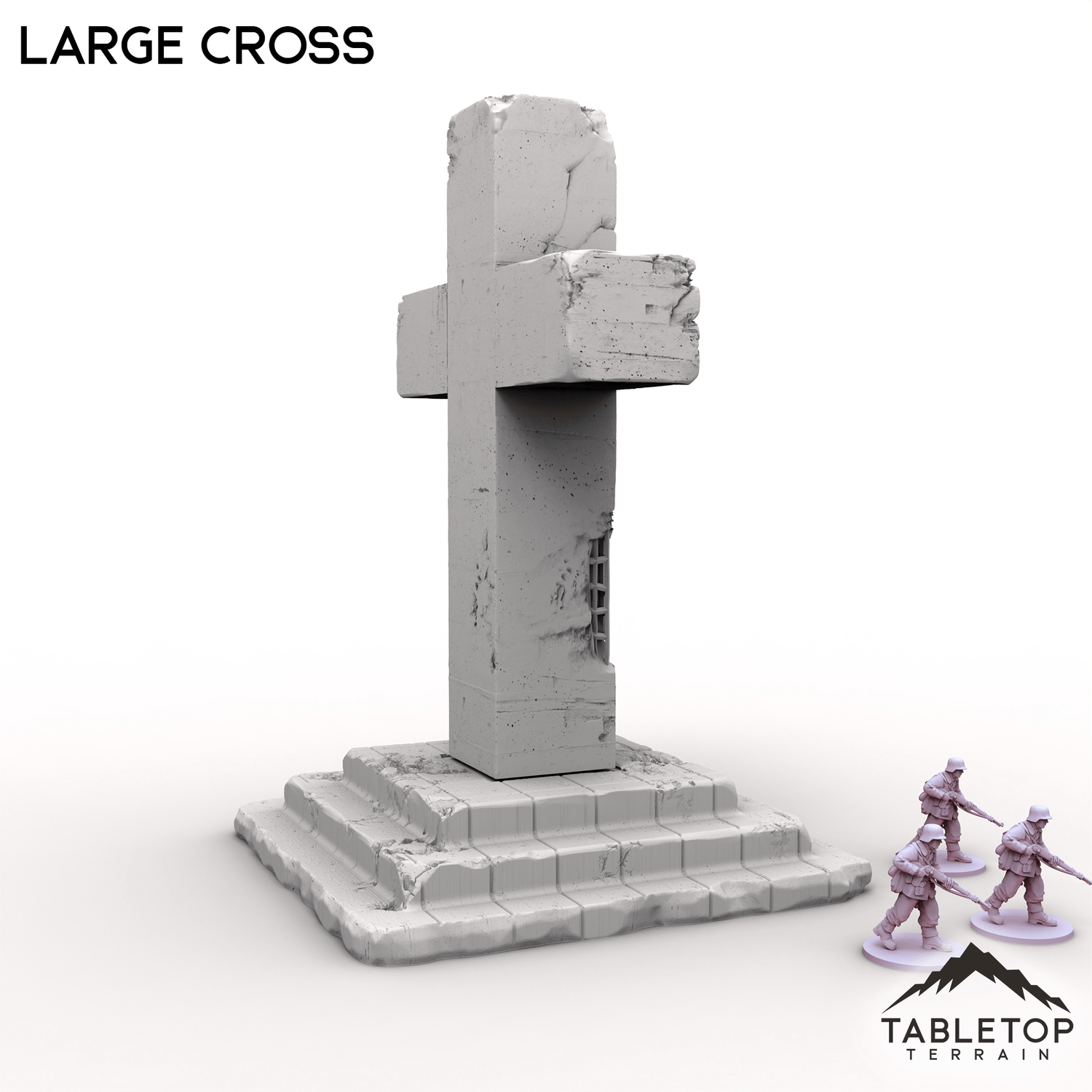 The Large Cross is a towering monument for the faithful in the holy wars. Despite being scarred by battle it still stands proud in the wasteland. Works well by itself as a objective or with the rest of the Trench War set.