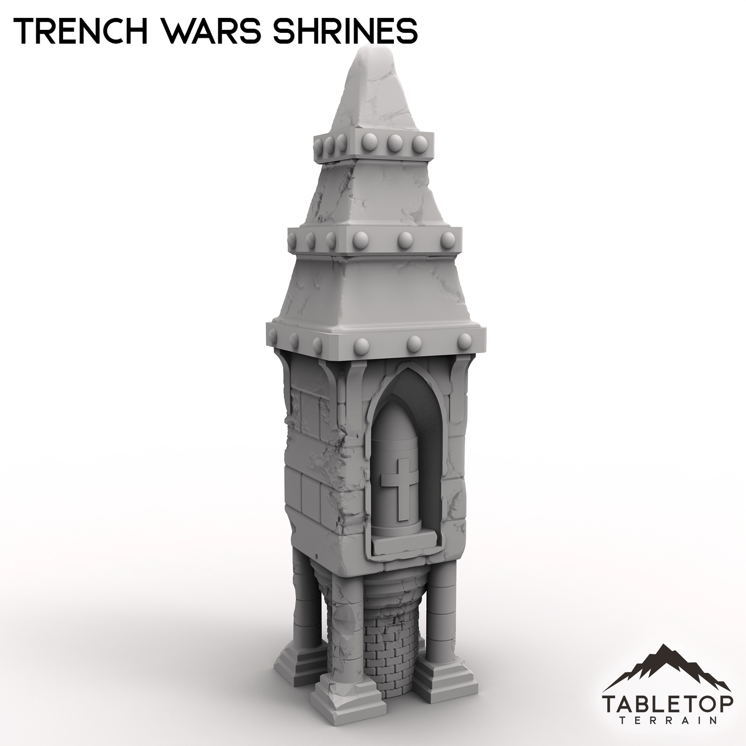 The Pilgrim Shrines offer faithful followers some respite during the endless holy war, and stand guarding the Speaker's Pulpit. These tall monuments work well by themselves as a objectives or with the rest of the Trench War set.