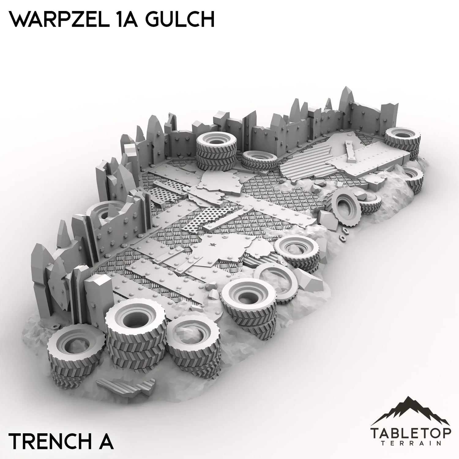 The Warpzel 1A Gulch set is a chaotic sprawl of orkish engineering and battlefield debris. It features a massive unexploded bomb, fortified bunkers, a wrecked fuel tanker and trenches surrounded by piles of tires and dragon’s teeth. It’s perfect for building gritty warzones and works well by itself or with the rest of the Warpzel 1A terrain. Buy each piece individually or the whole set at a discount.