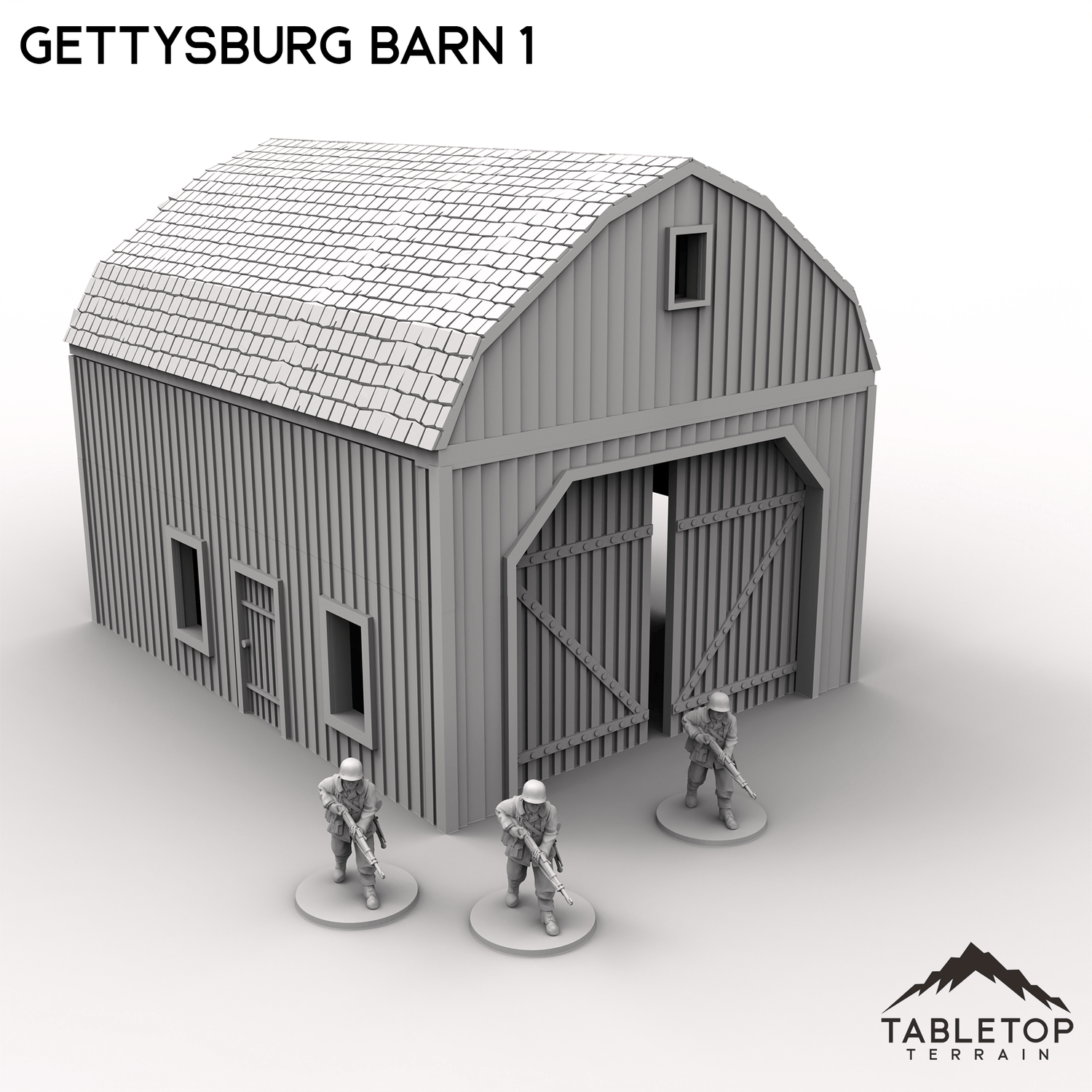 This classic barn was commonplace in the rural landscape of Gettysburg during the American Civil War. Featuring plank siding, symmetrical windows, and a broad loft, it provides a historically accurate centerpiece for farmstead settings or rural battlefield scenarios. Use it as cover, objective or just to add authenticity to your Civil War scenarios.
