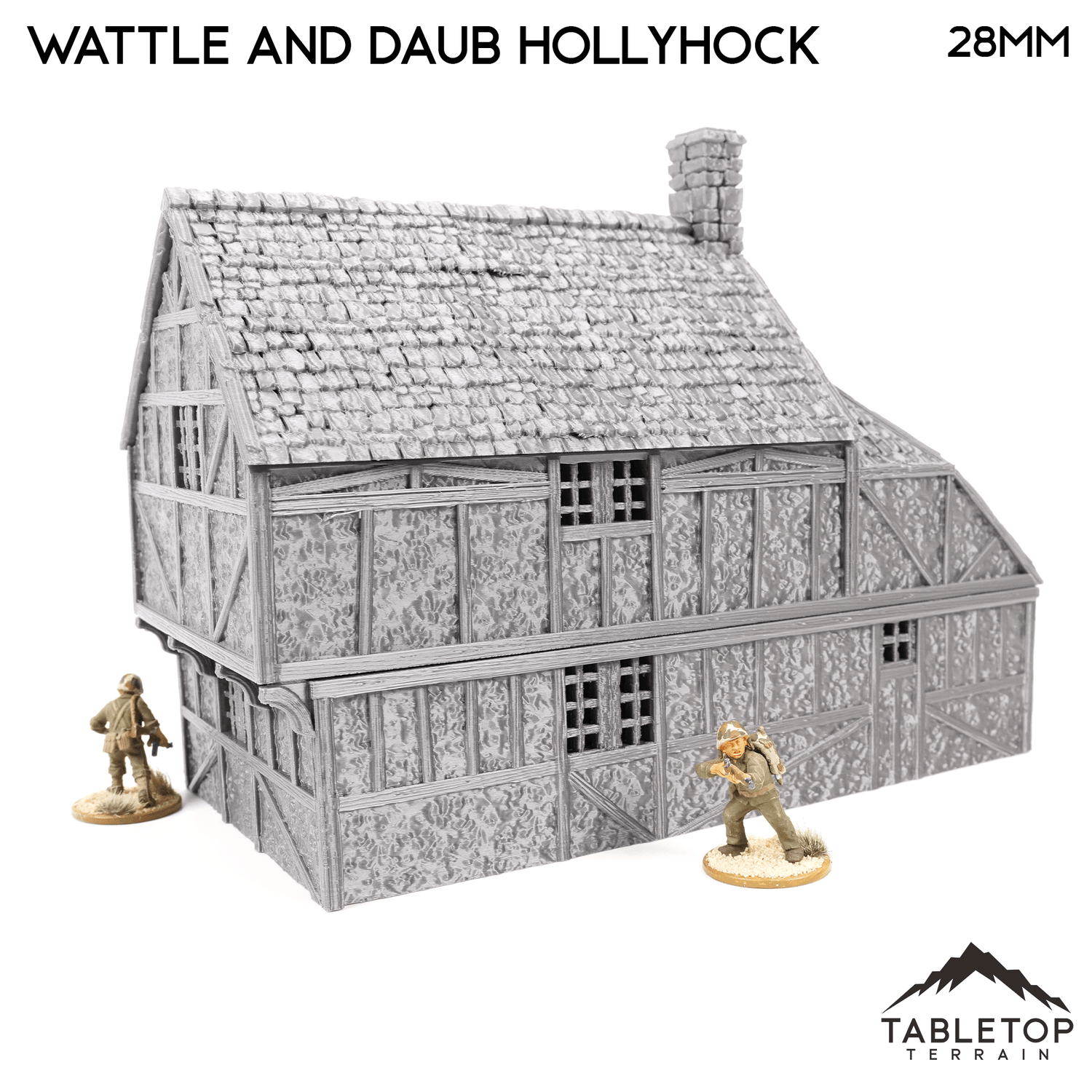 The Wattle and Daub Hollyhock Cottage is a two story cottage that resembles its stone counterpart. It features an interior fireplace, stone roof, and articulating door. It would work great for historical games, such as WII Bolt Action, Flames of War or Fields of Glory. It would also work great for Fantasy RPG games such as DND, Age of Sigmar, Kings of War, or Conquest. The building is printed in 32mm, 28mm, 20mm or 15mm scale with other scales available upon request.