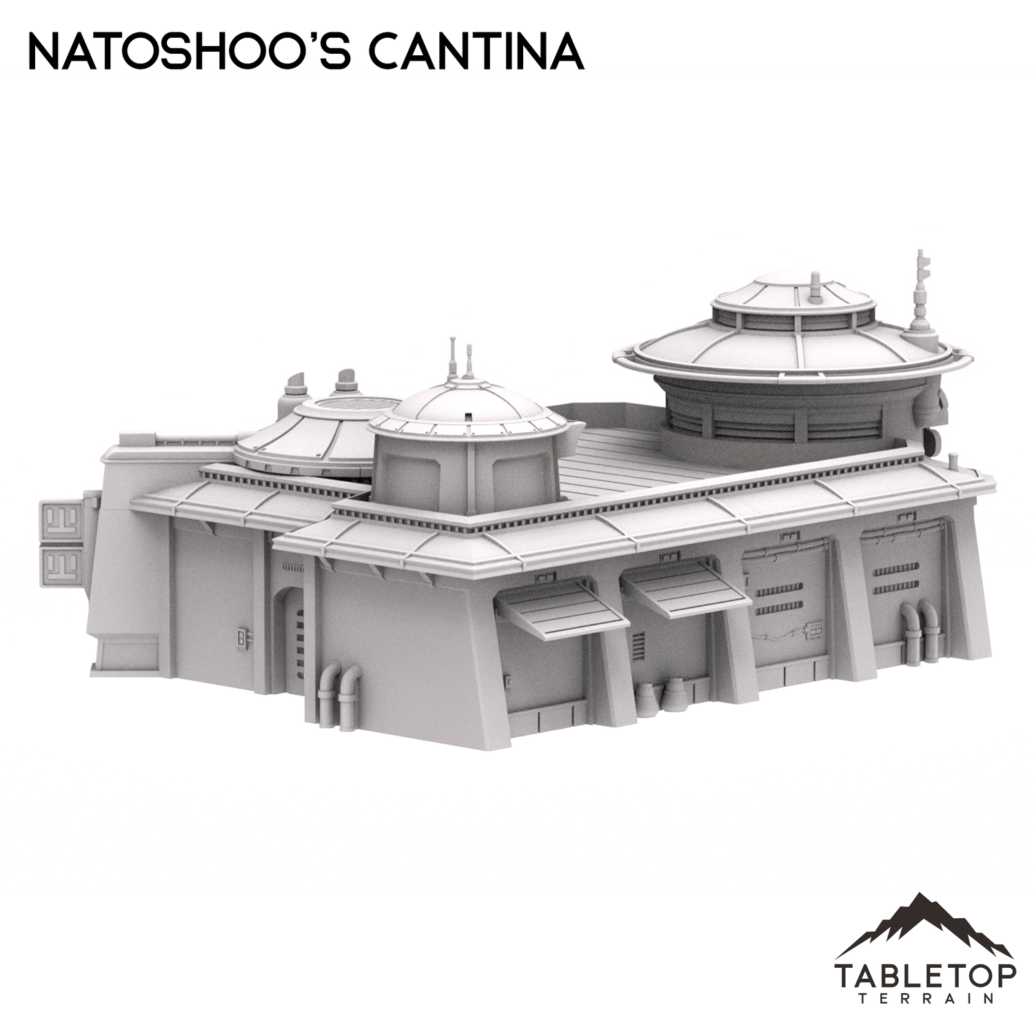 Natoshoo's Cantina is a large, open-interior structure capable of fitting a a variety of minis inside. Measuring over a foot long in 28-35mm scale, this is a perfect set piece for any Outer Rim tabletop. This is a great location for interaction with the members of the town, or perhaps as lone building sitting between towns on a long trip. The Cantina is printed in 40mm, 28-35mm (1:47), 20mm, and 15mm scale. We recommend the 40mm scale for Shatterpoint and the 28-35mm (1:47) scale for Legion.