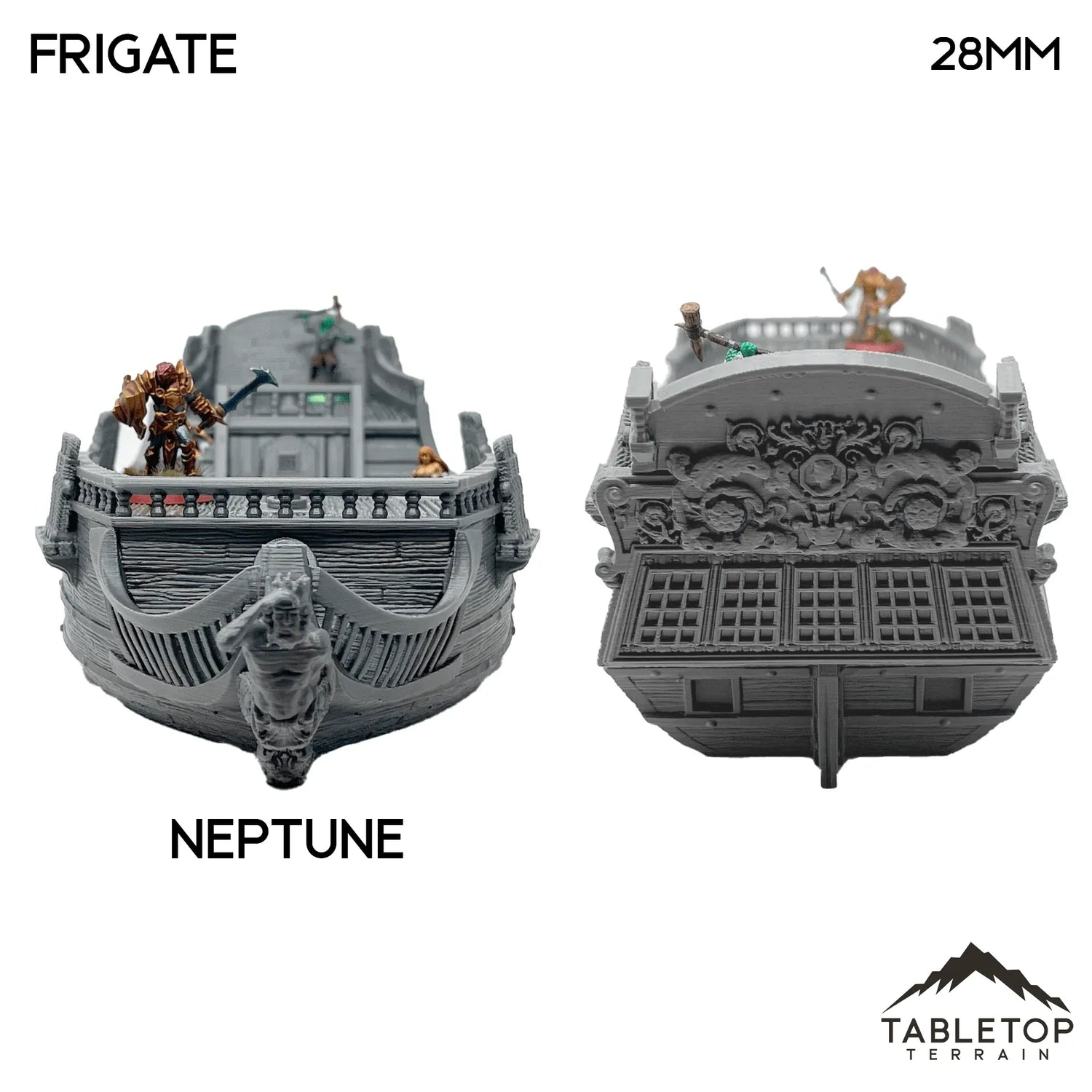 The Frigate Mk2 is a sturdy pirate ship, ready to set sail on the seas. Just needs a crew! Great for Blood and Plunder, Black Seas, Cutlass! or fantasy roleplaying games such as Dungeons and Dragons DND.