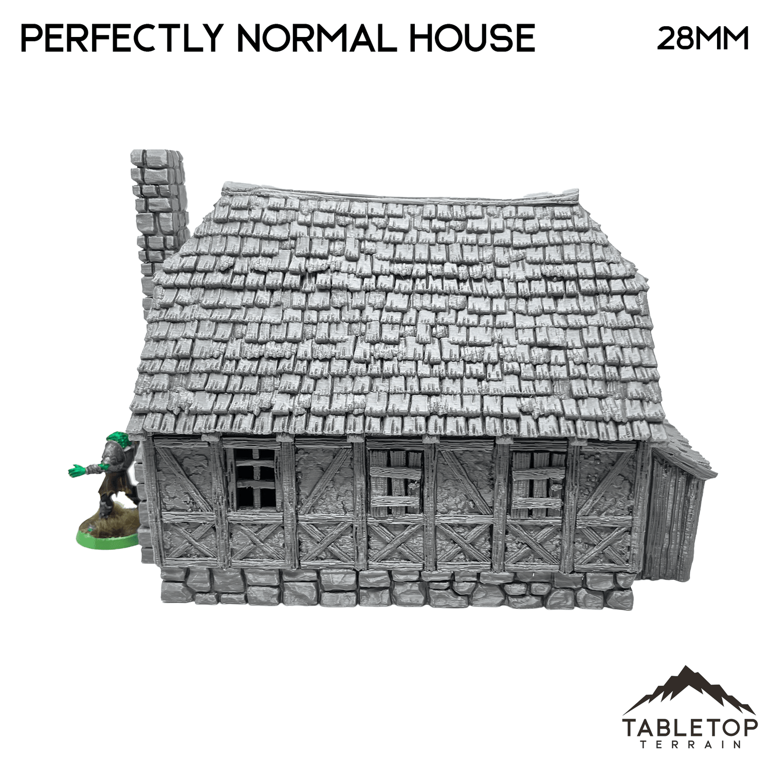 The Perfectly Normal House is Tudor-style cottage with removeable roof and a hinged door. It's replaceable with the Mimic House, giving you the ability to transform the house mid-game. The Perfectly Normal House would be perfect for fantasy games such as Dungeons and Dragons (DND), Age of Sigmar (AoS), Pathfinder, Frostgrave, or Conquest.