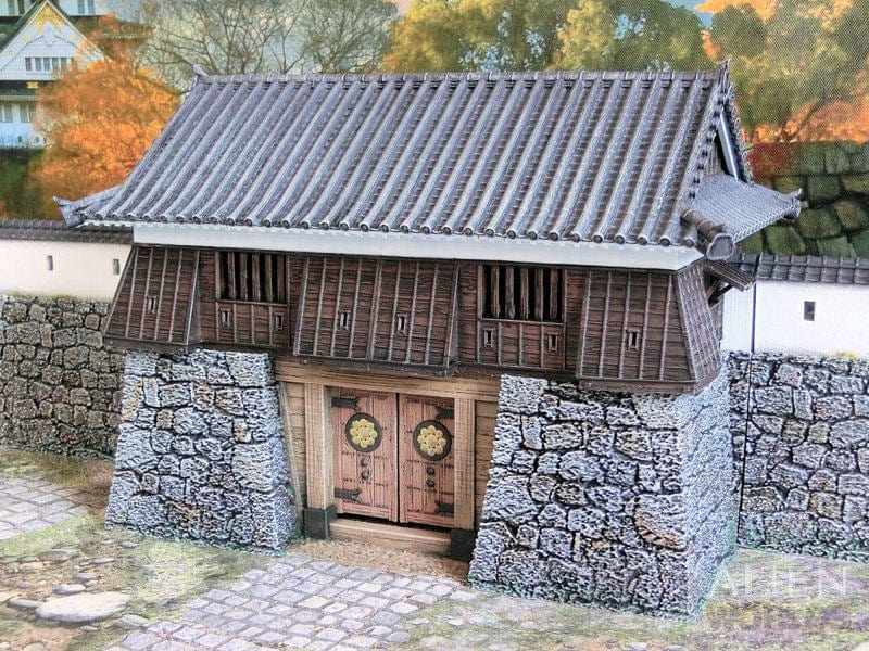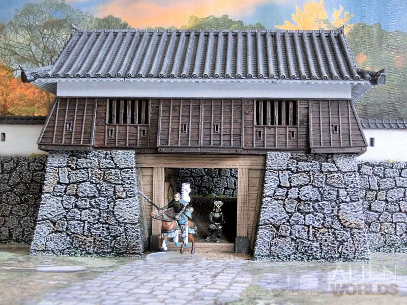 A castle gatetower from old Japan, designed to be used in conjunction with the Samurai Castle Walls Set. The gatetower building is a one-storey structure panelled in wooden slats, modelled after the famous wooden yagura towers of Kumamoto Castle.