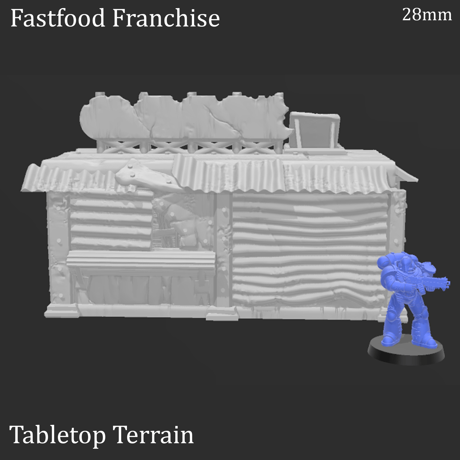 The Fastfood Franchise is a single story fast-food restaurant with a removable roof and swinging door.