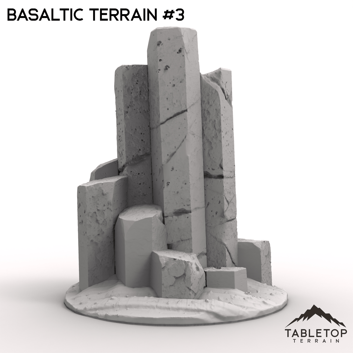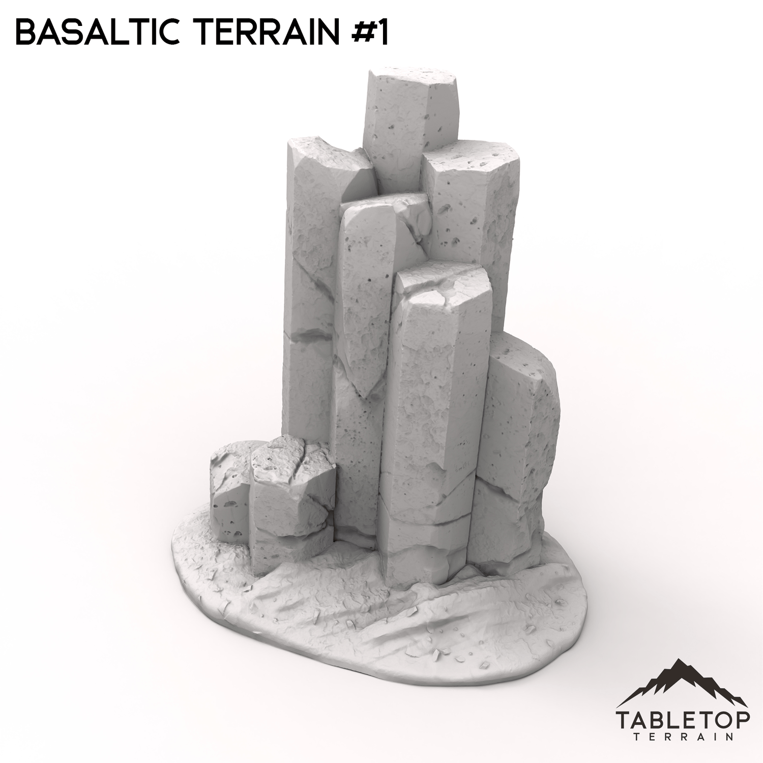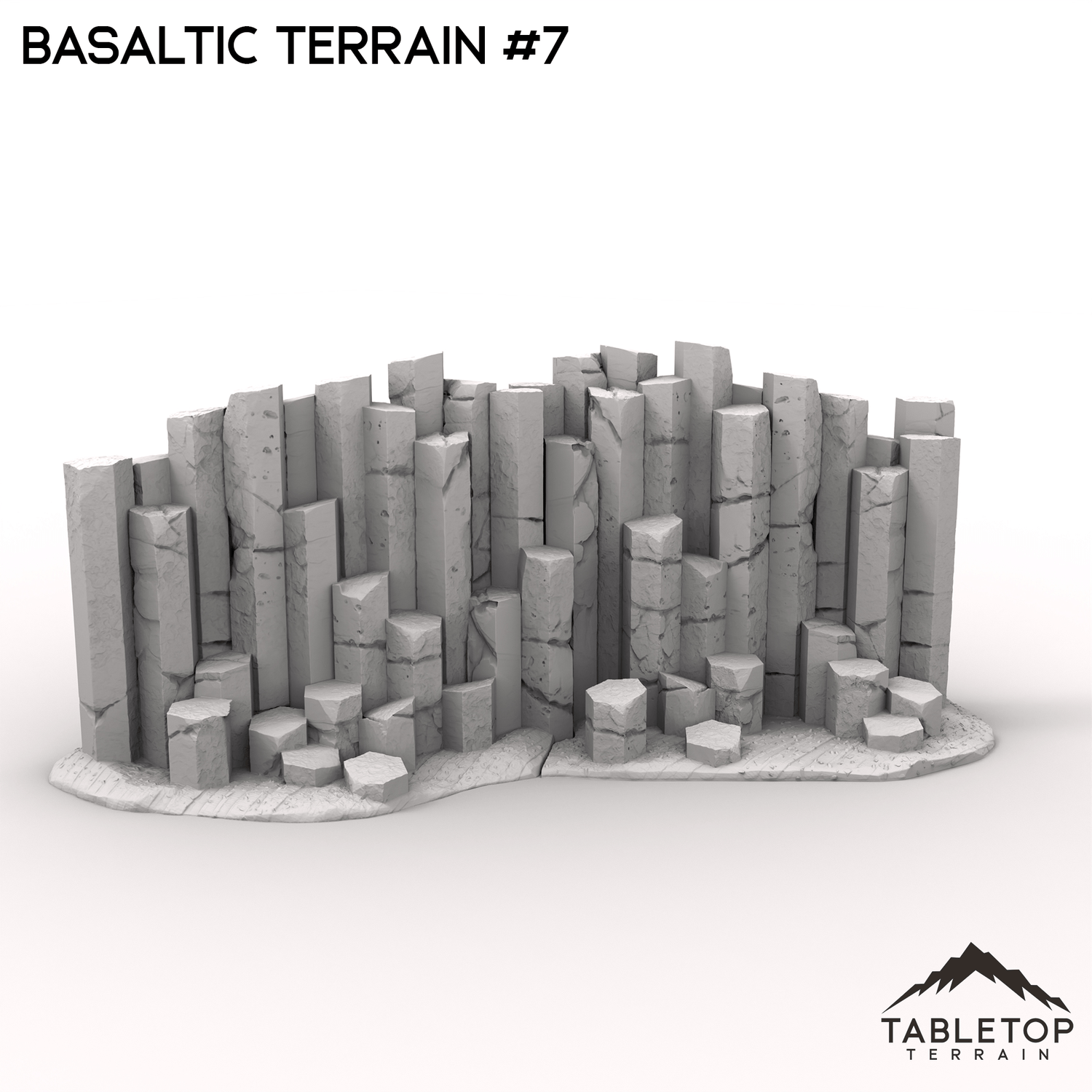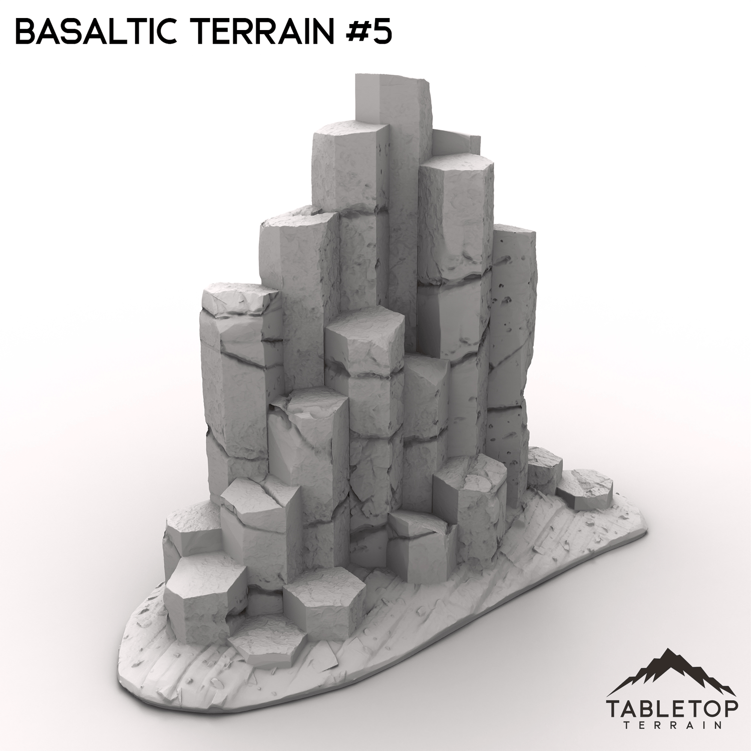 This basaltic terrain is a rugged landscape dominated by towering basalt columns that rise from the ground like natural monoliths, forming an imposing and ancient environment. The terrain also features a weathered pyramid, its structure made from the same dark, volcanic rock, seamlessly blending with the surrounding columns. The basalt columns provide natural cover and elevation, while the pyramid could serve as the focal point for ancient secrets or a powerful artifact waiting to be discovered. You can buy each piece individually or the whole set at a discount.