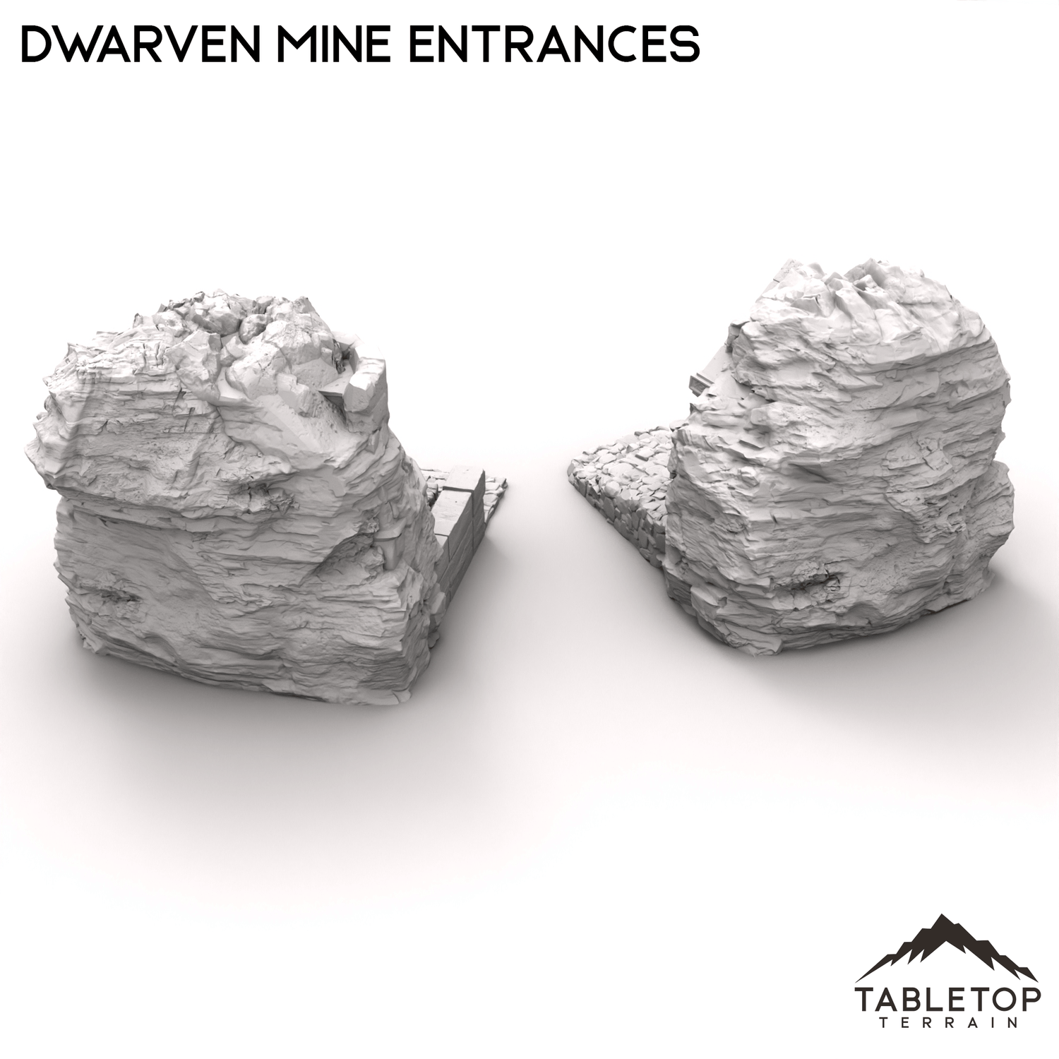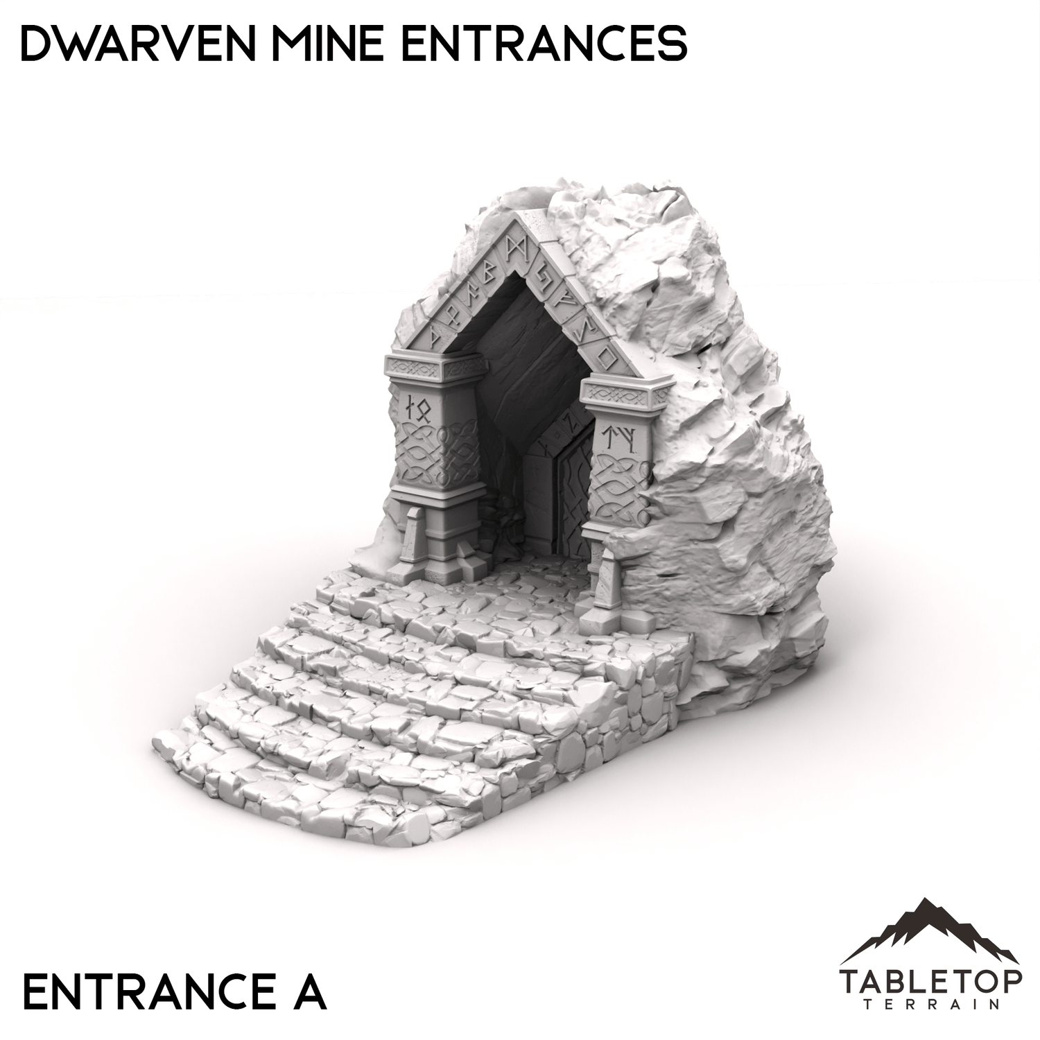 The Dwarven Mine Entrances are two different versions of a doorway, leading down into the dark below. The two different styles of mine entrances both have unique engravings, and act as a great way to indicate to your players where the next step of their adventures might lead them.