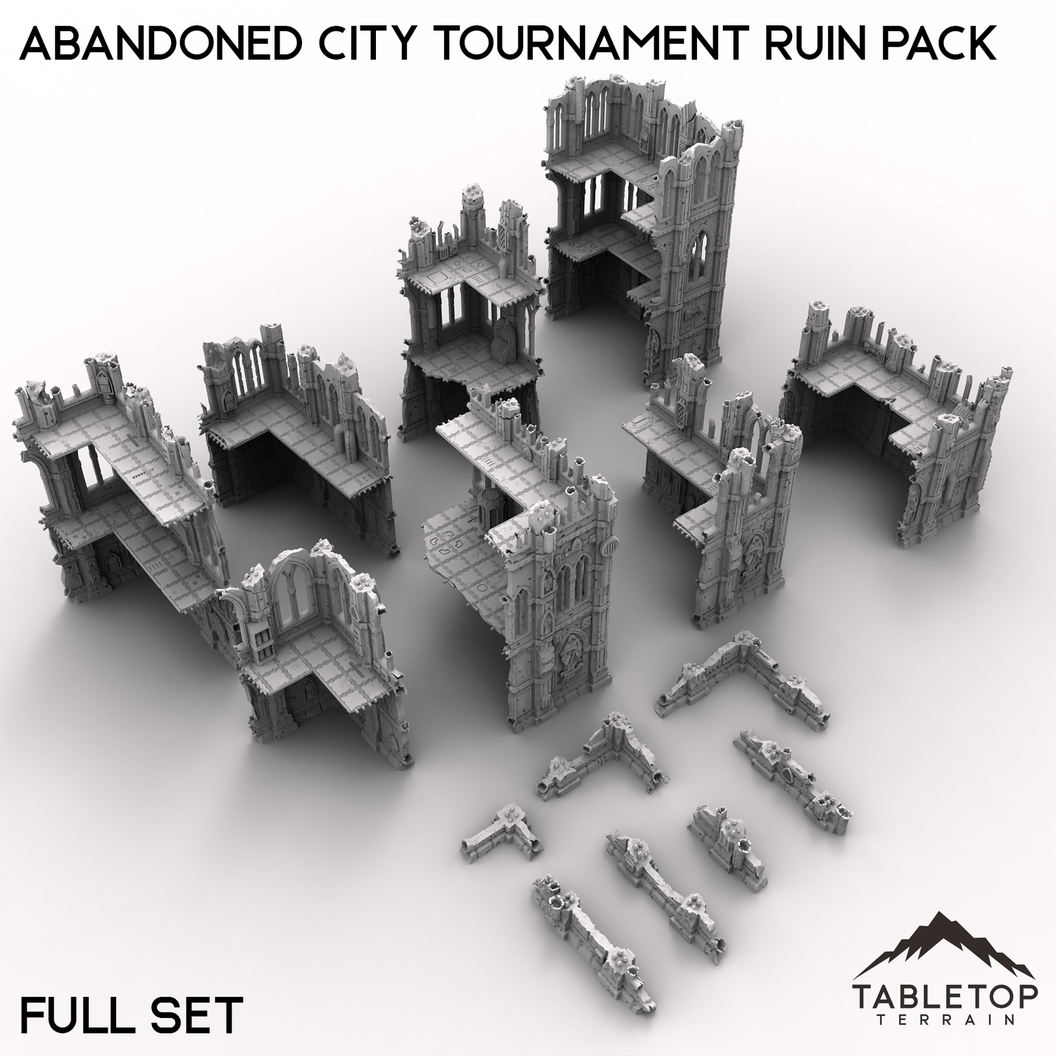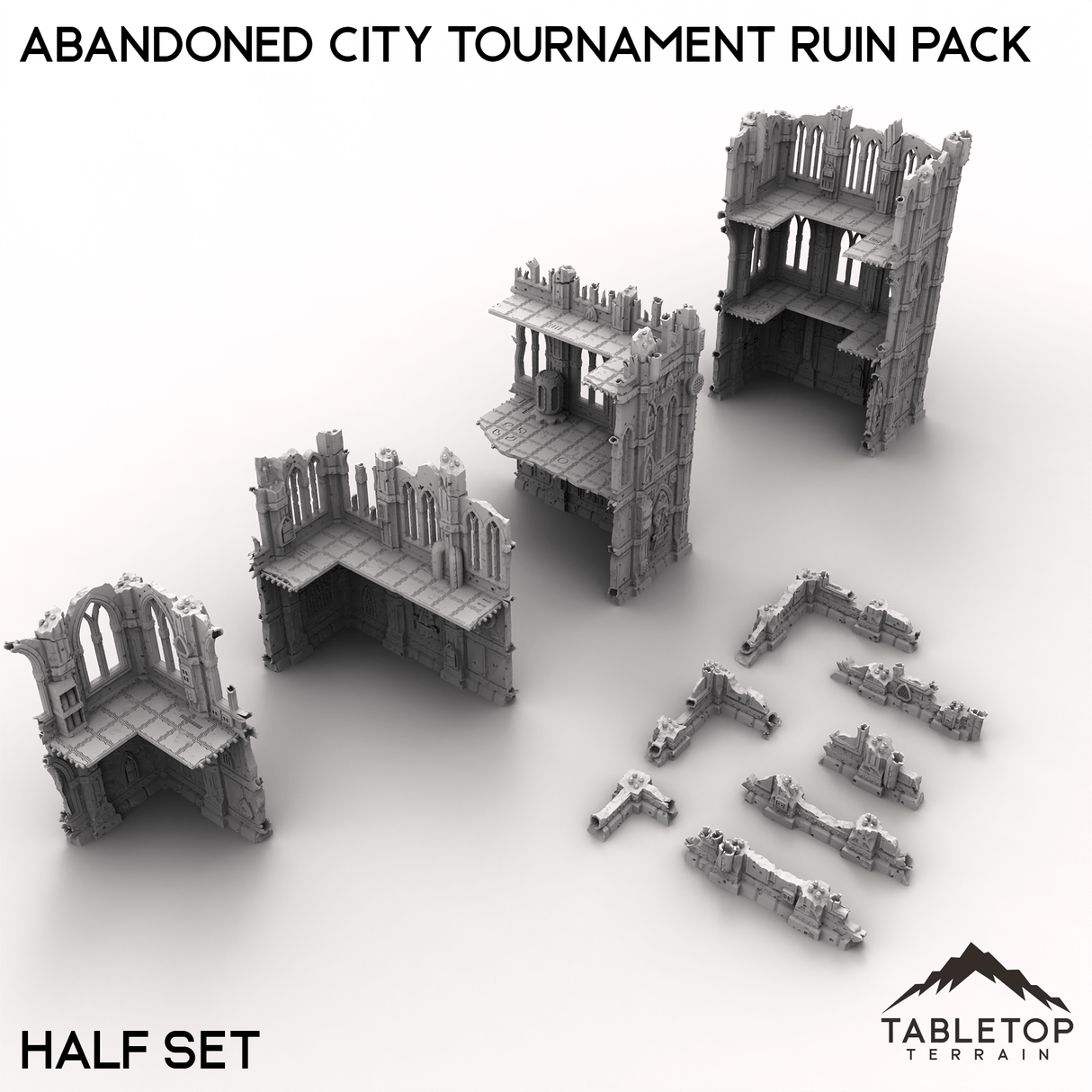Abandoned City Tournament Ruin Pack is a collection of 2-story and 3-story ruins with scatter for smaller walls, all from the "Ruined Imperial City" collection. This set is sold in a set of 8 for the Full set, or a set of 4 in the Half set. Each set is detailed in the photos, so you can see exactly what comes in each bundle. Both bundles contain the exact same scatter pieces. The ruins themselves are semi-modular. Each floor has pegs to hold the pieces in place, but they also have spots for 5x2mm magnets (magnets not included).