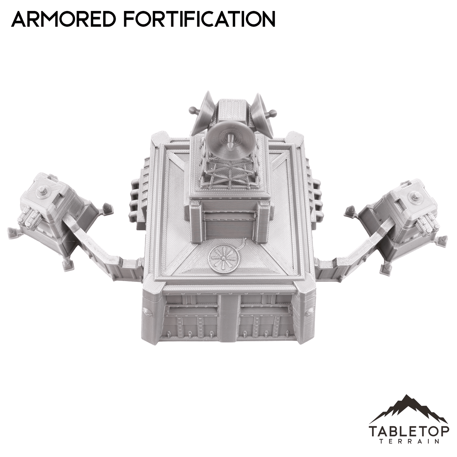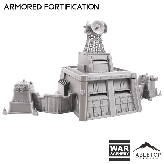 The Armored Fortification is a radar station with turrets and walls for defending a location. The inside of the radar tower is open, and can fit minis inside it. This model works nicely on its own, or mixed with other sets from the Apocalypse Fortress set. The Armored Fortification is designed for sci-fi wargames, but can be used with any system.