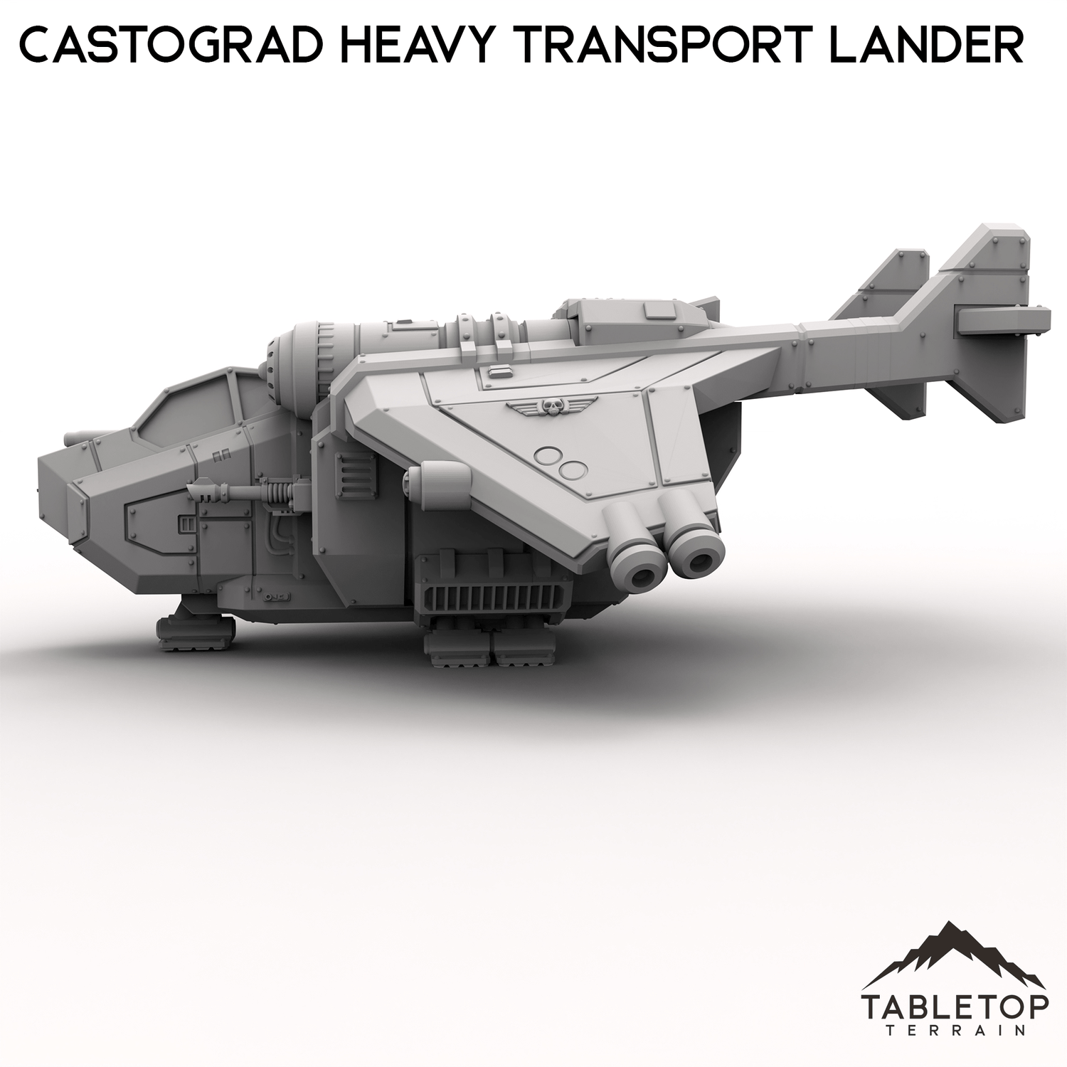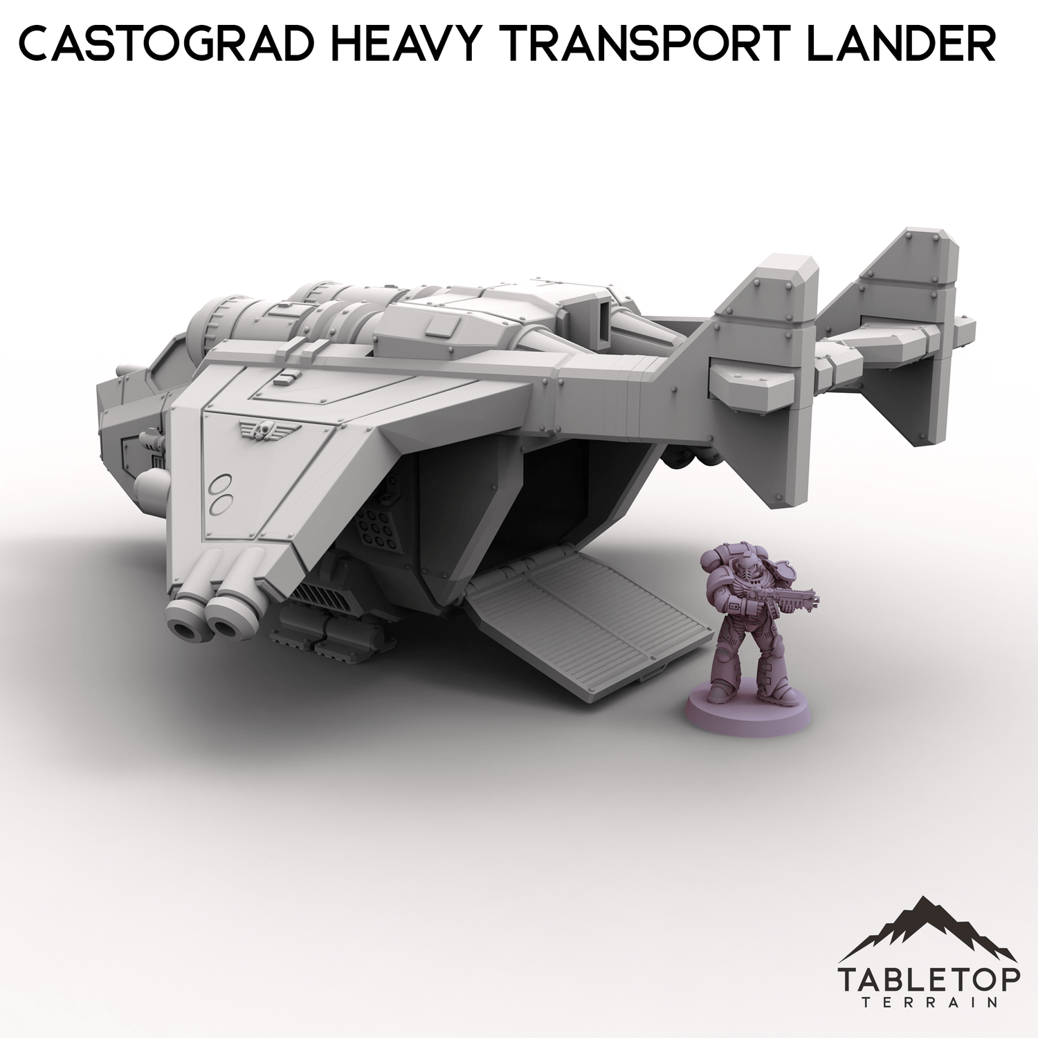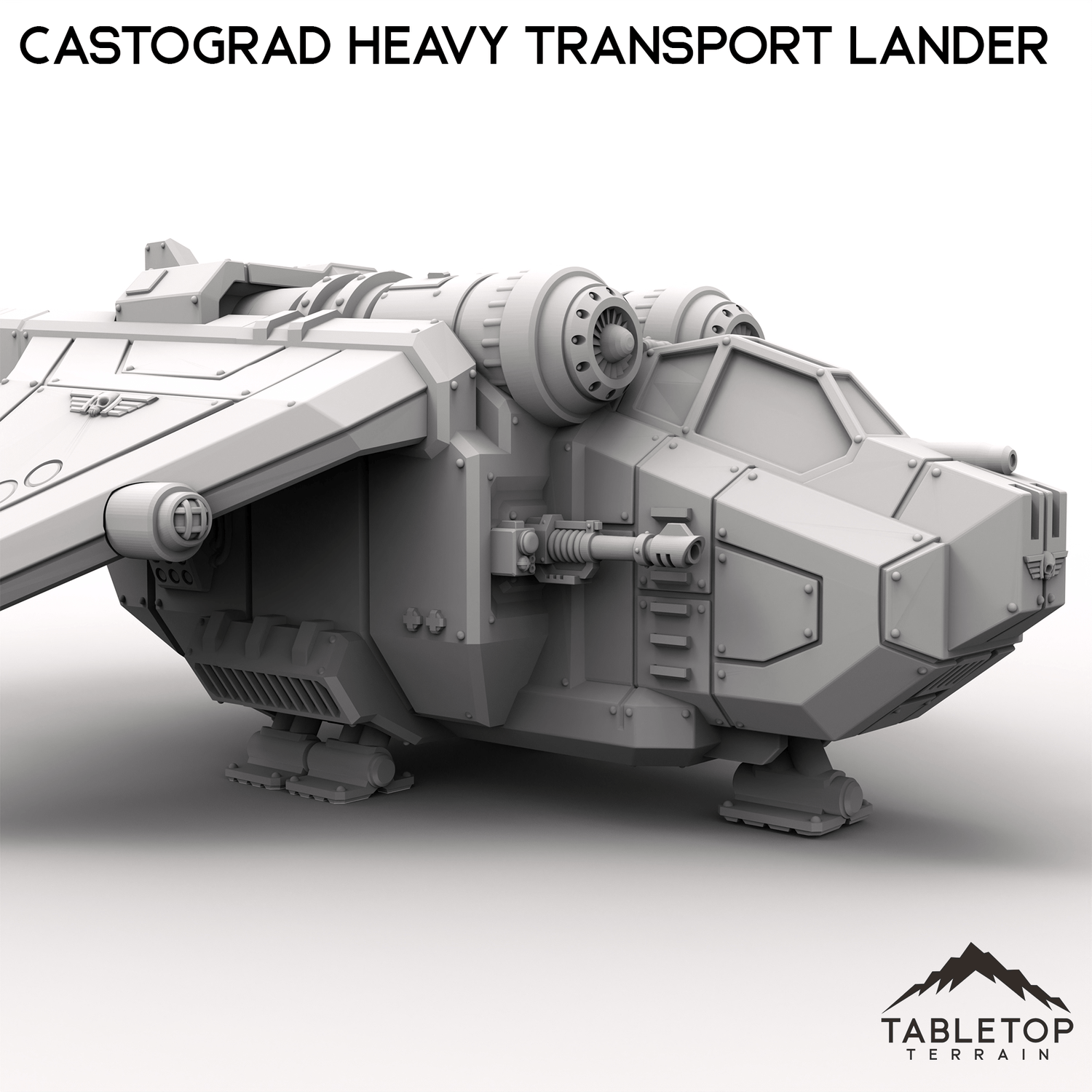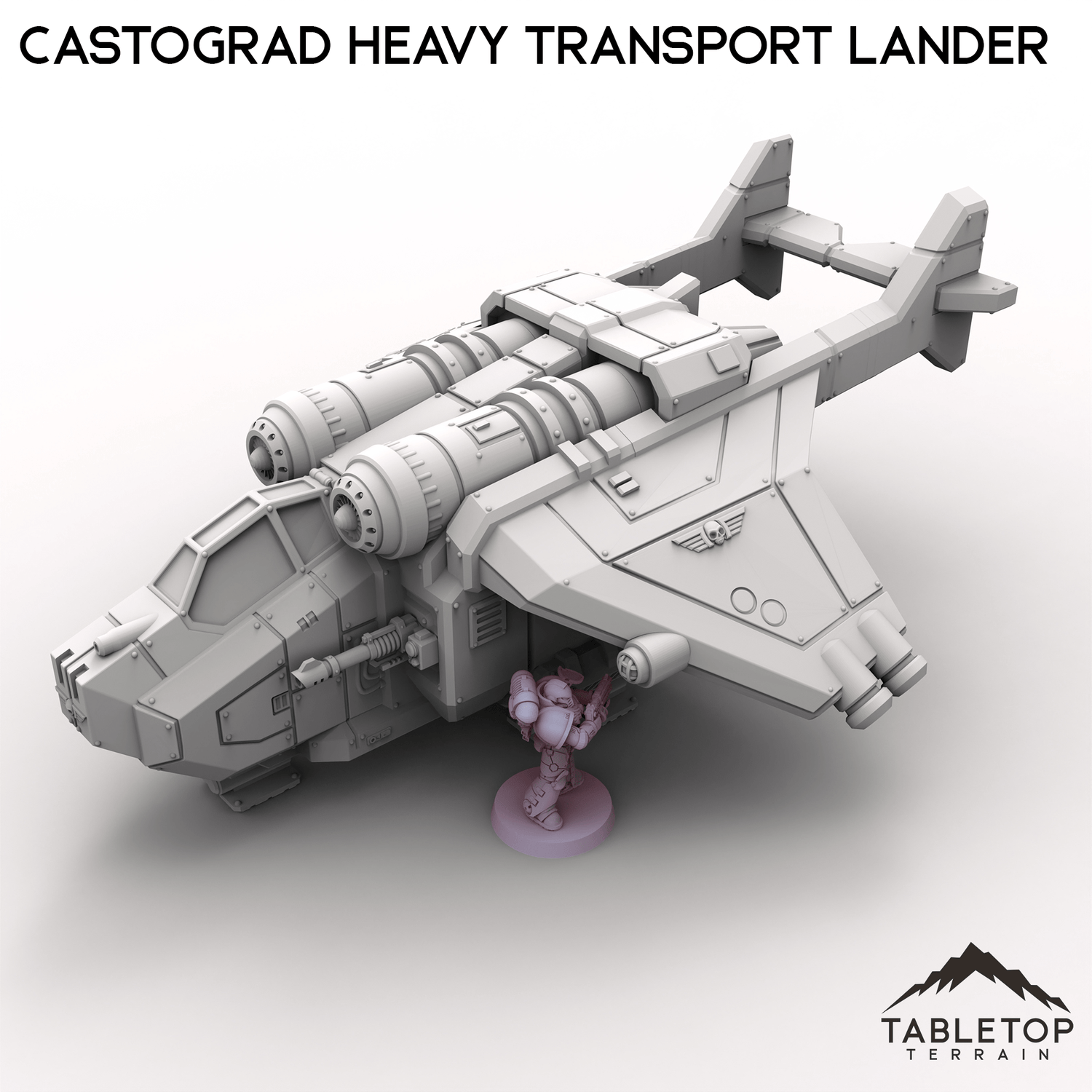 A key part of their air support, the Castograd Heavy Transport Lander is able to ferry troops across the battlefield quickly and safely. The model features a swinging rear door for accessing the interior to place minis or supplies, while the entire set is made to be easy to paint and easy to store.