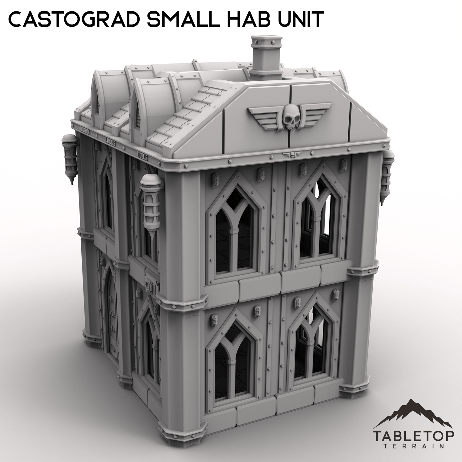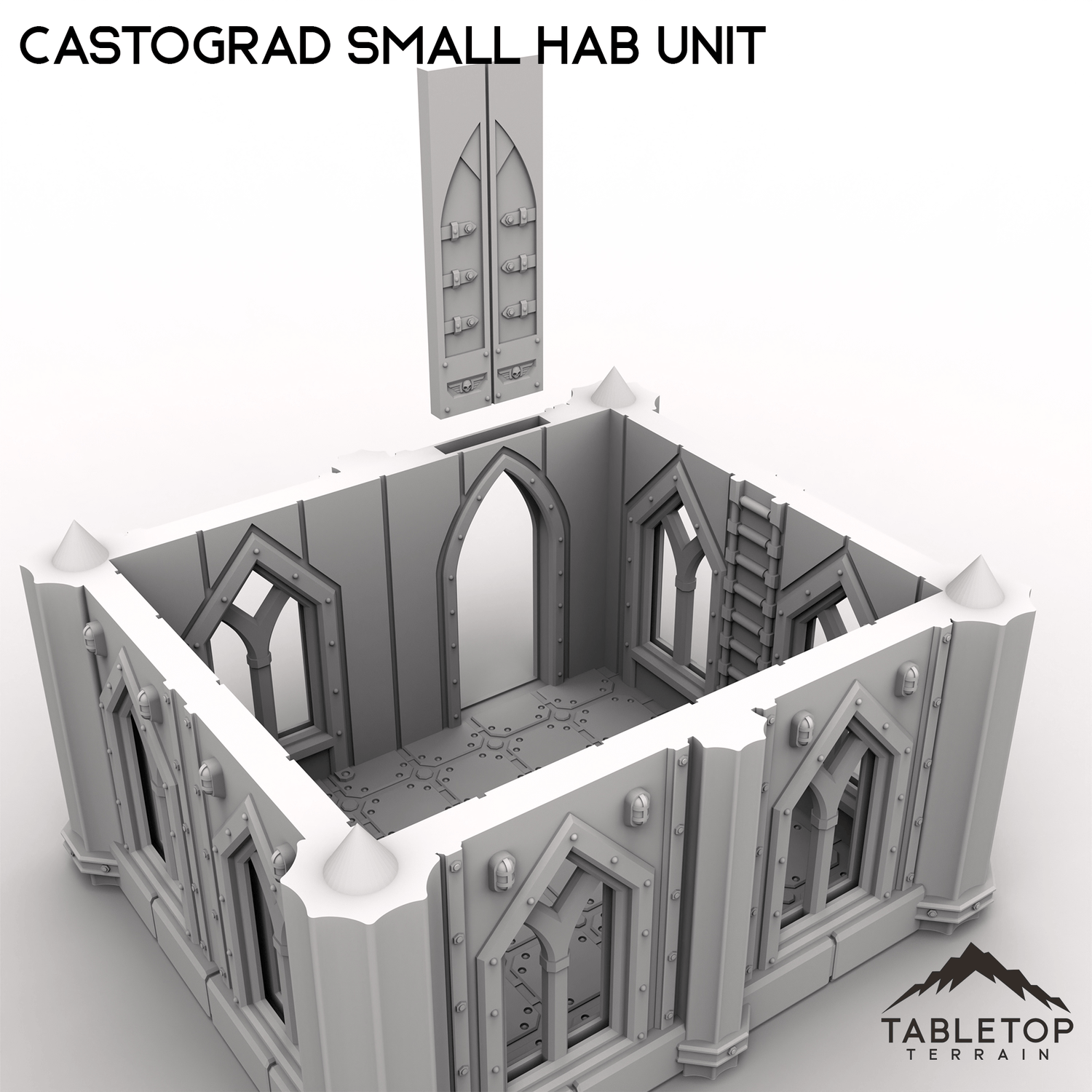 Castograd Small Hab Unit is a simple, sturdy building that matches the look and feel of other items for the Castograd set. The building has 2 different roof options, both of which are included with each building. The front door is removable, and has a small slot of sliding it open and closed as needed.