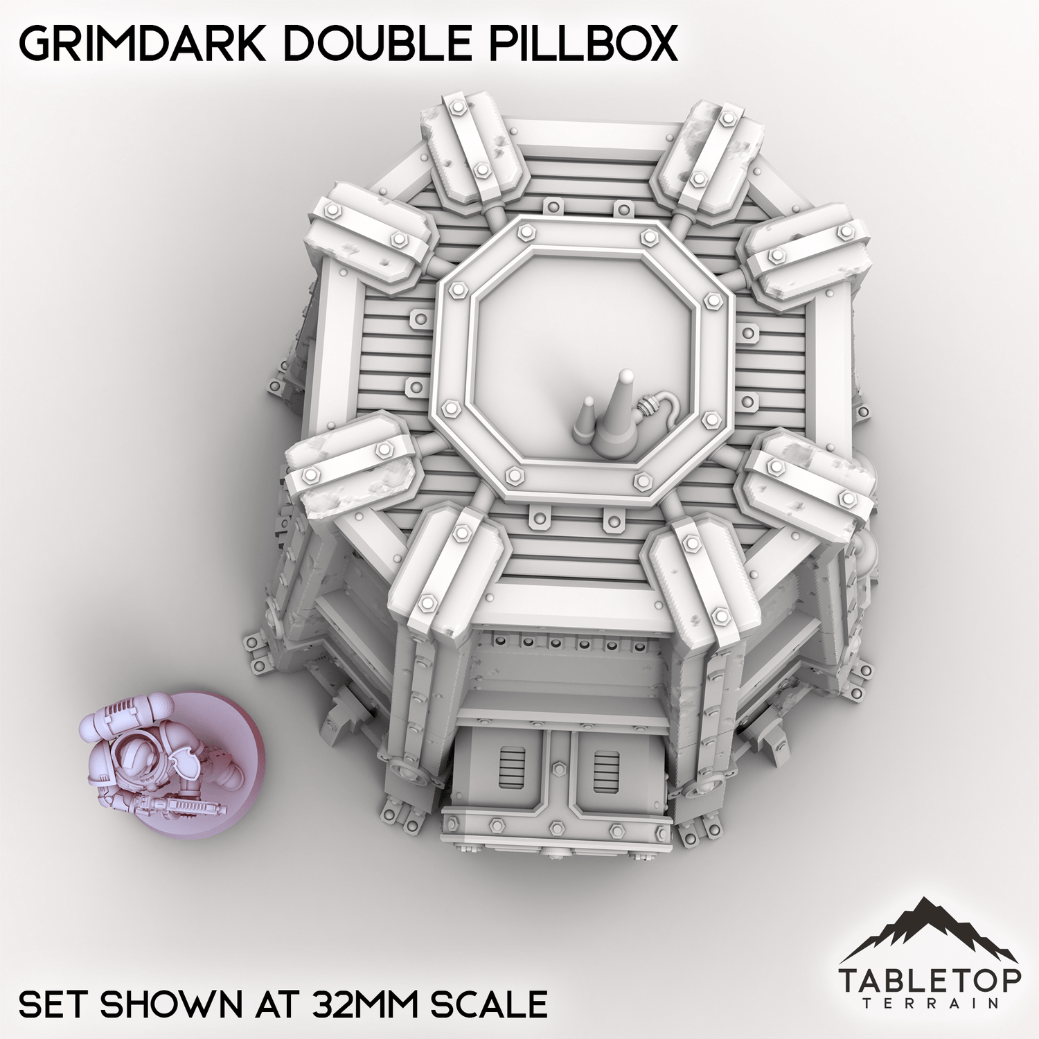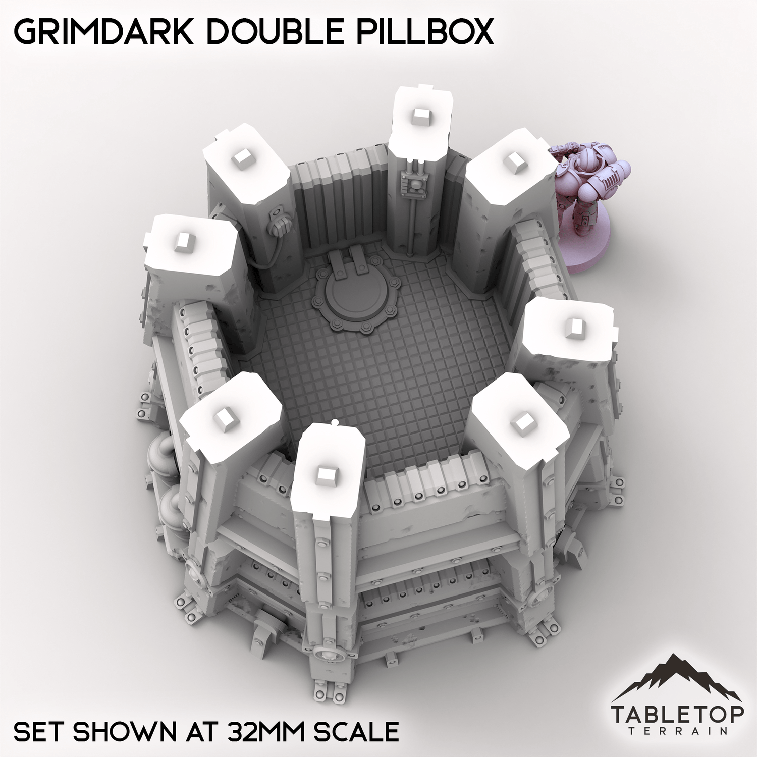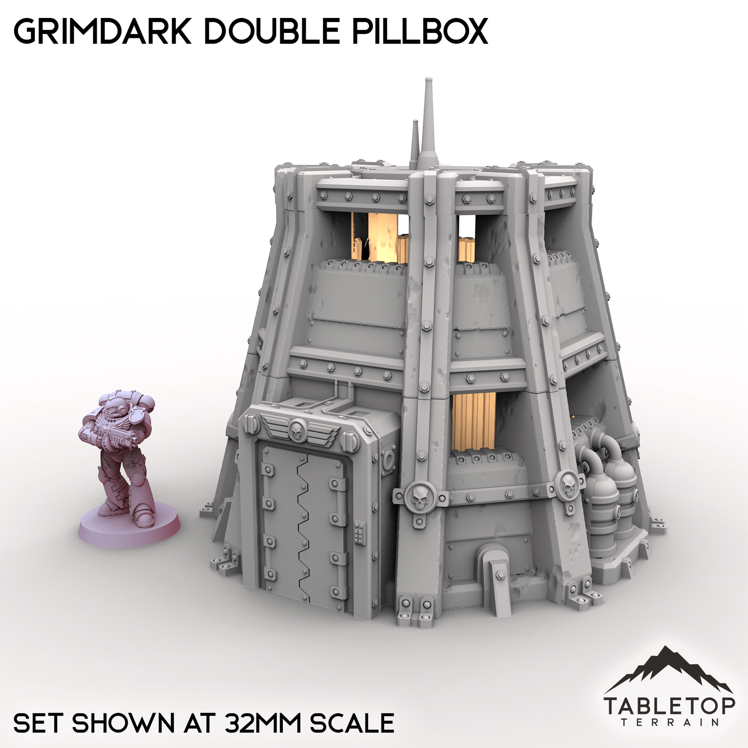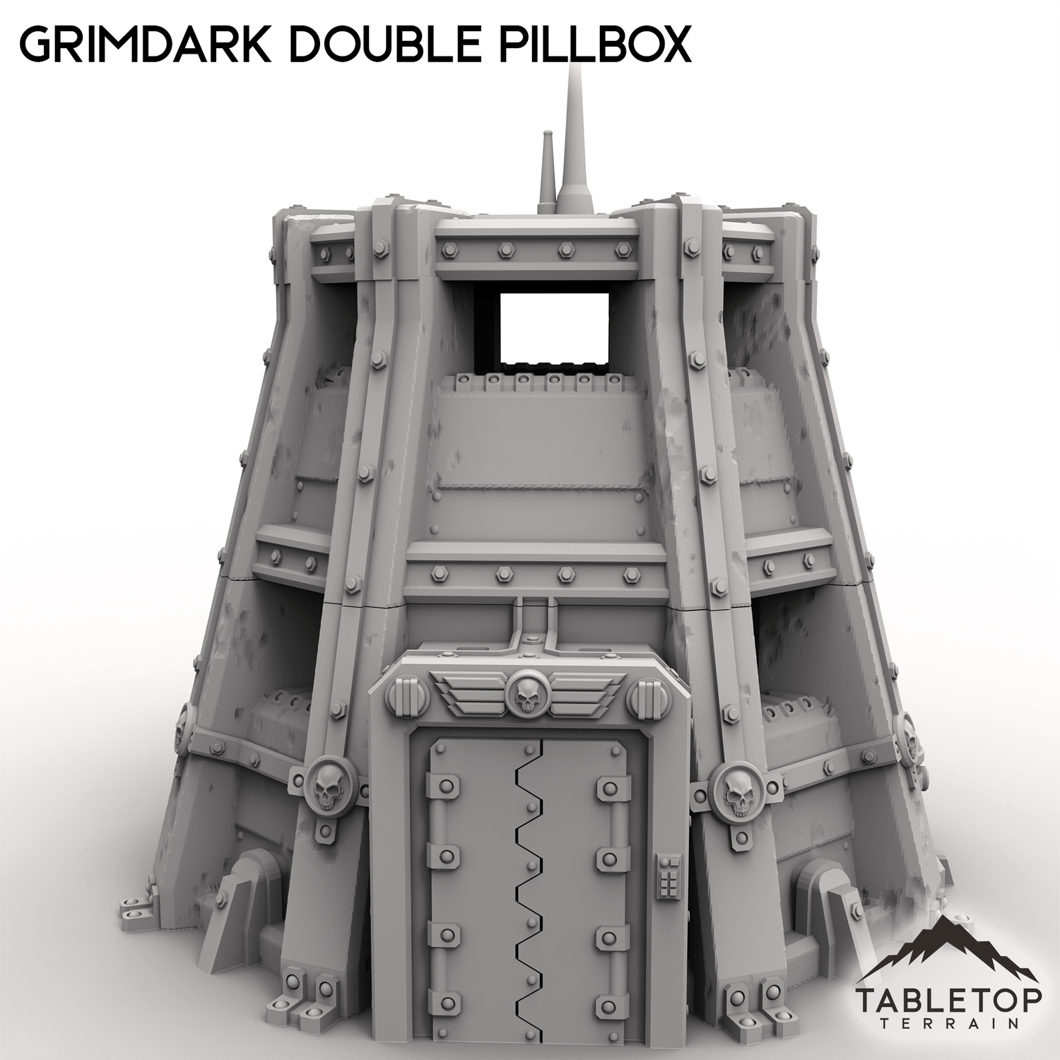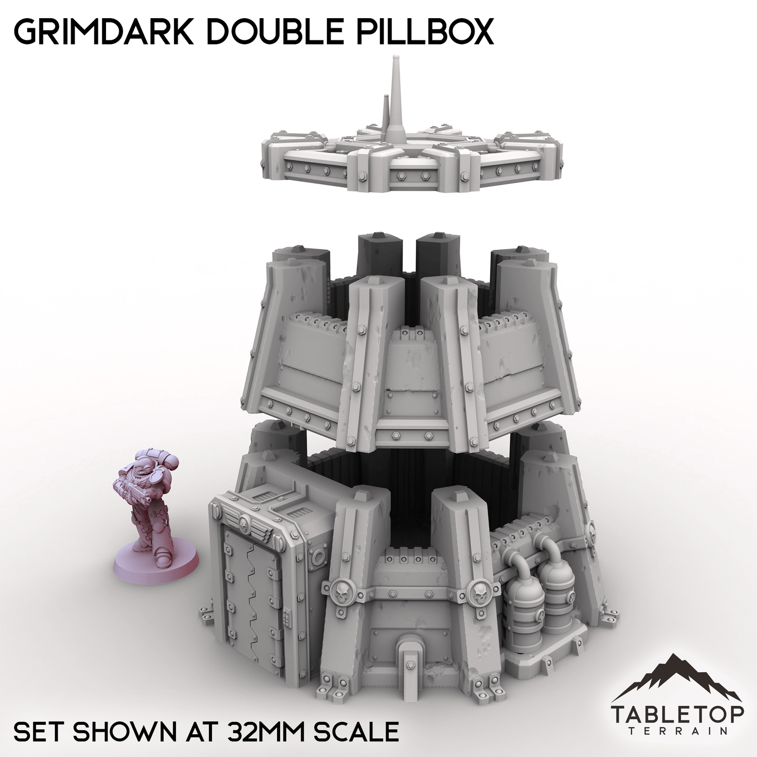 The Grimdark Double Pillbox is a double story infantry bunker with three removable parts. The middle bunker is removable from the bottom floor, as is the top roof. It is designed to give troops inside cover and open shooting lanes to the enemy.