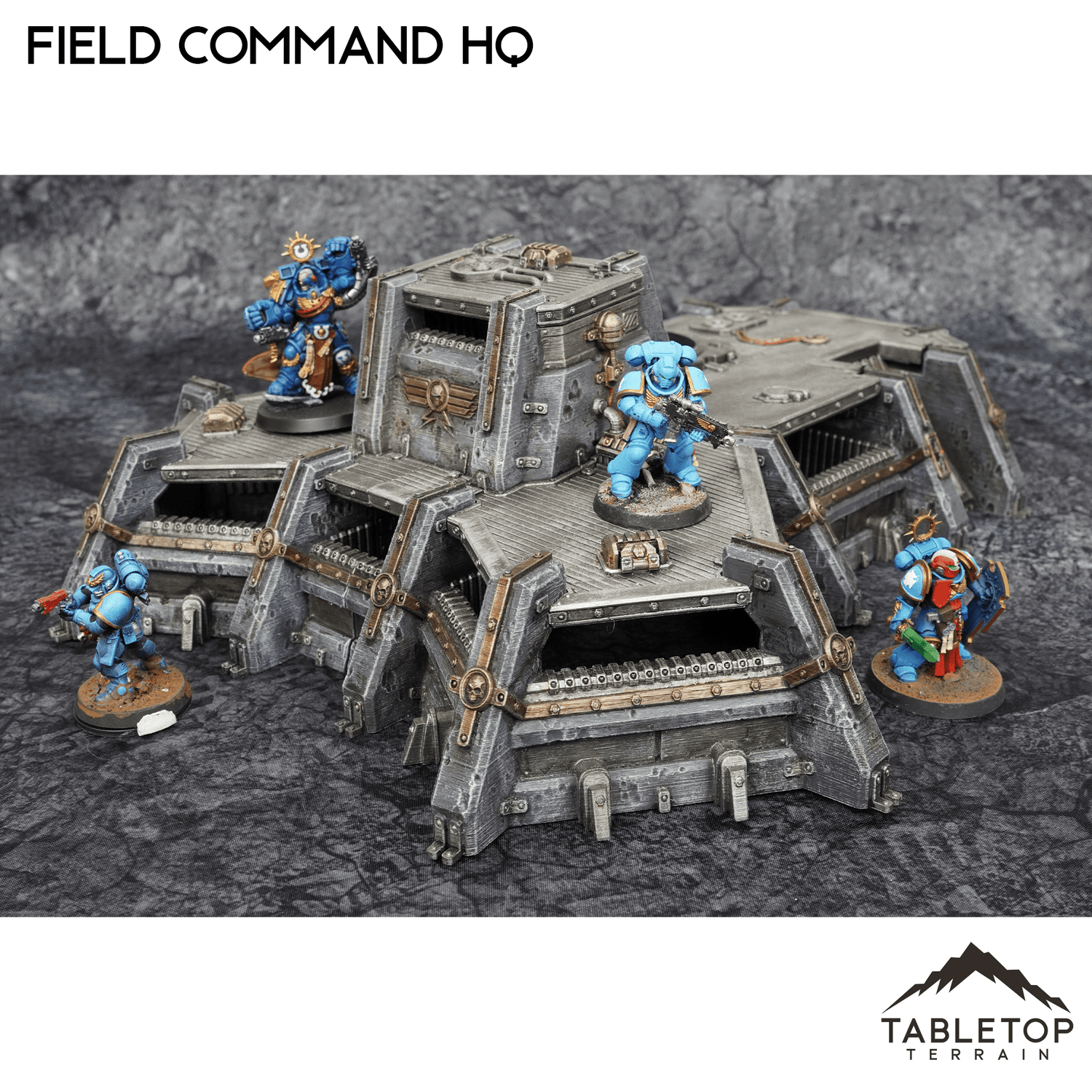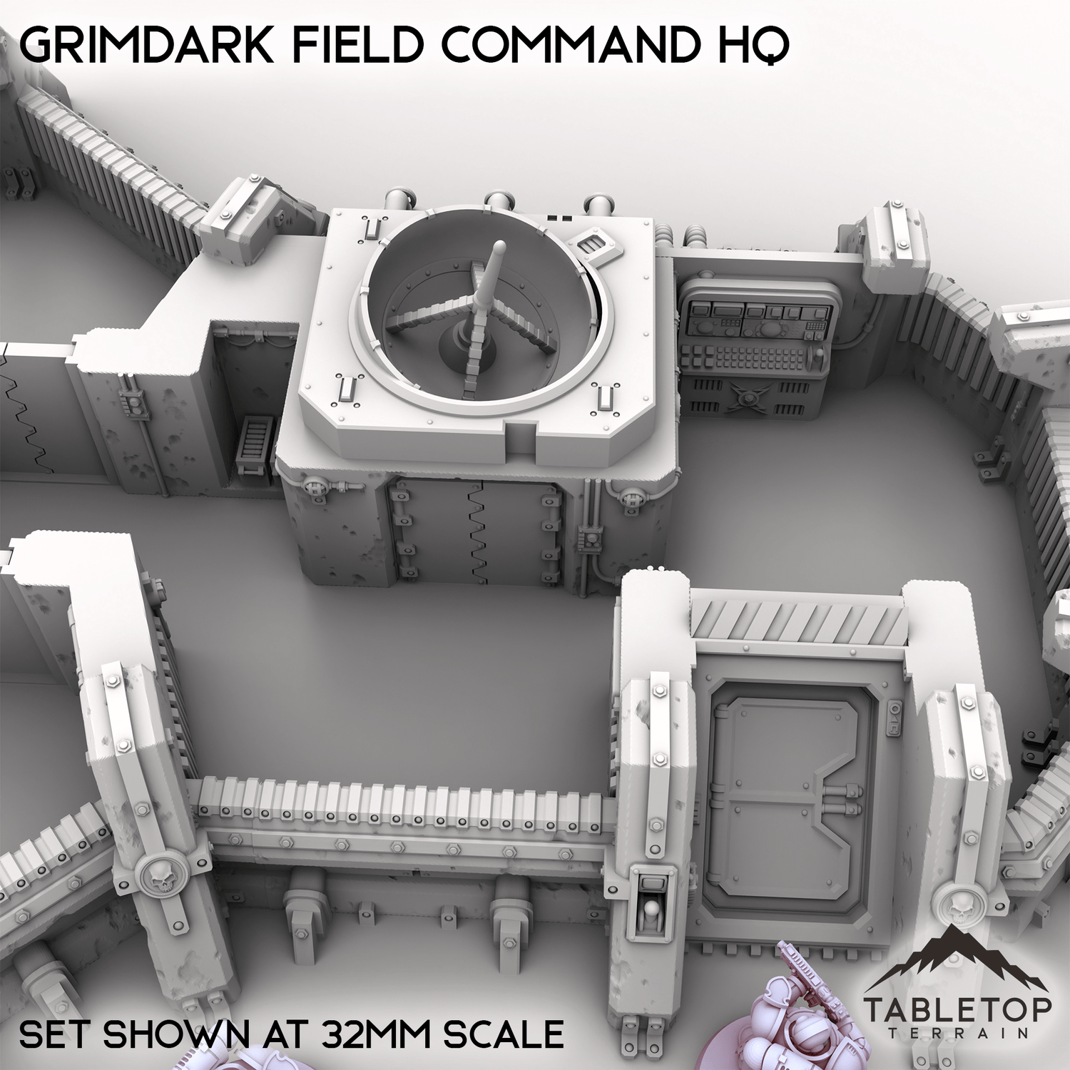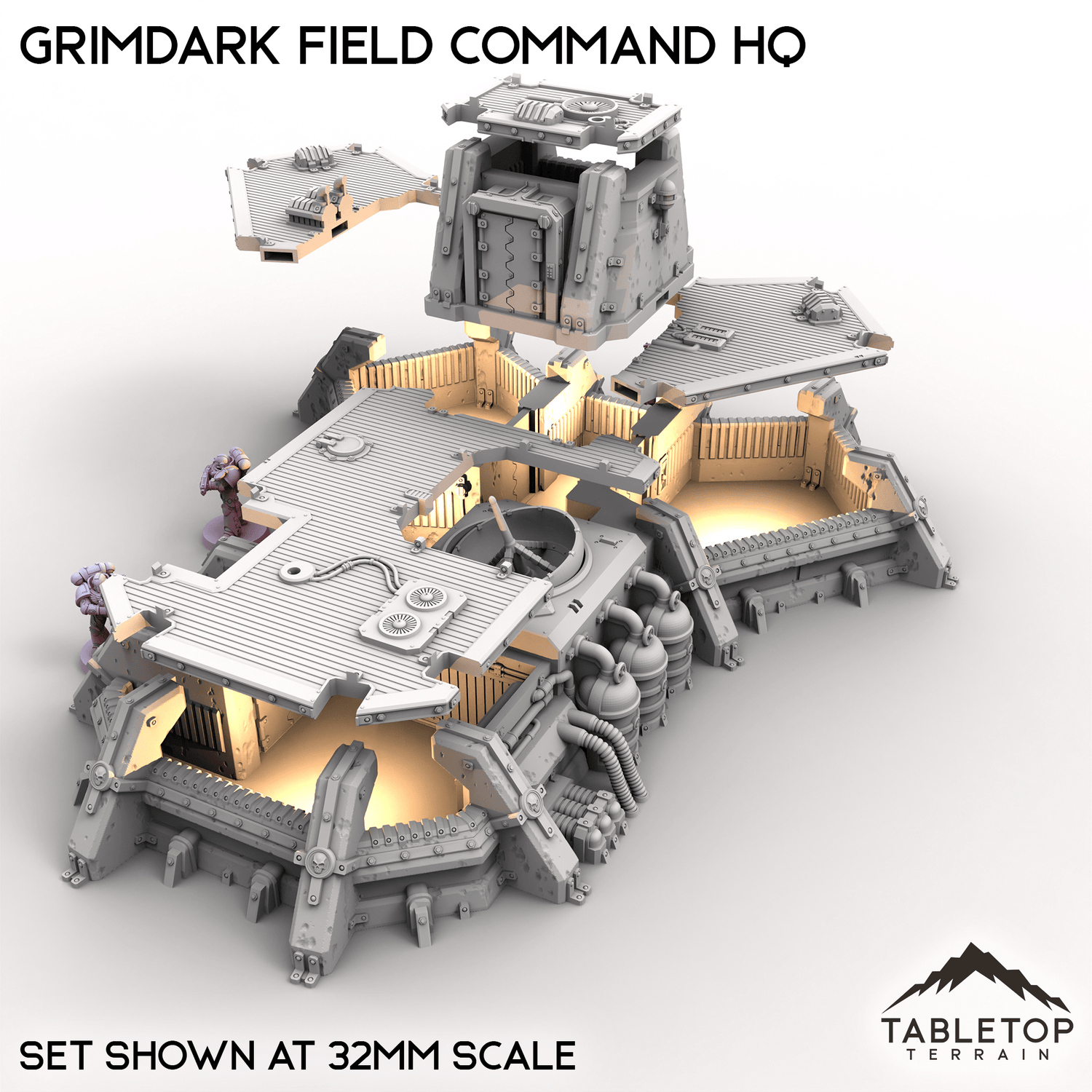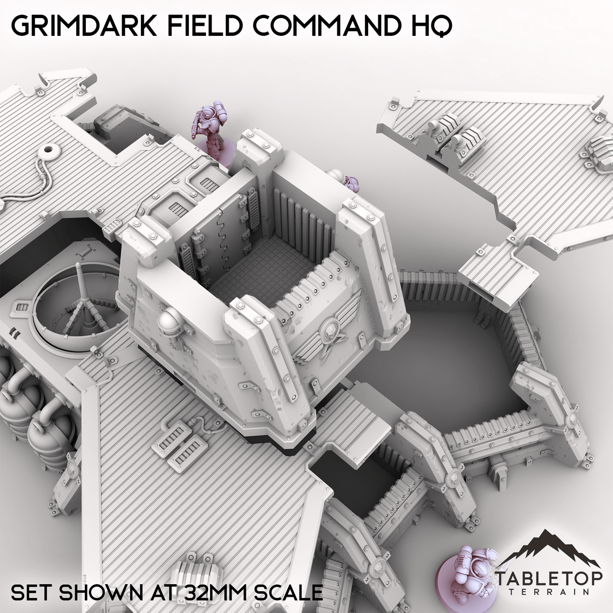 The Grimdark Field Command HQ is a large multi-piece strategic headquarters for the chapter. It has a fully removable roof so troops can fit inside. The upper bunker is also removable giving you many options on the battlefield.