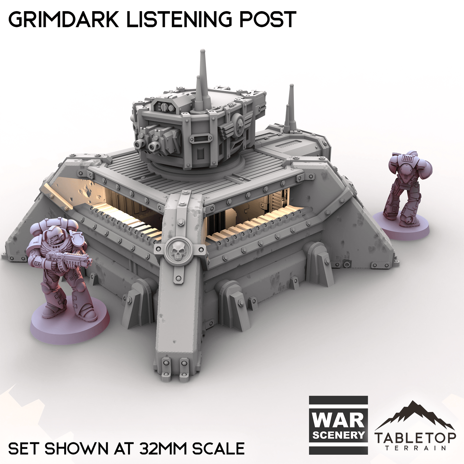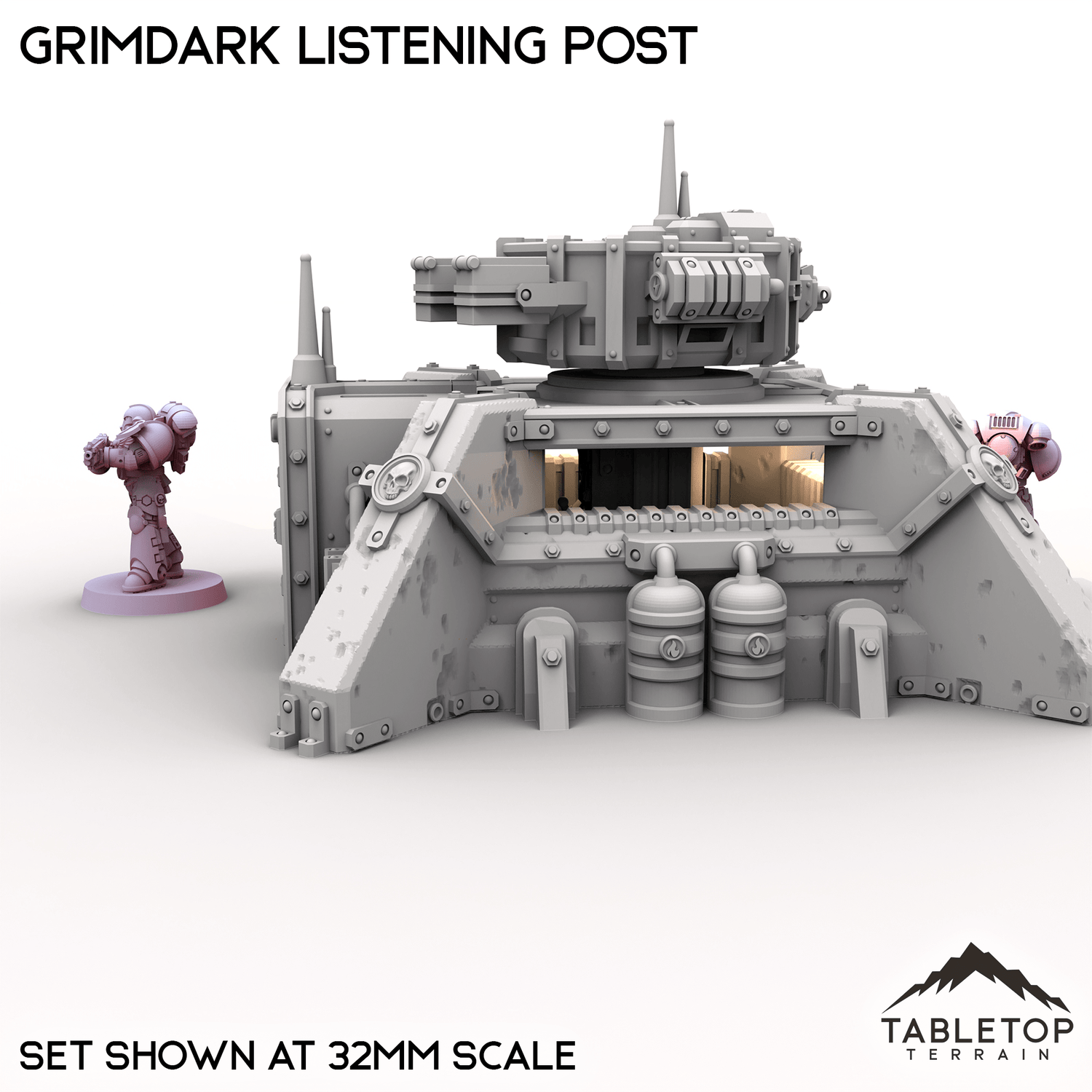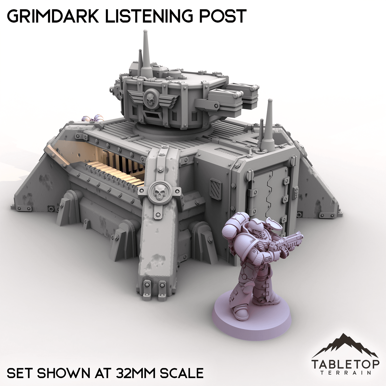 The Grimdark Listening Post is an outpost with a top mounted autocannon. Inside is a command station for a troop to man the gun.
