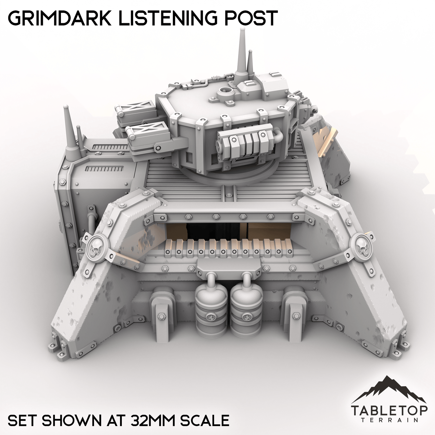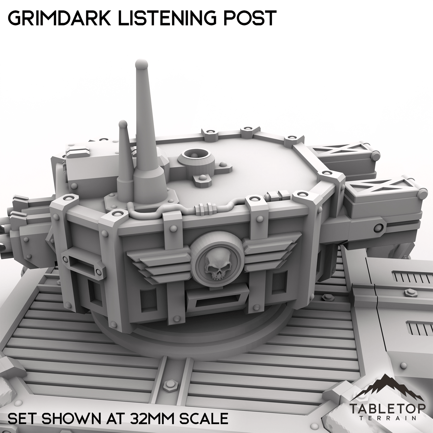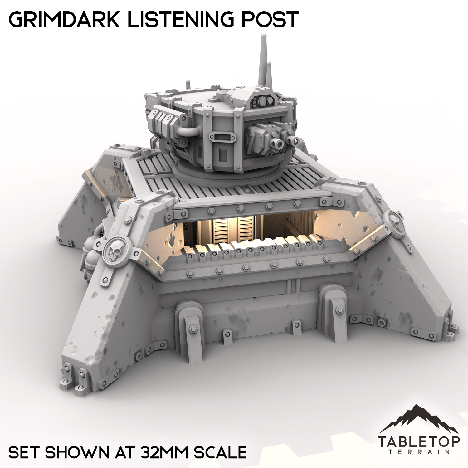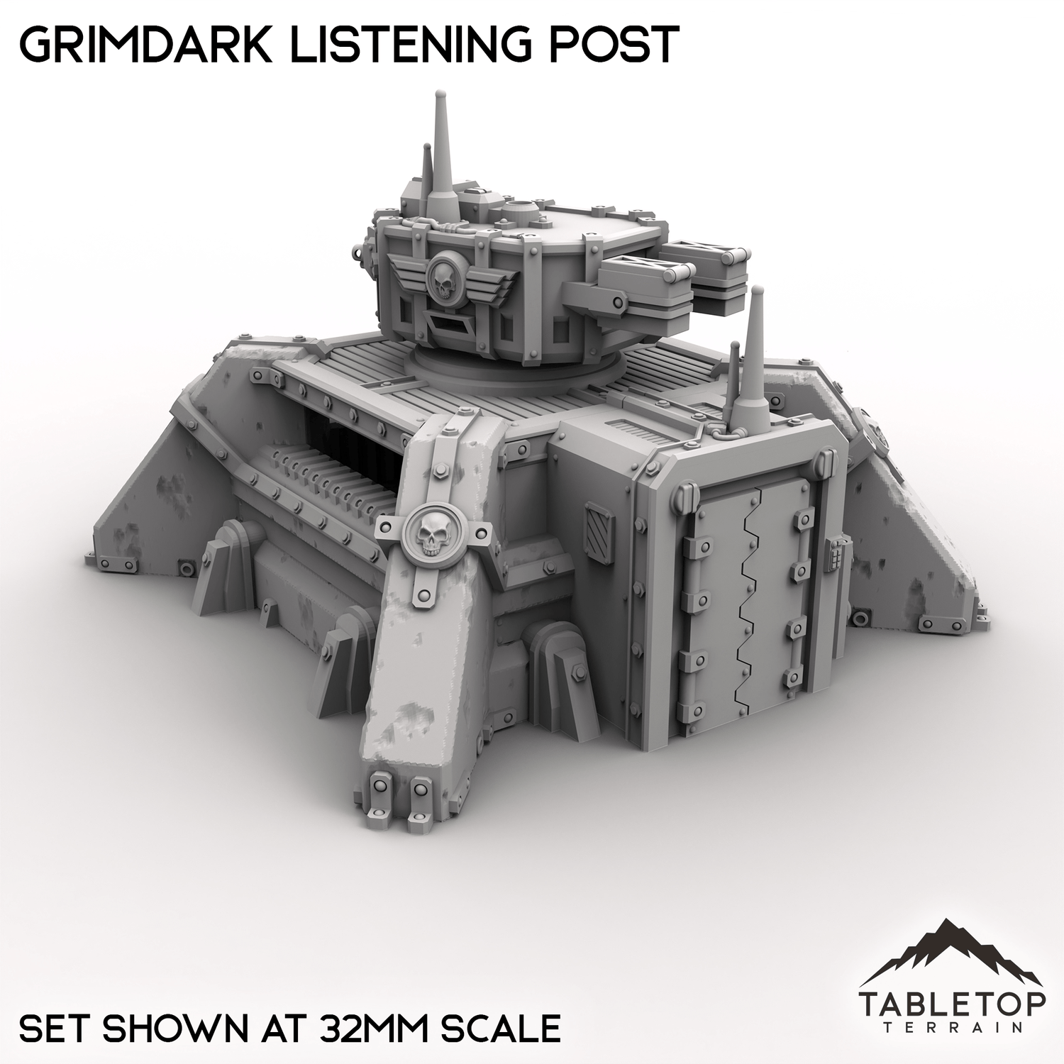 The Grimdark Listening Post is an outpost with a top mounted autocannon. Inside is a command station for a troop to man the gun.