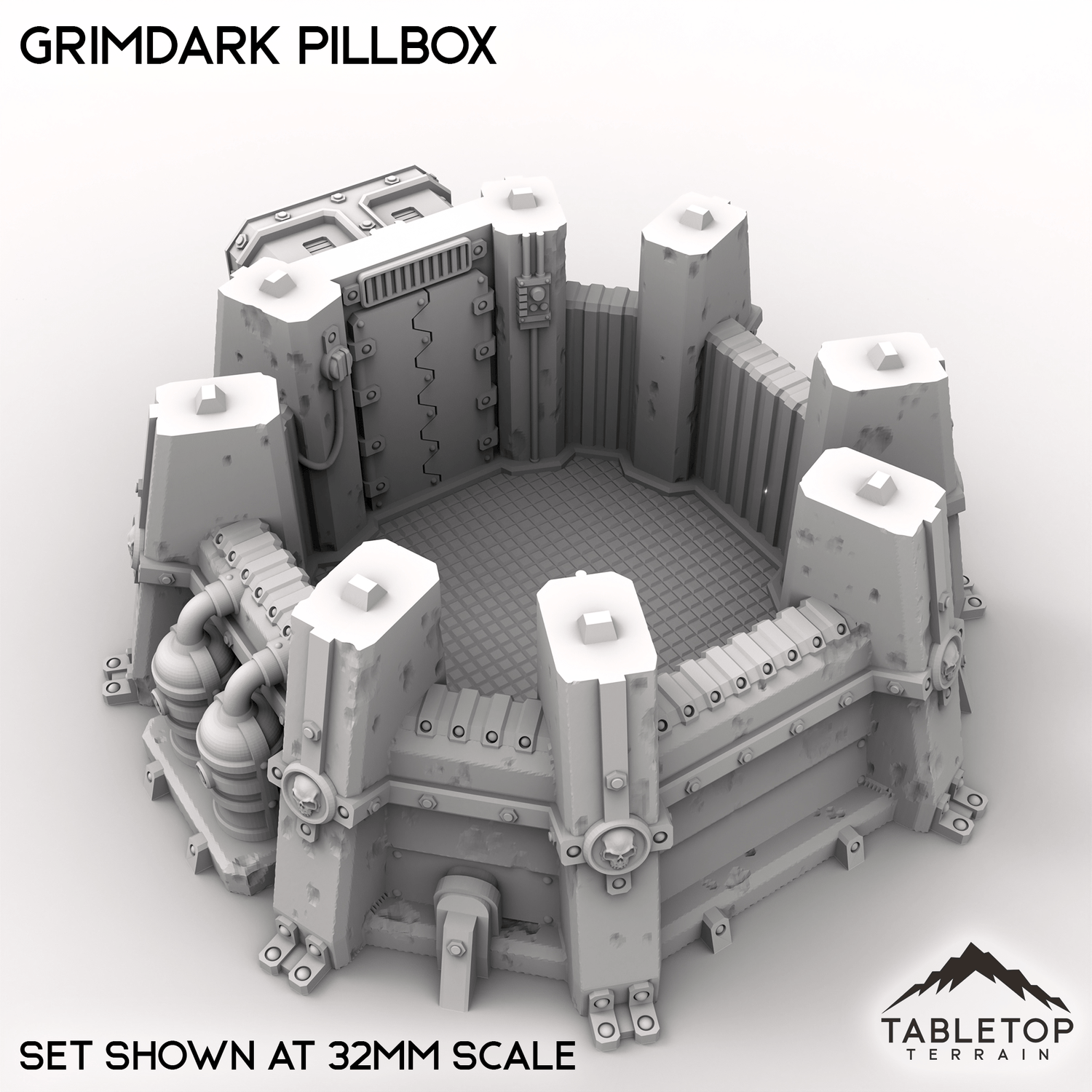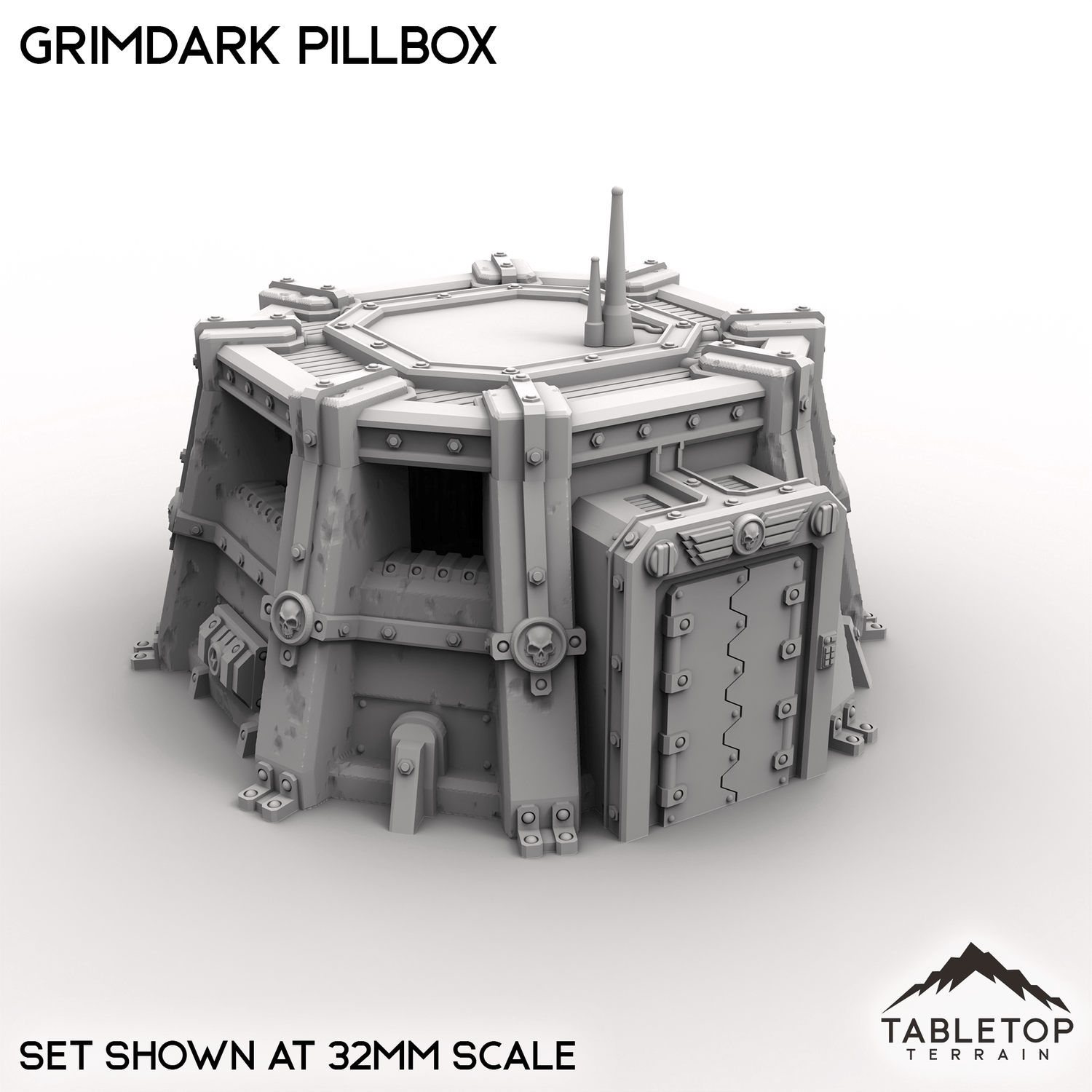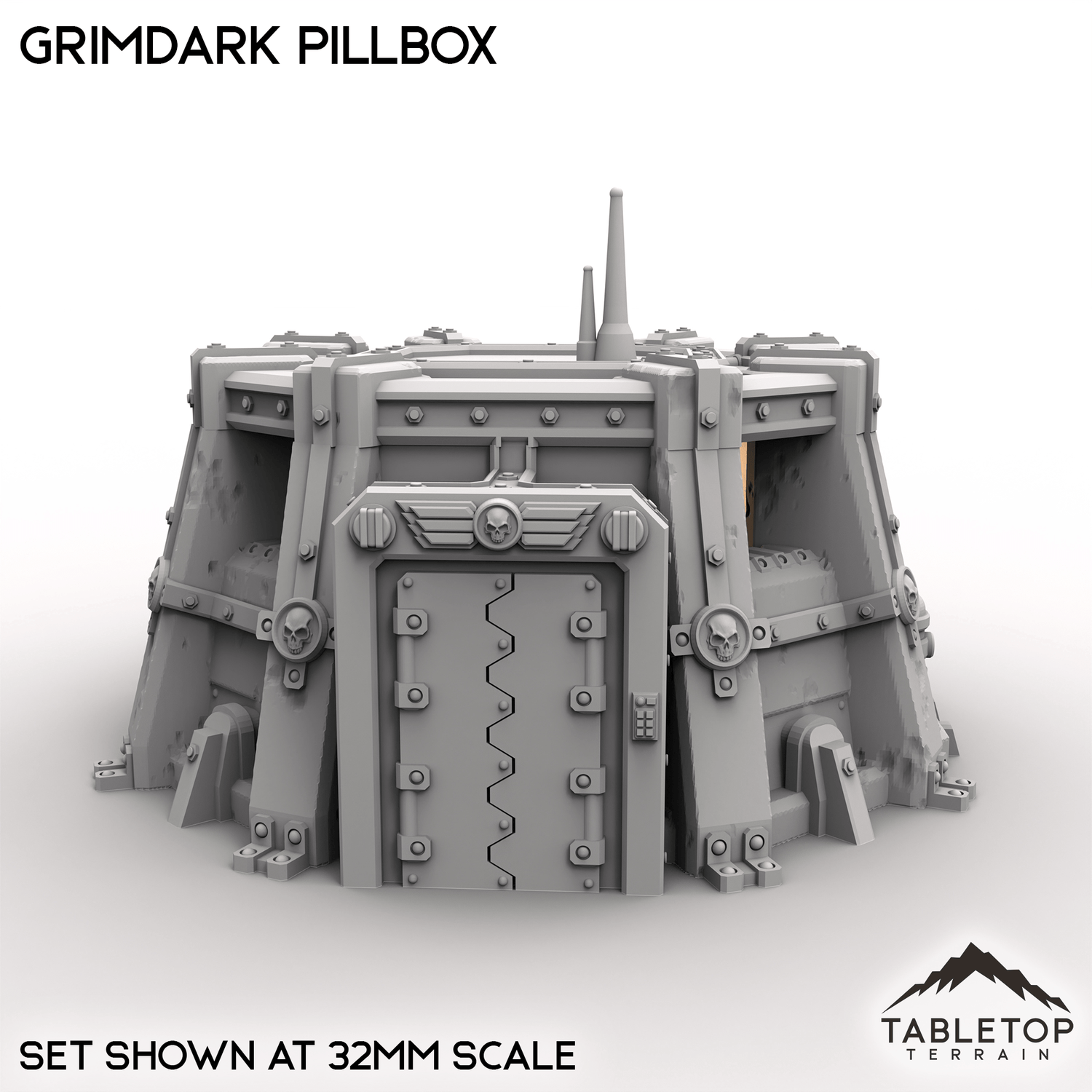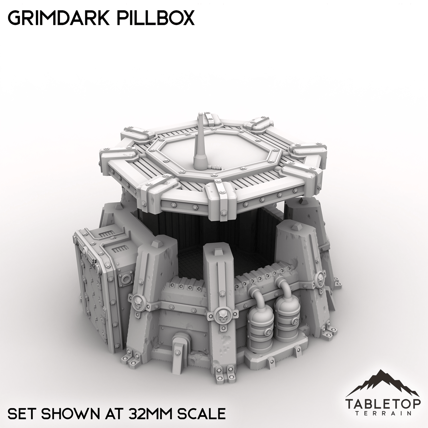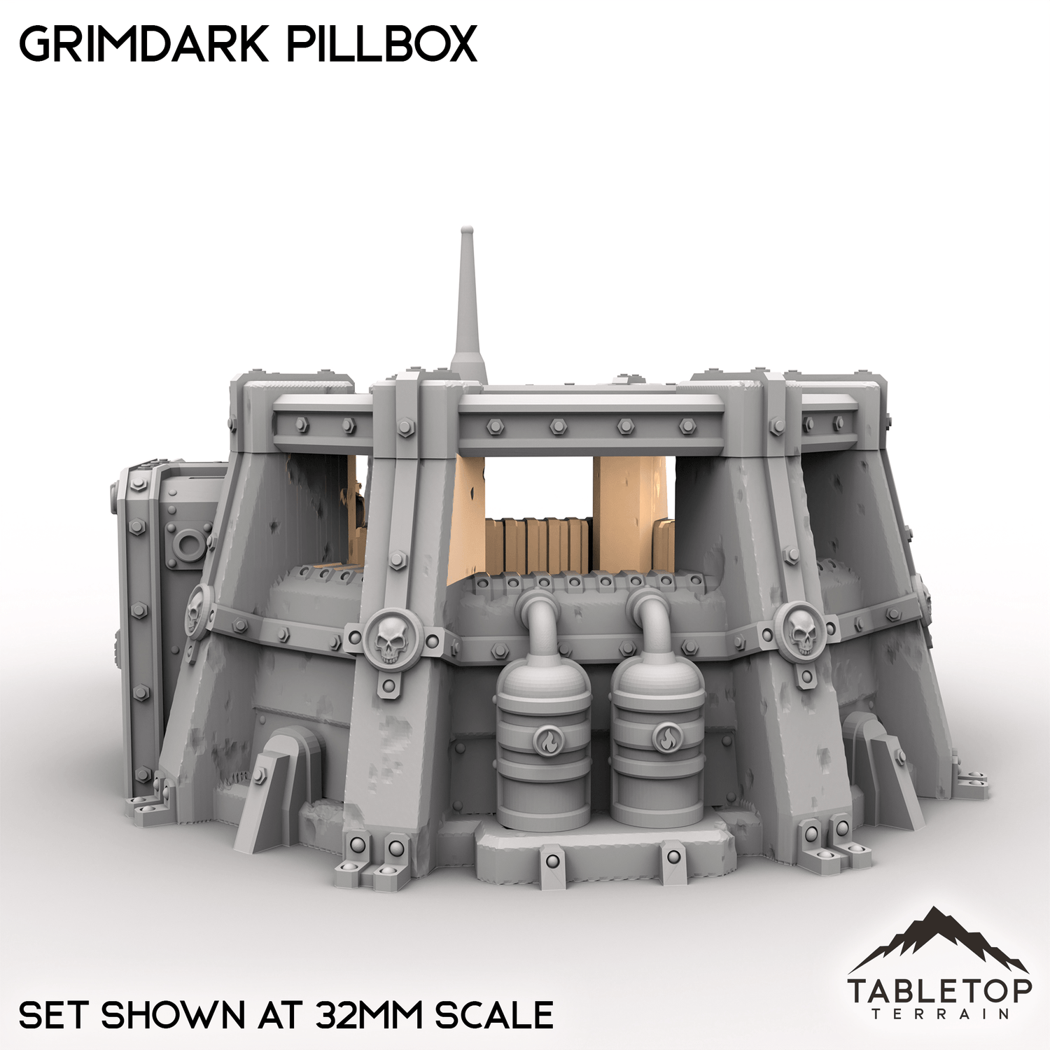 The Grimdark Pillbox is a small single story infantry bunker with a removable roof and optional top decoration. It is designed to give troops inside cover and open shooting lanes to the enemy.