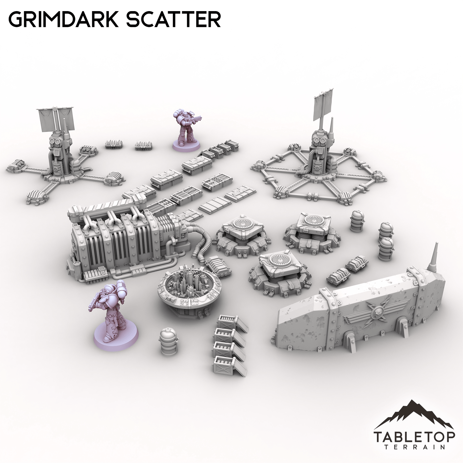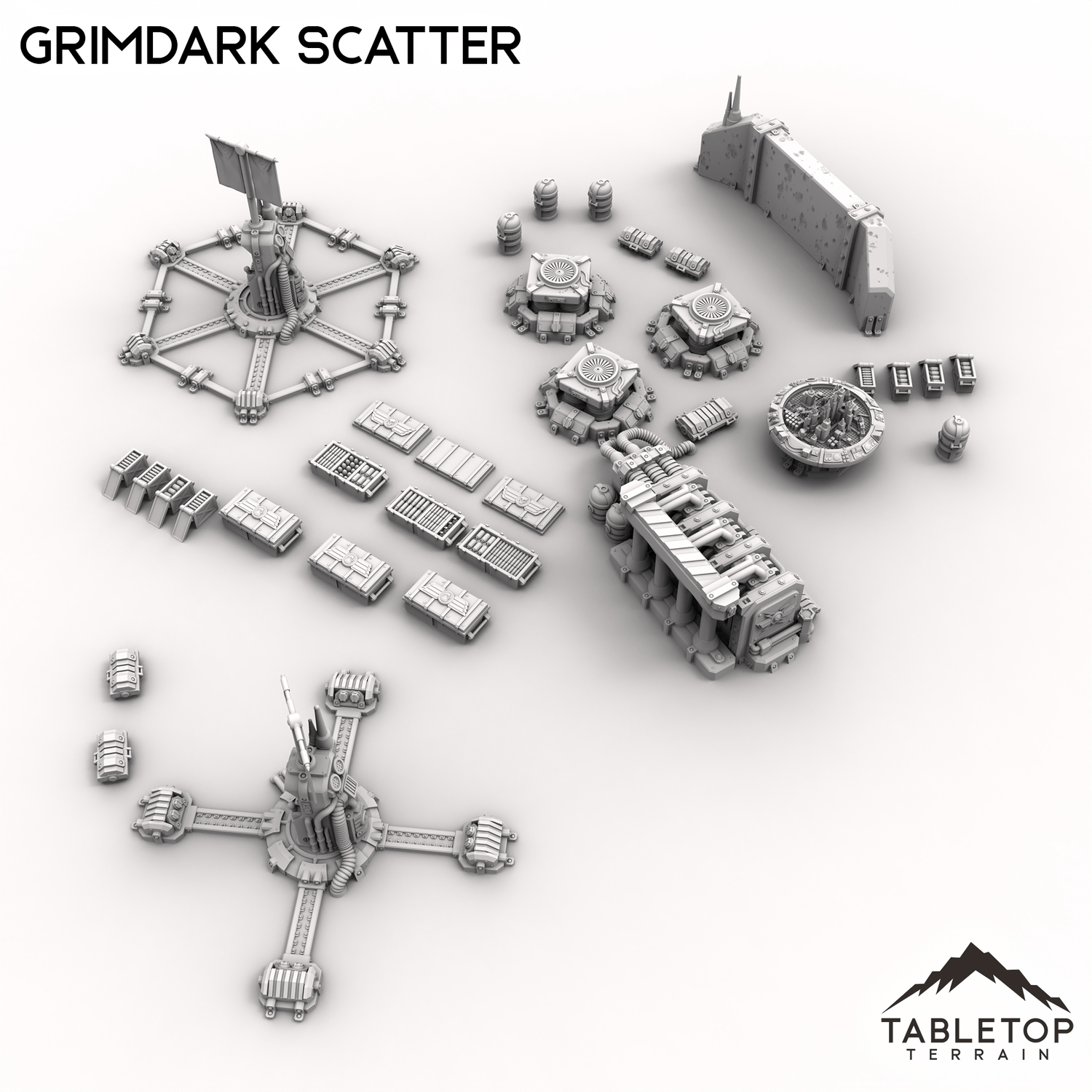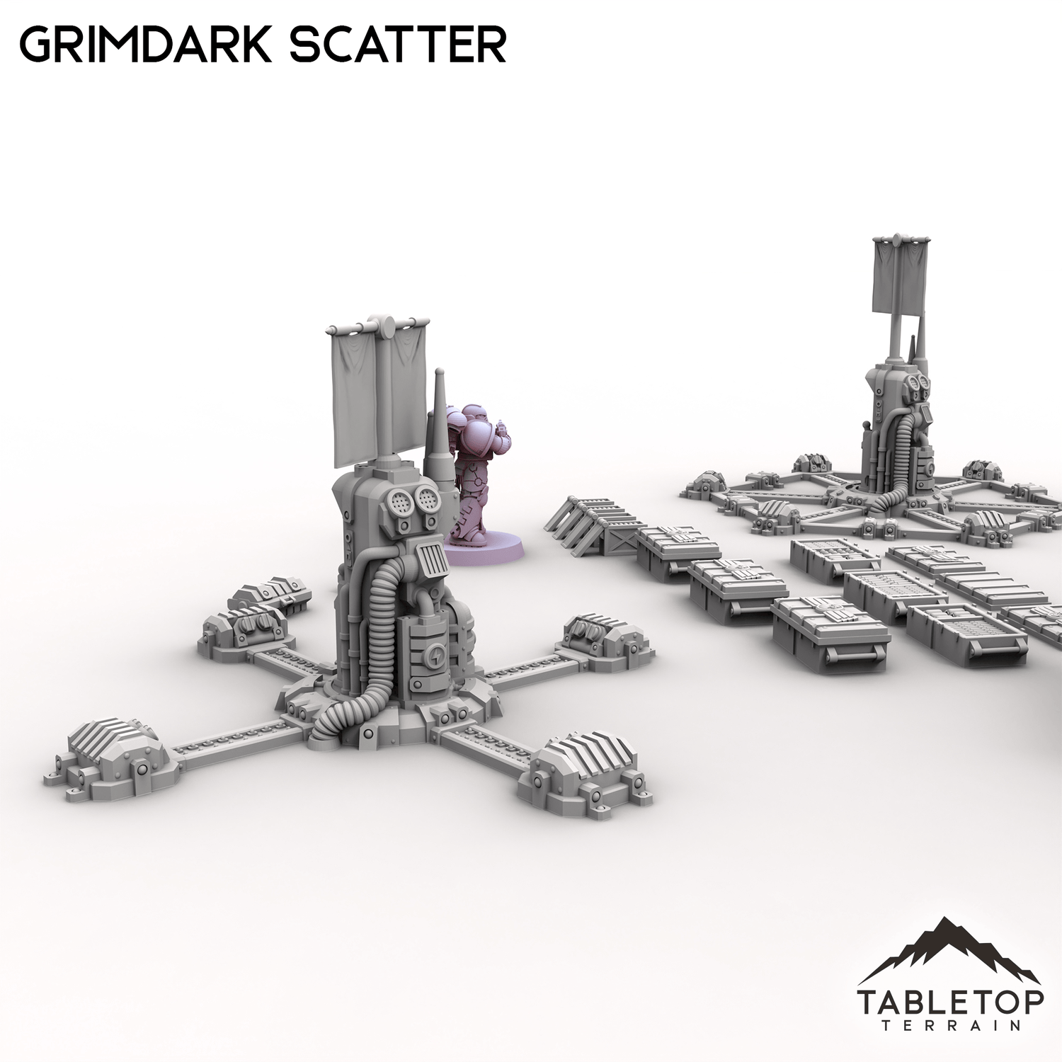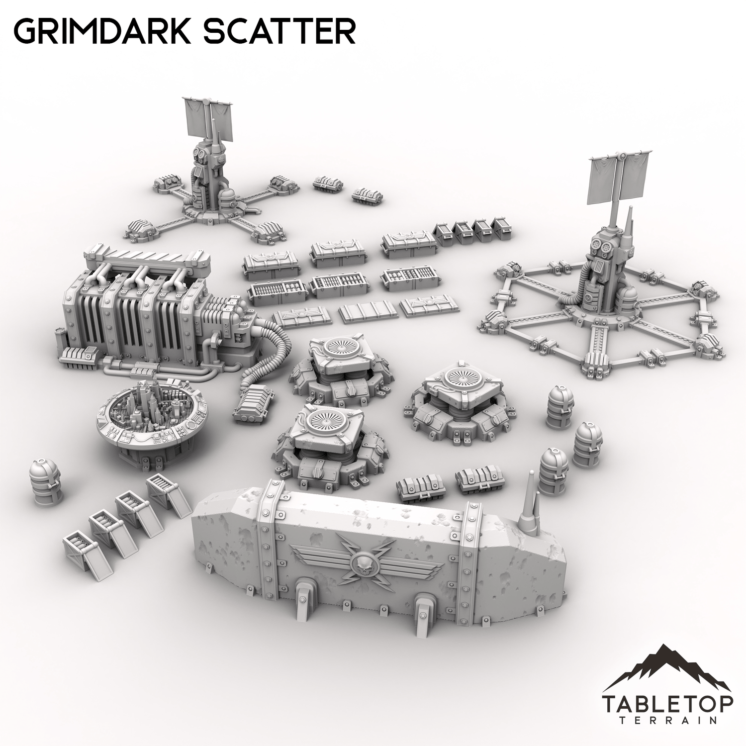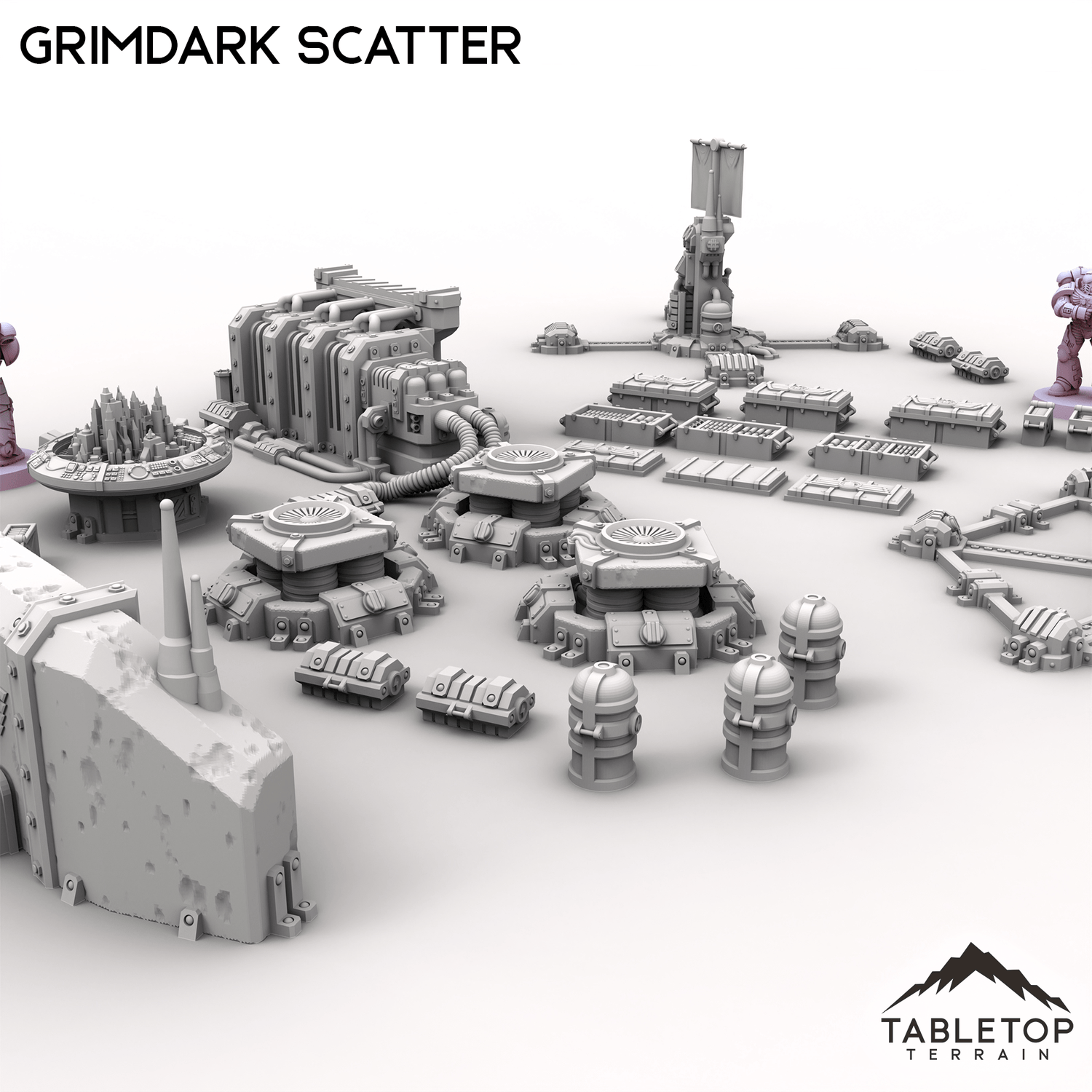 The Grimdark Scatter set is a combination of small terrain items perfect for any battlefield. The set has a wide variety of different items for different situations, allowing for a wide array of uses. The Scatter set is a great way to flesh out your tabletop and give life to the battle.