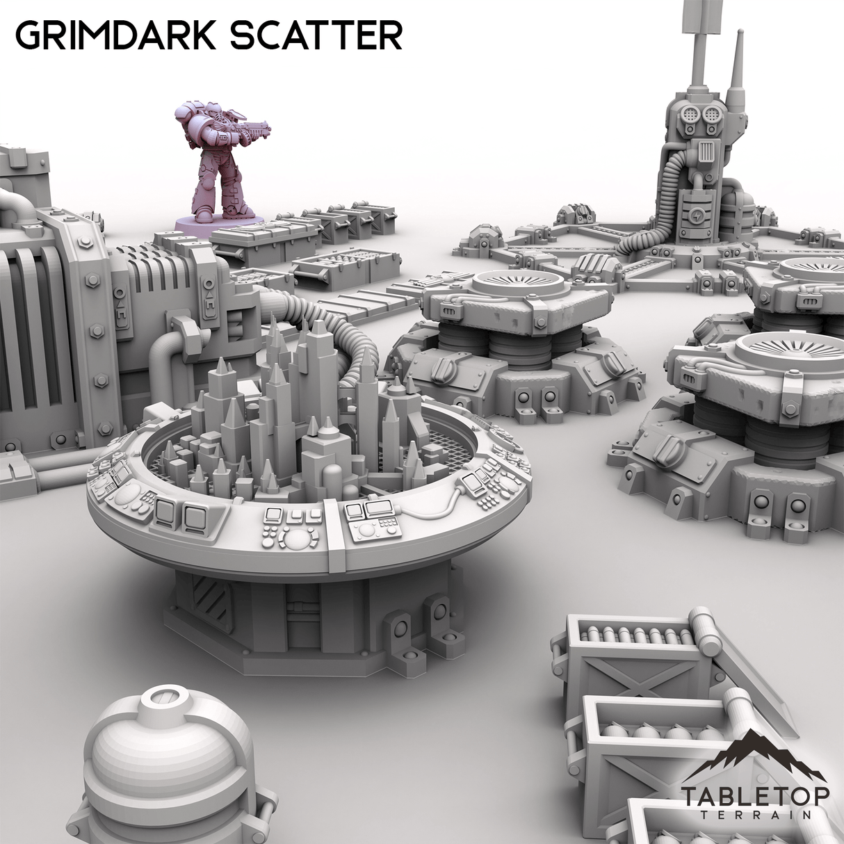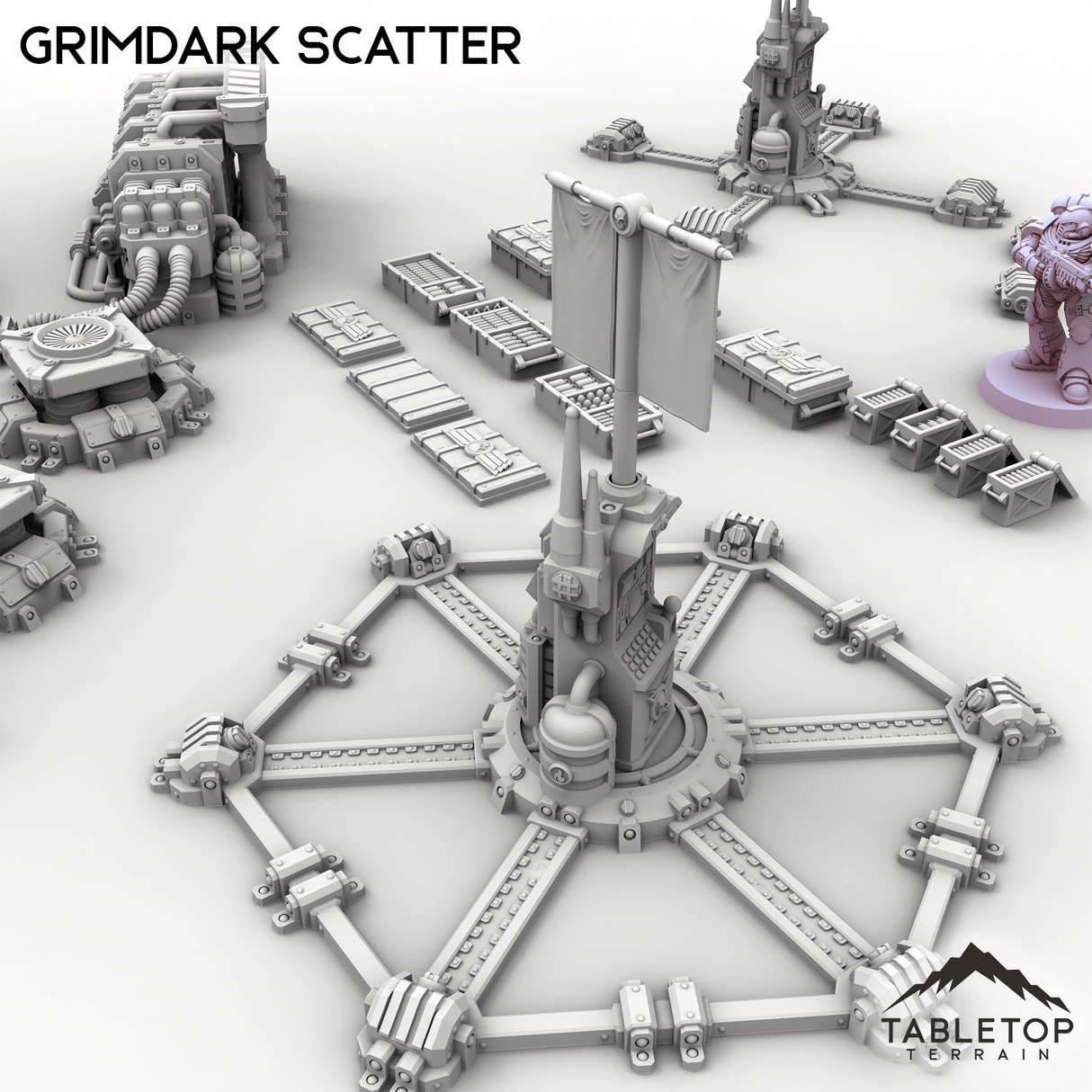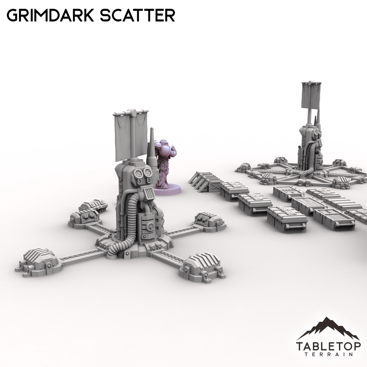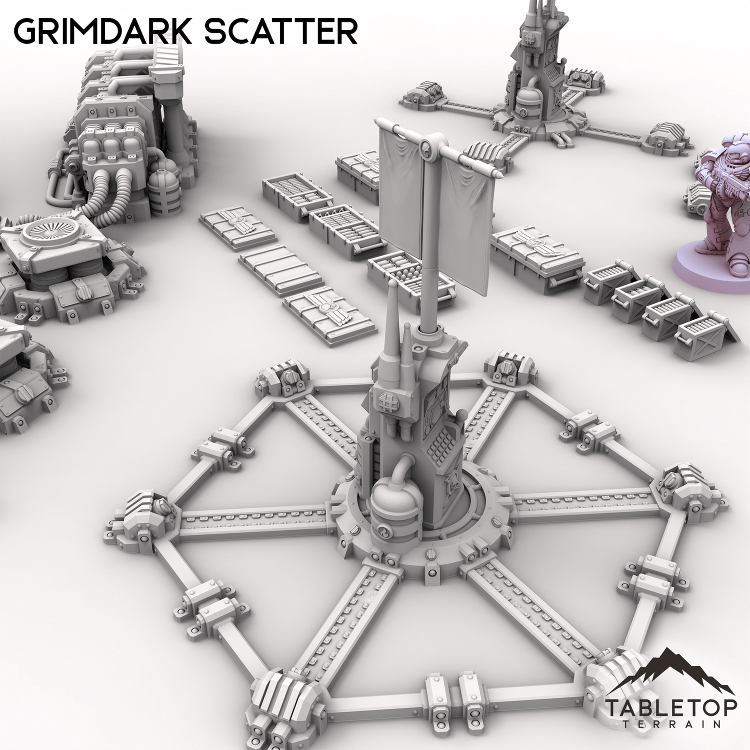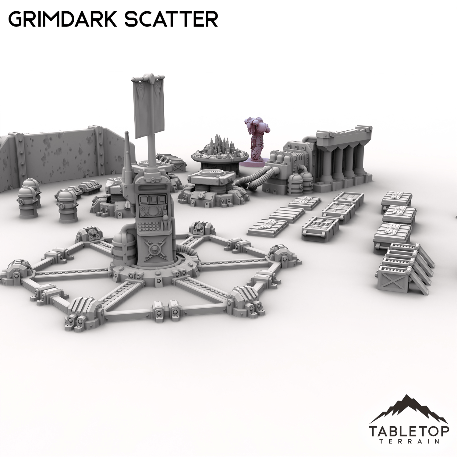 The Grimdark Scatter set is a combination of small terrain items perfect for any battlefield. The set has a wide variety of different items for different situations, allowing for a wide array of uses. The Scatter set is a great way to flesh out your tabletop and give life to the battle.