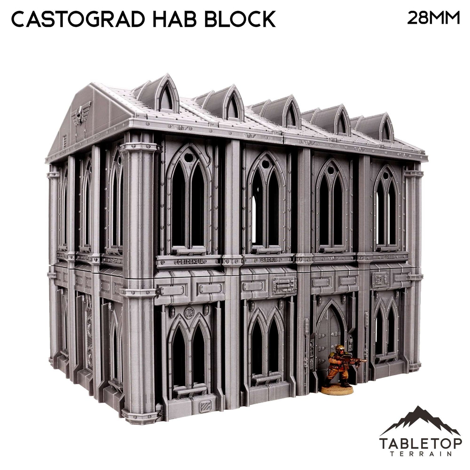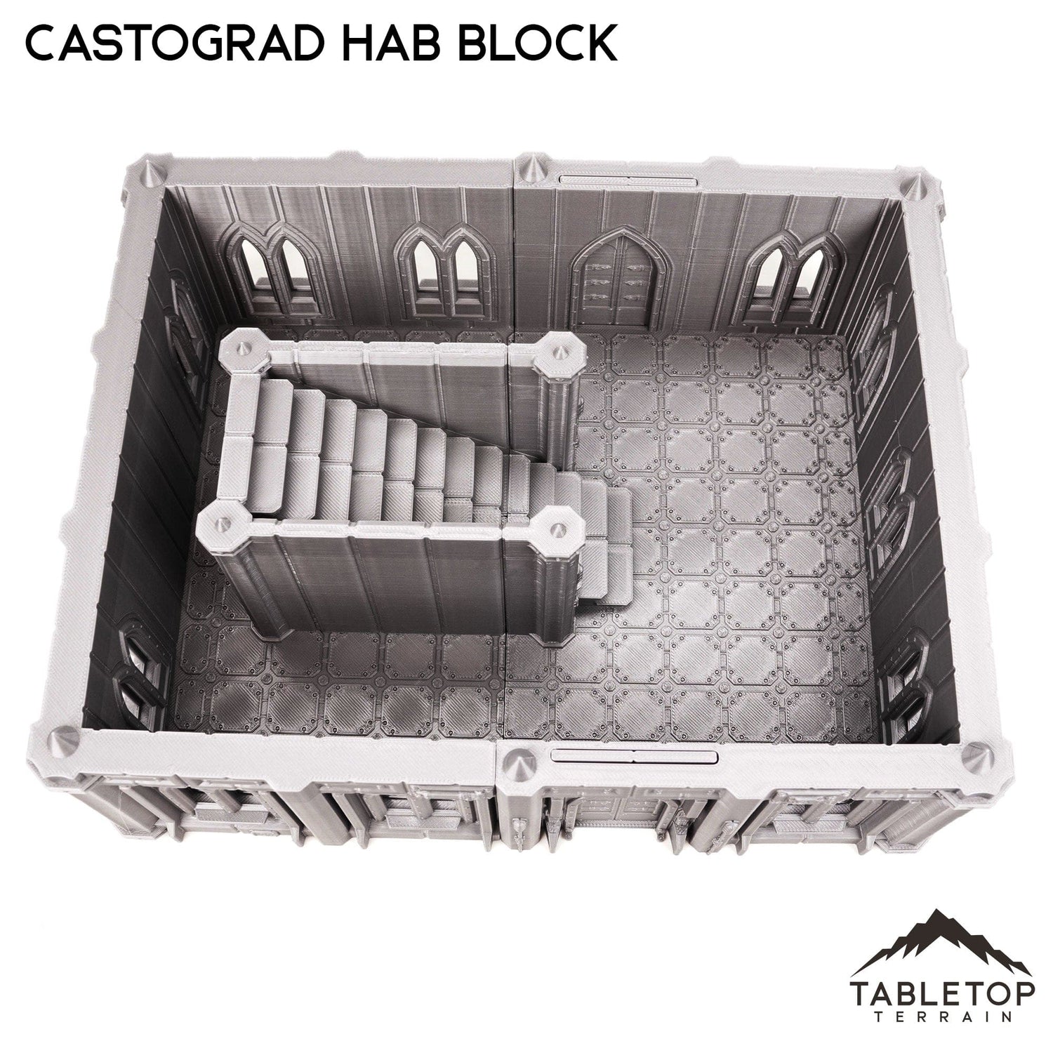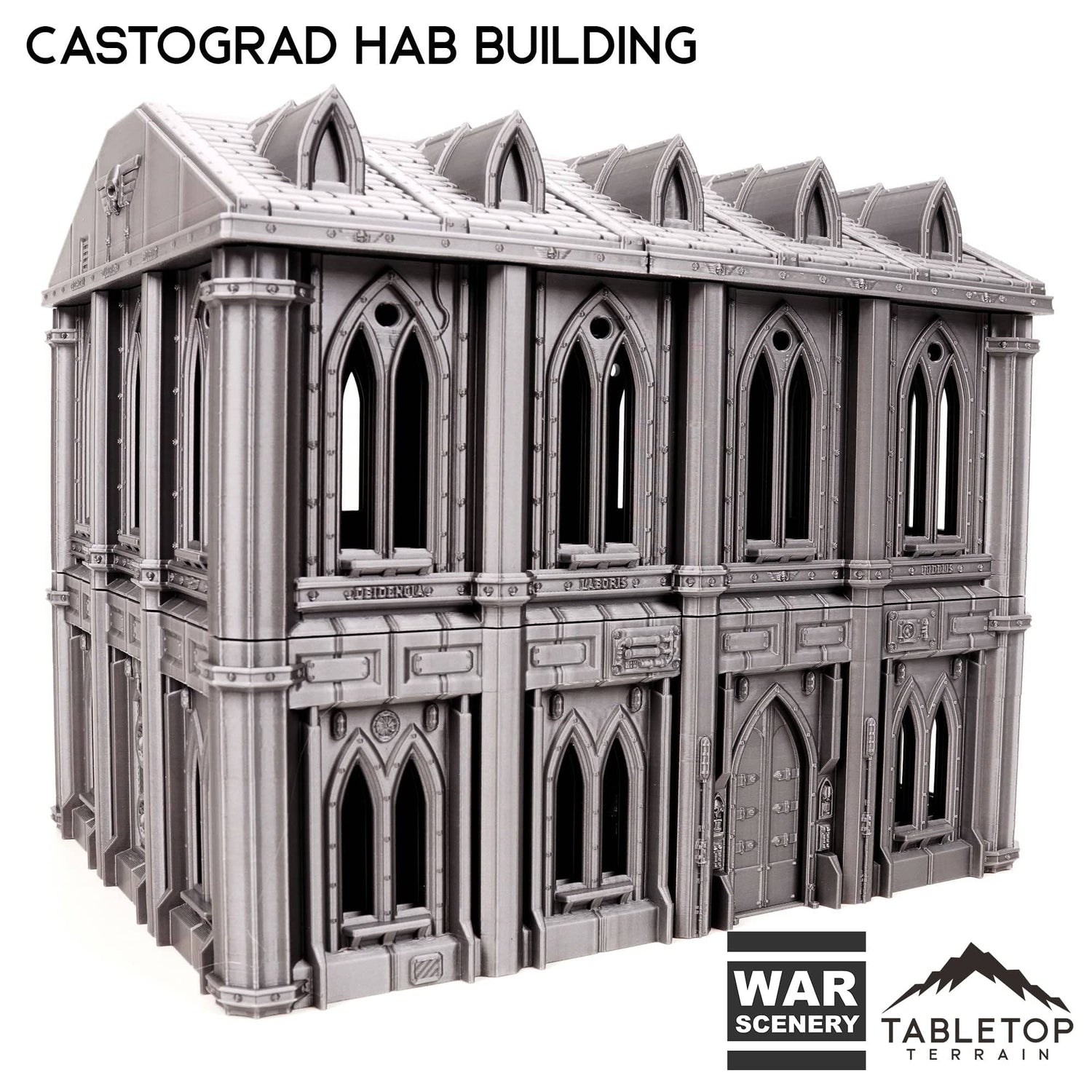 Castograd, the jewel of the old empire is now in disarray. This Hab Block is the sleeping quarters for the troops. Each level comes in two pieces that snap together. This building is designed for sci-fi wargames.