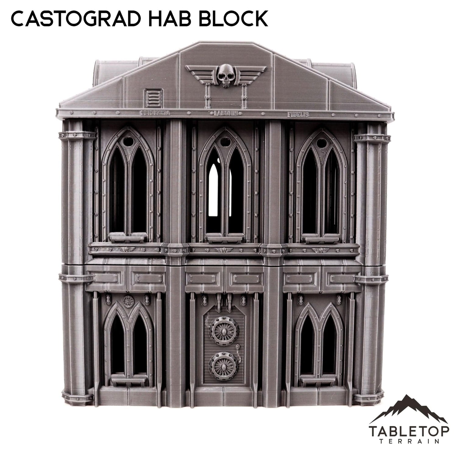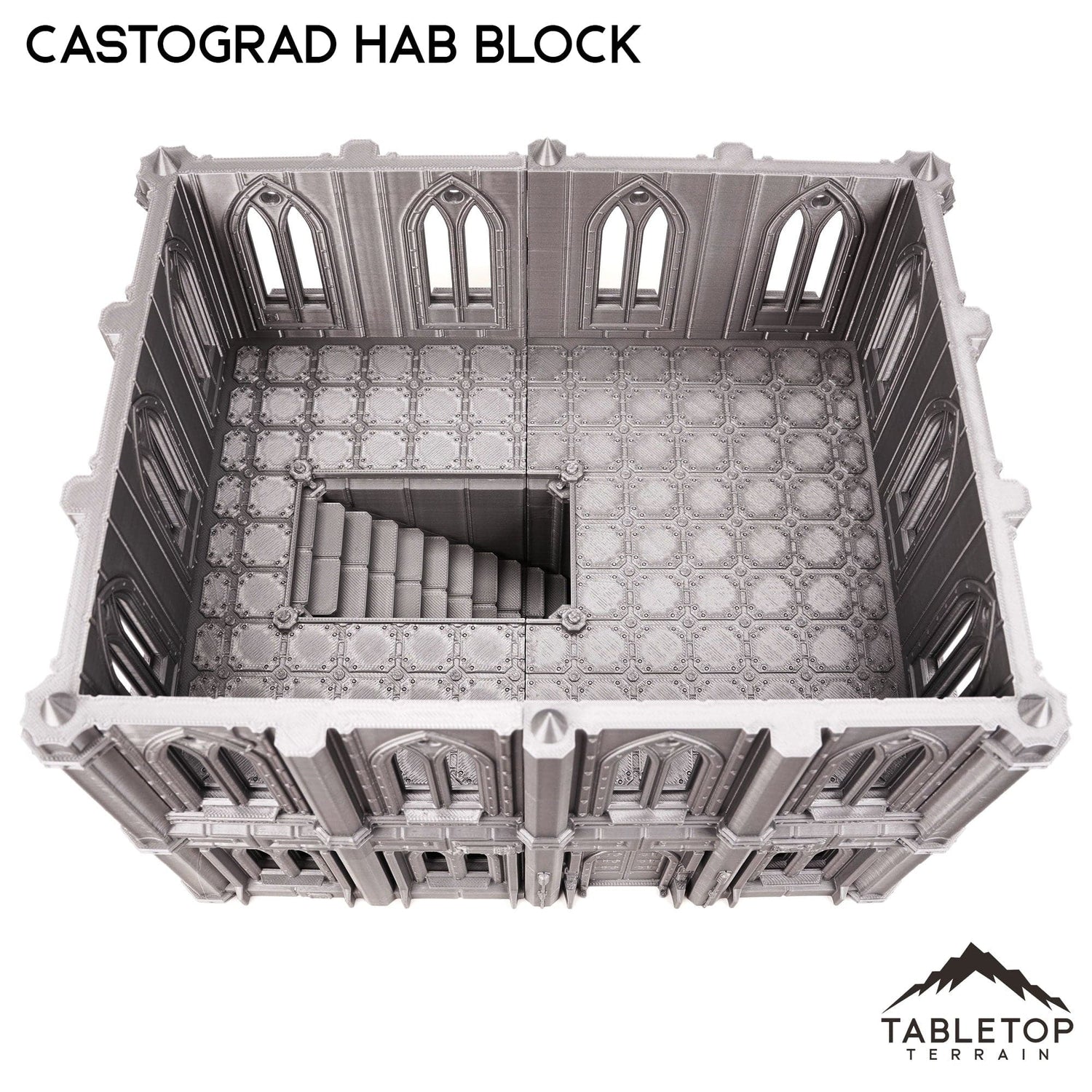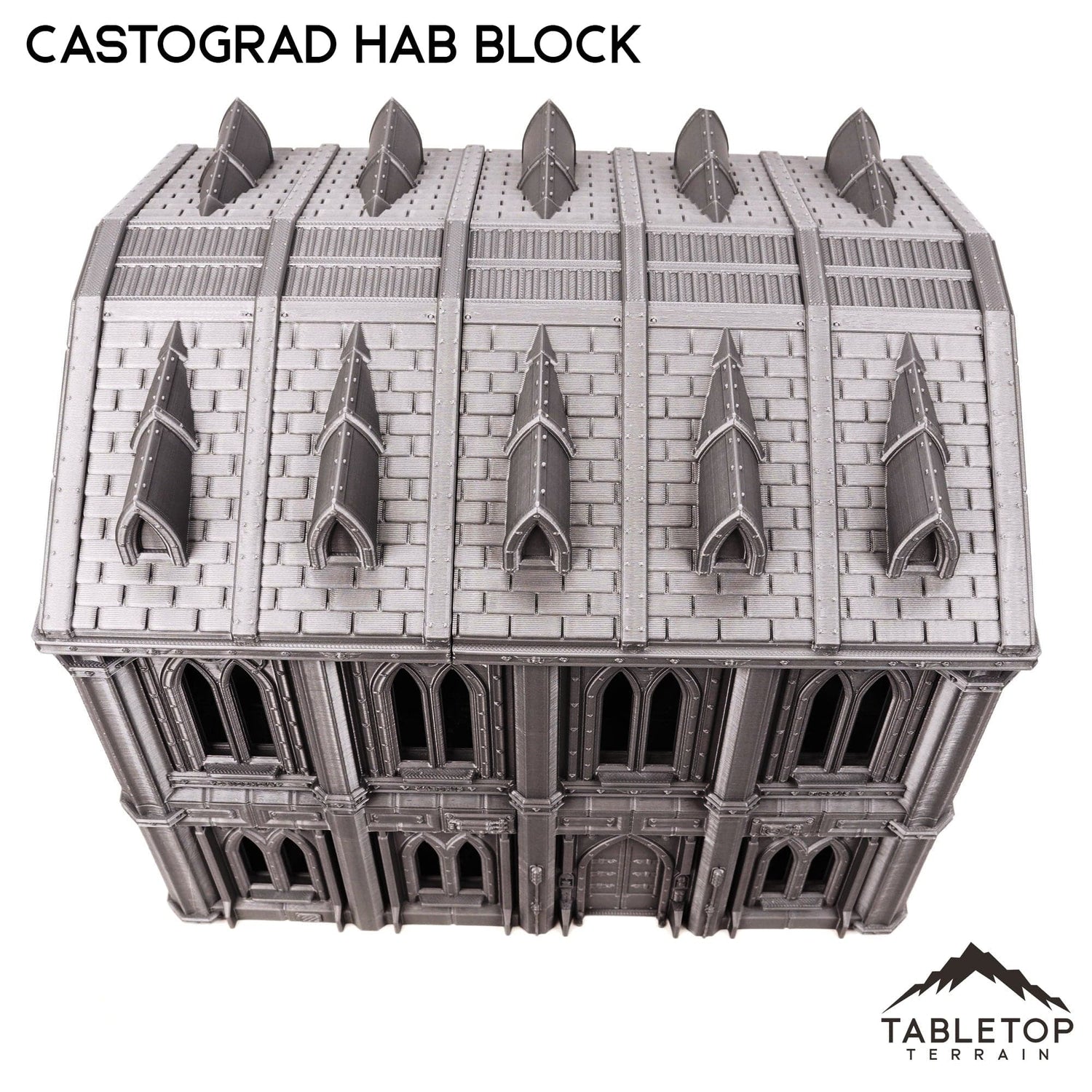 Castograd, the jewel of the old empire is now in disarray. This Hab Block is the sleeping quarters for the troops. Each level comes in two pieces that snap together. This building is designed for sci-fi wargames.
