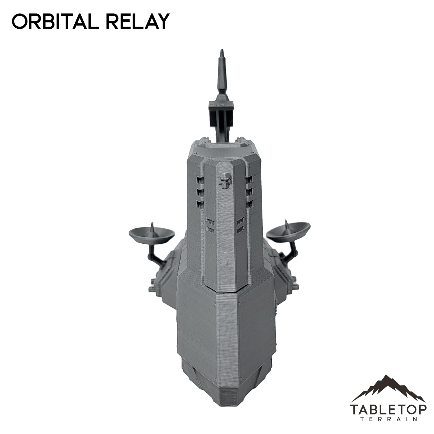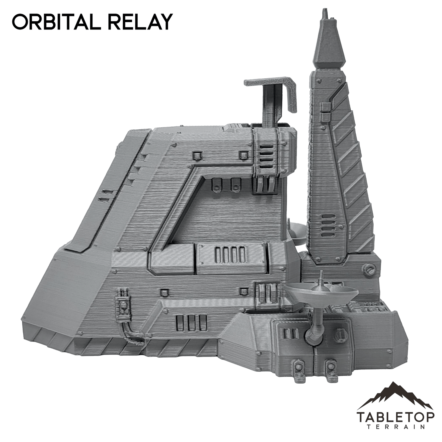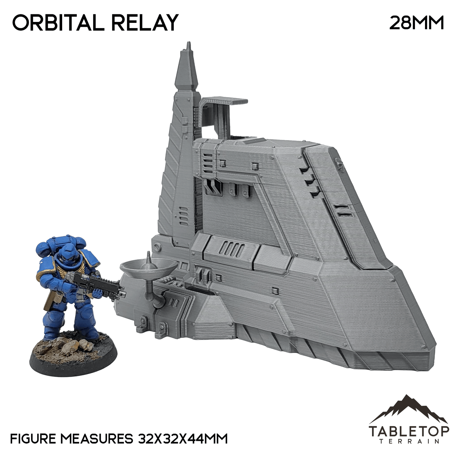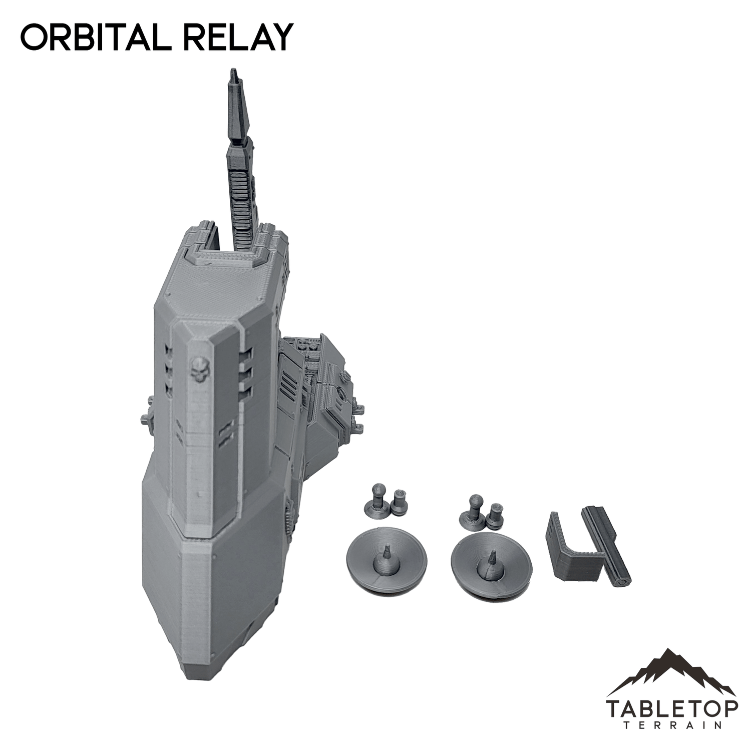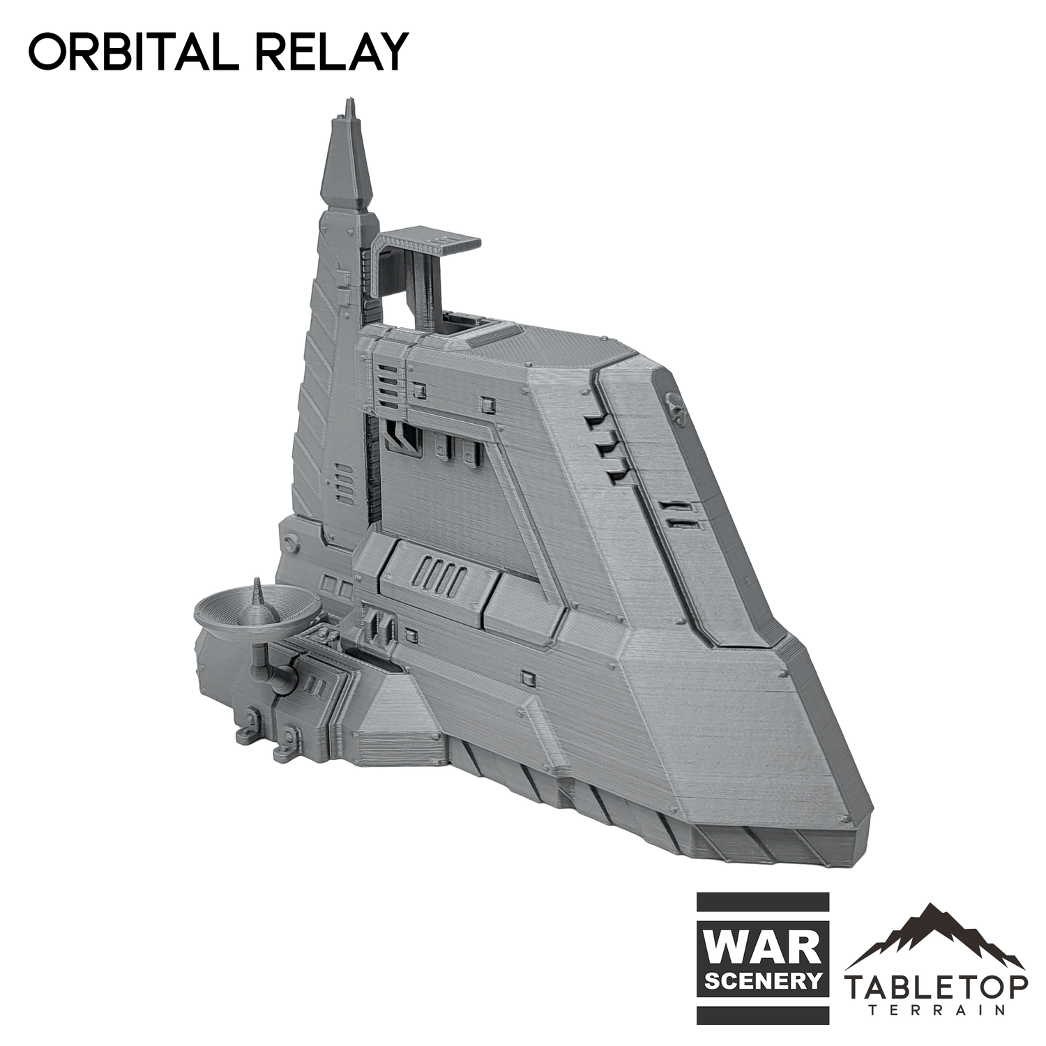 The Orbital Relay is an upgrade building, providing access to additional combat units and deep striking infantry units across the battlefield. The upper antenna dish and side dishes require assembly. Super glue is recommended.