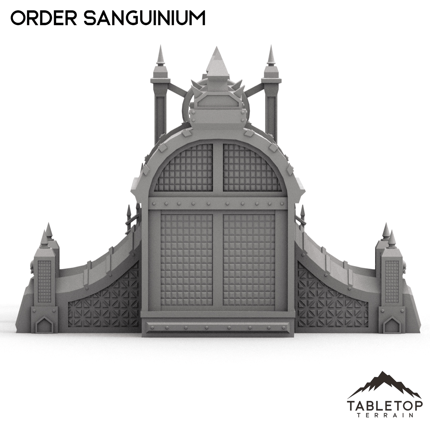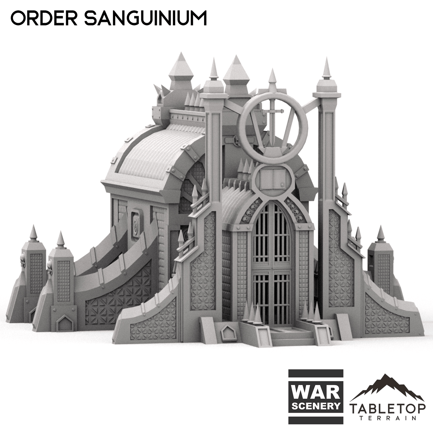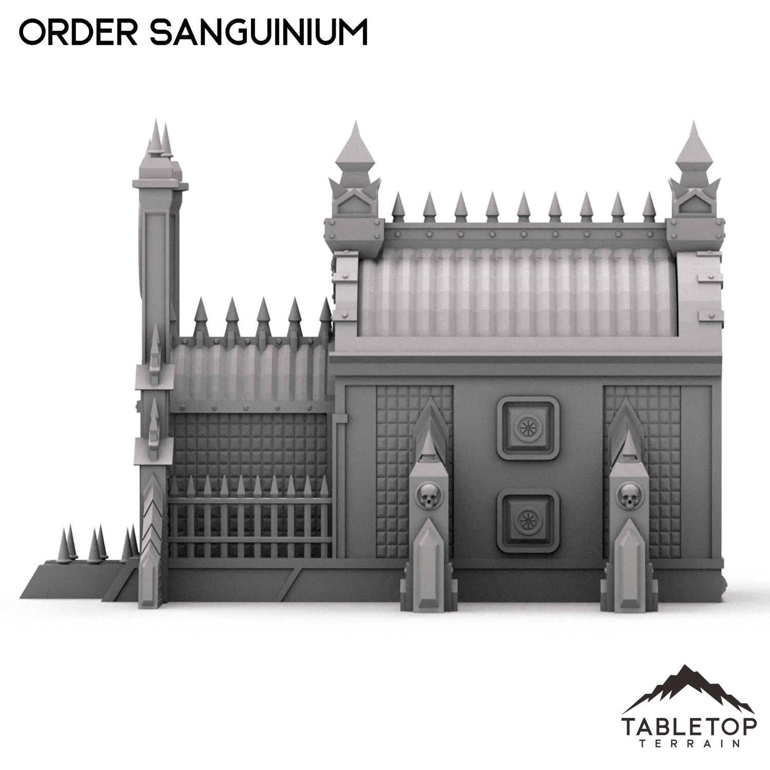 The Order Sanguinium is a gothic style building with industrial buttresses and spires on each end of the building, as well as smaller spires that line the roof and gate. The building has lots of detailing and stylization, perfect for any gothic tabletop. The Order Sanguinium is designed for sci-fi wargames, but can be used with any system.