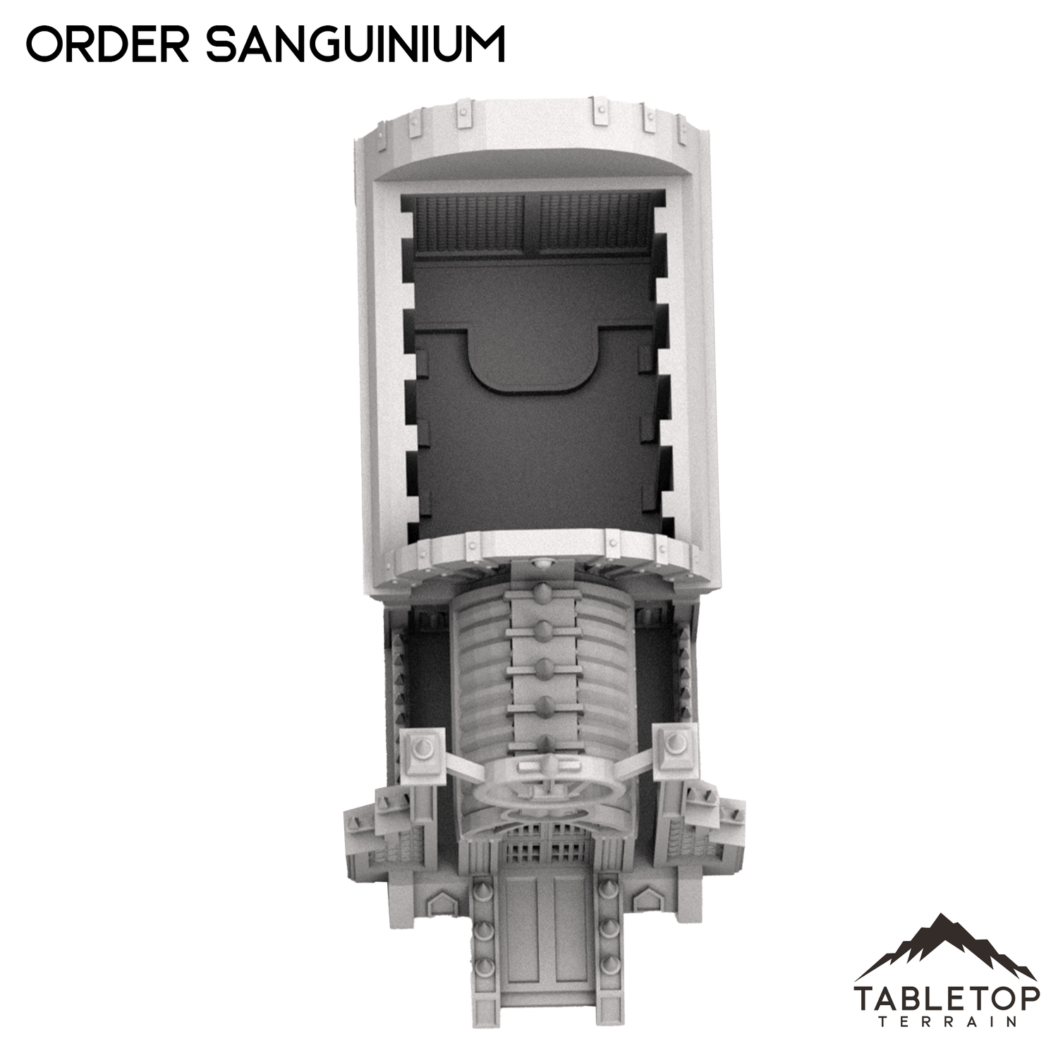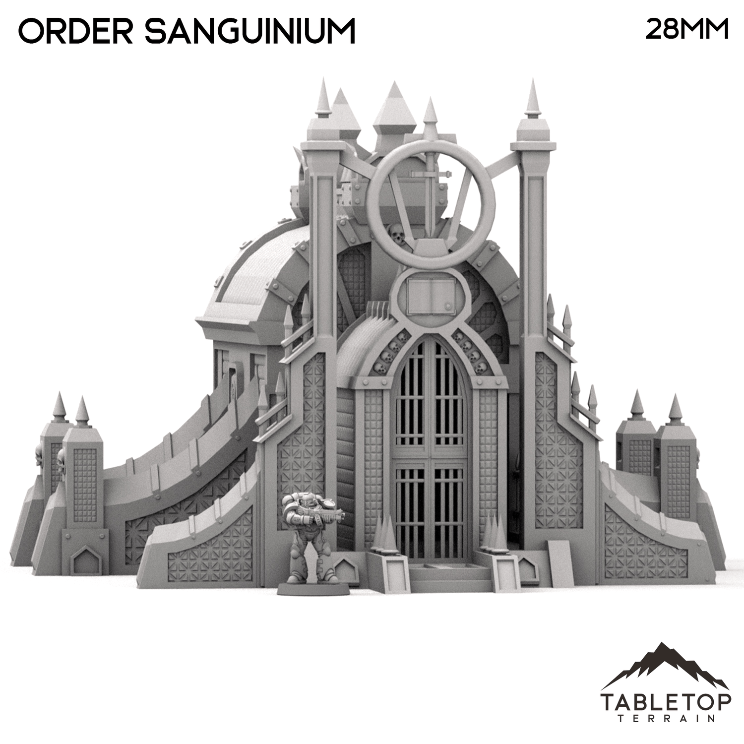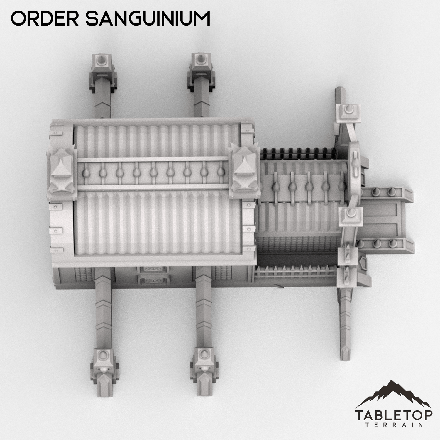 The Order Sanguinium is a gothic style building with industrial buttresses and spires on each end of the building, as well as smaller spires that line the roof and gate. The building has lots of detailing and stylization, perfect for any gothic tabletop. The Order Sanguinium is designed for sci-fi wargames, but can be used with any system.