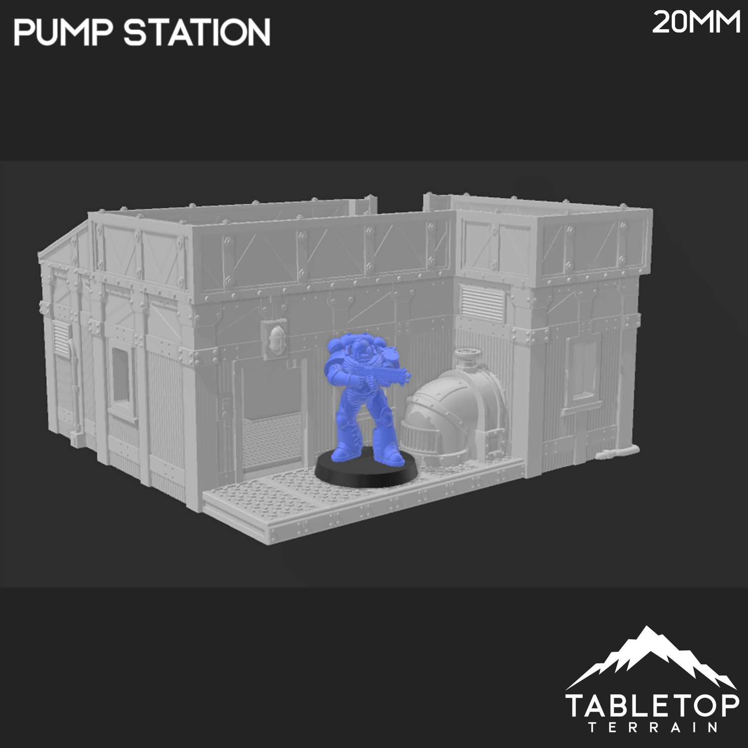 In 20mm scale, the Pump Station measures 139x136x75mm / 5.5x5.3x2.9 inches.