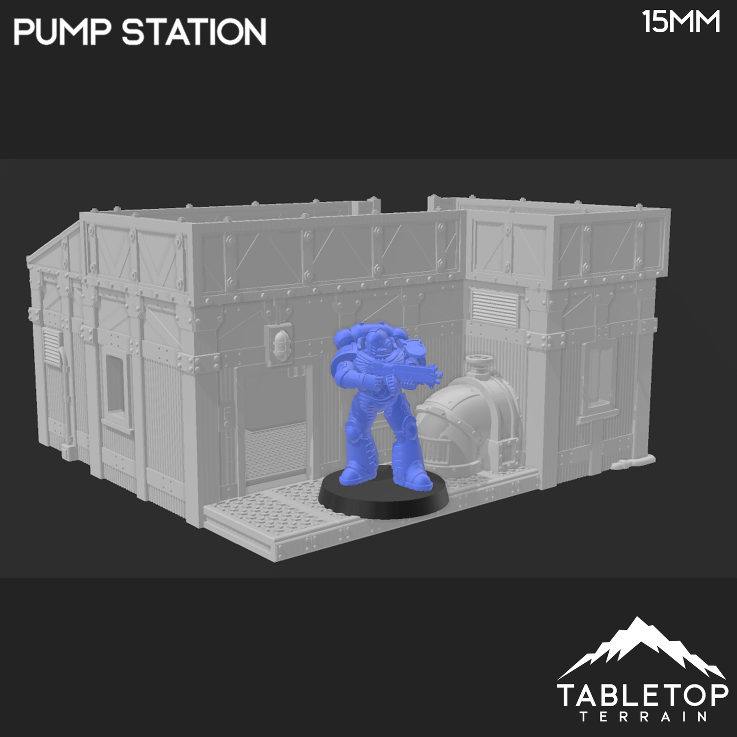 In 15mm scale, the Pump Station measures 119x117x65mm / 4.7x4.6x2.5 inches.