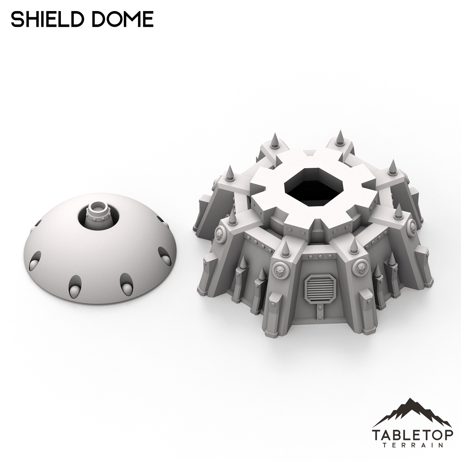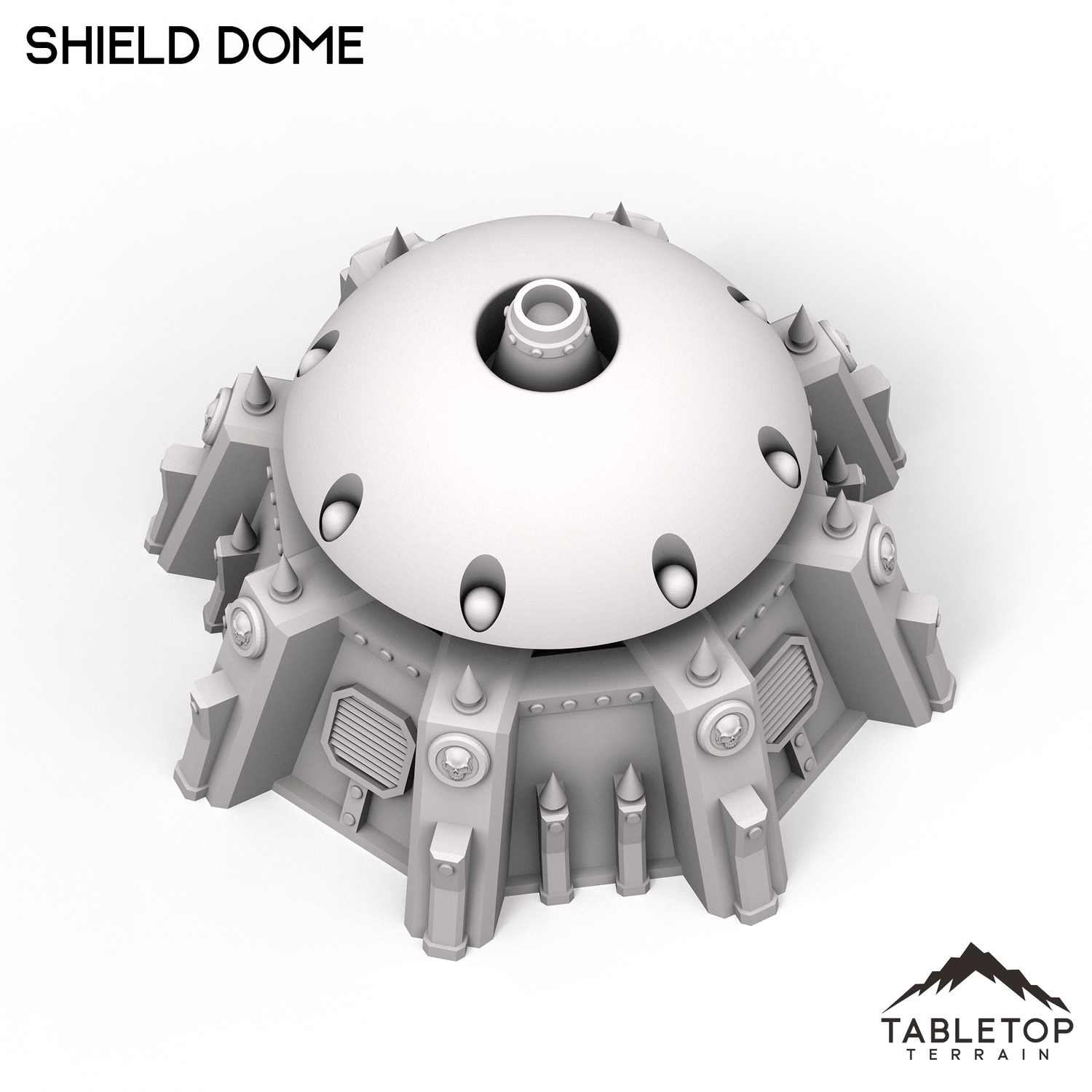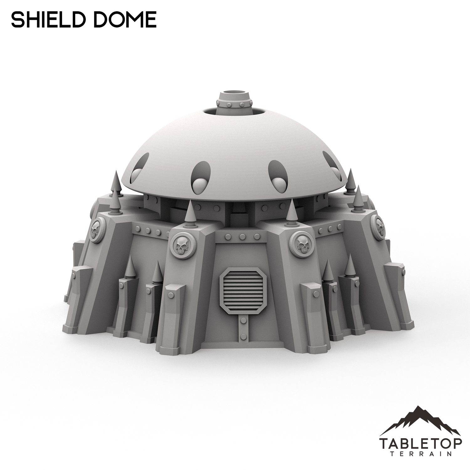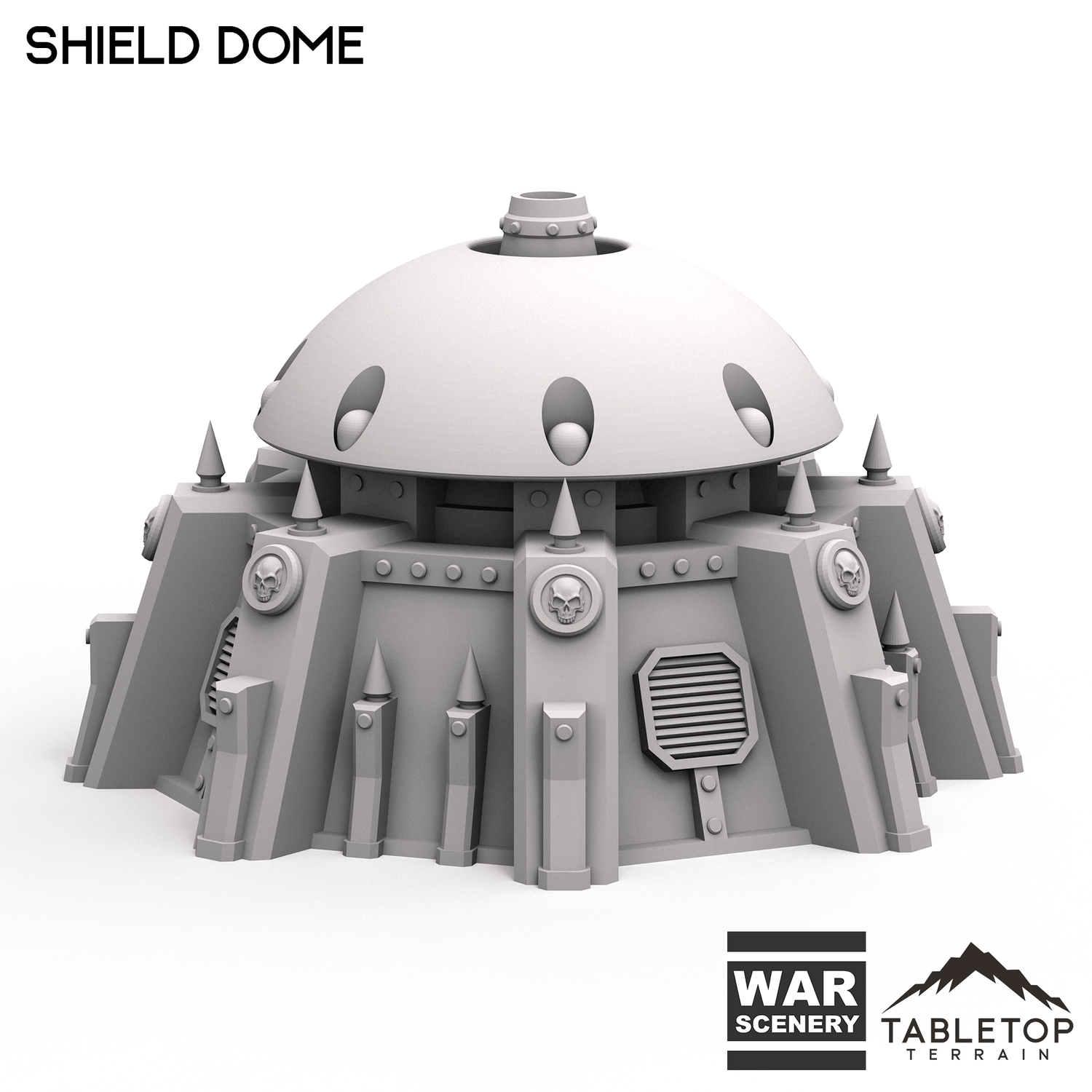 The Shield Dome set is an armored, stand-alone building with an imposing dome set into the center of the structure. The entire building is textured and detailed in a gothic style to fit nicely into any gothic tabletop. The Shield Dome is designed for sci-fi wargames, but can be used with any system.