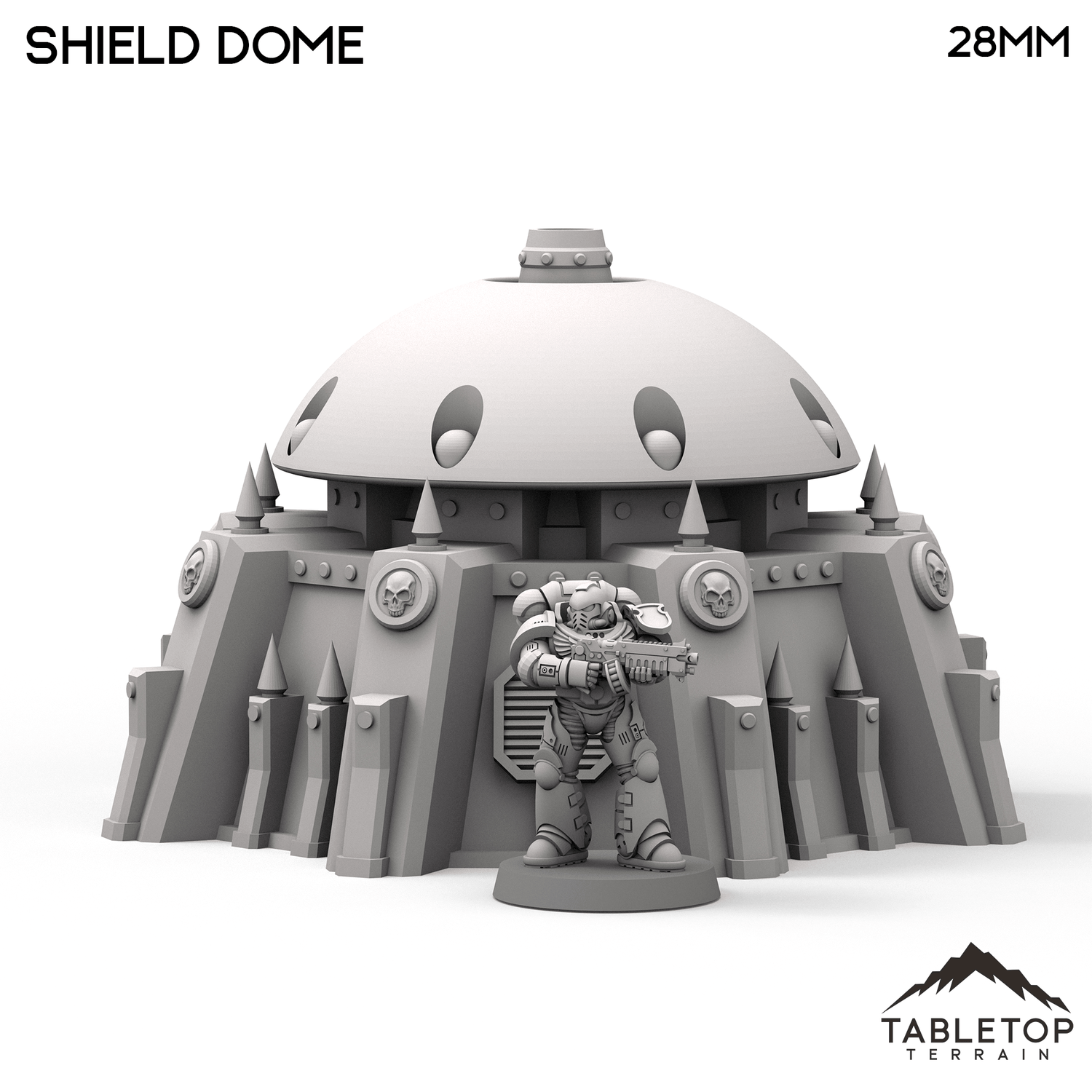 In 28mm scale, the dome measures 140x140x91mm / 5.5x5.5x3.6 inches
