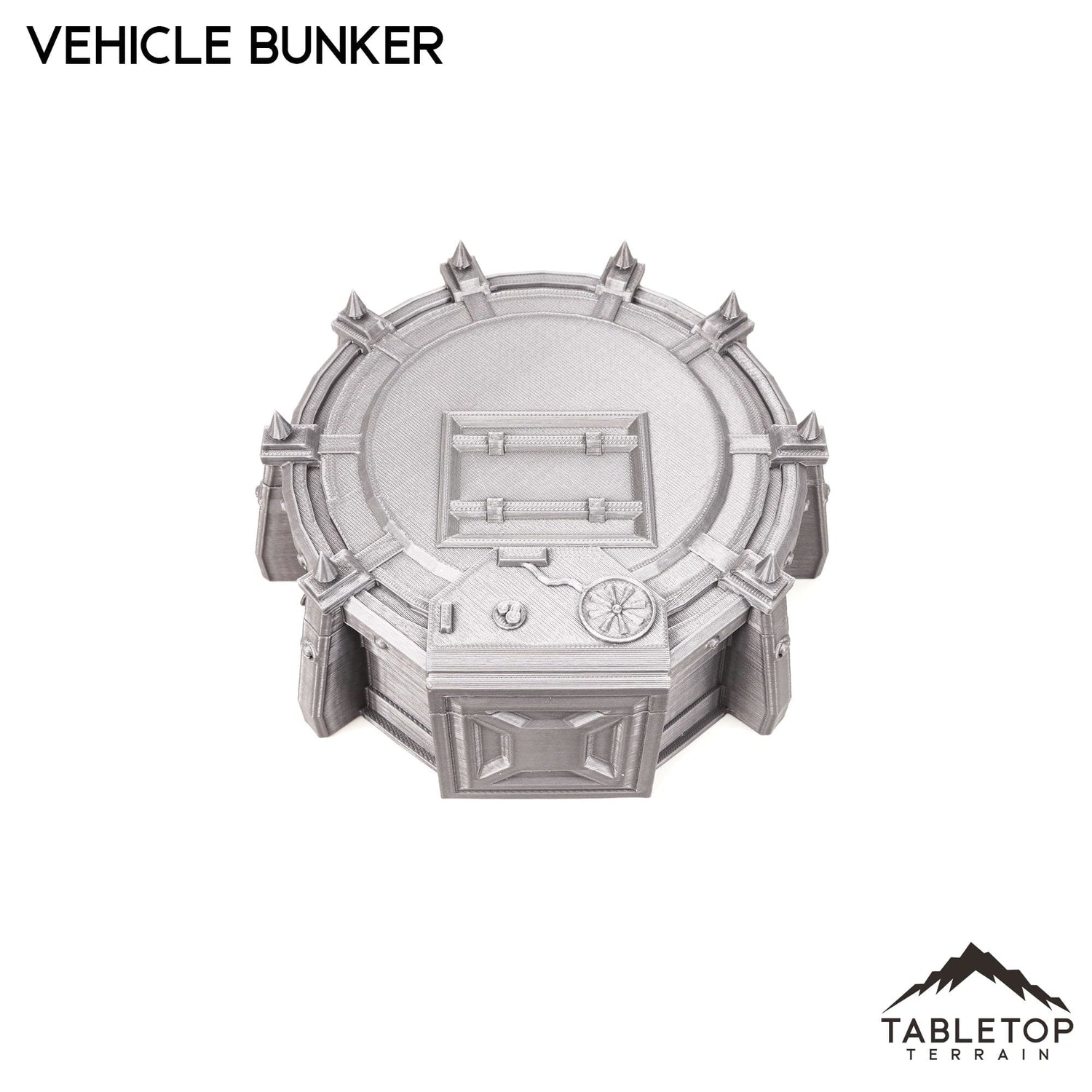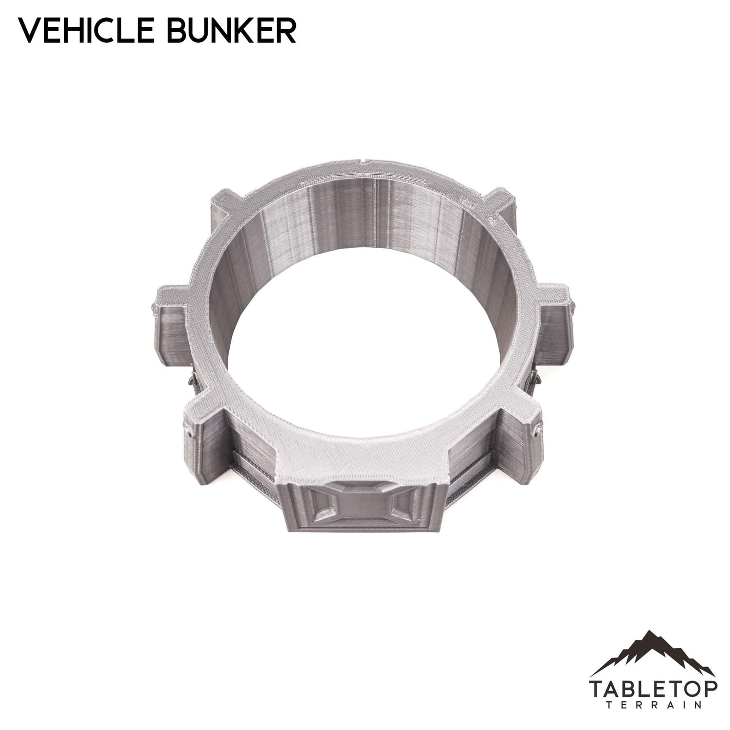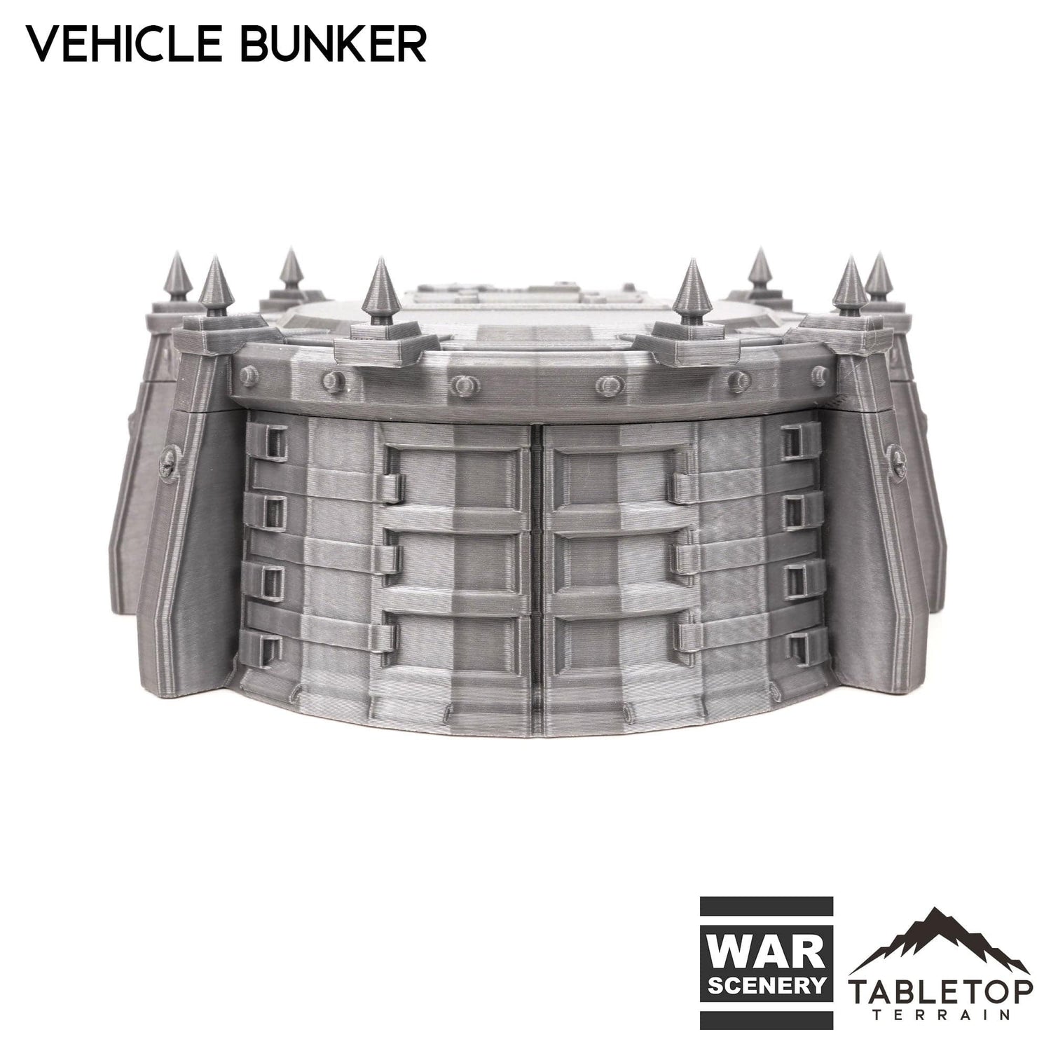 The Vehicle Bunker is a large, circular bunker for holding smaller vehicles. The building has an open interior for placing vehicles and minis, with a convenient removable roof in a single piece for easy access and storage. The Vehicle Bunker is designed for sci-fi wargames, but can be used with any system.