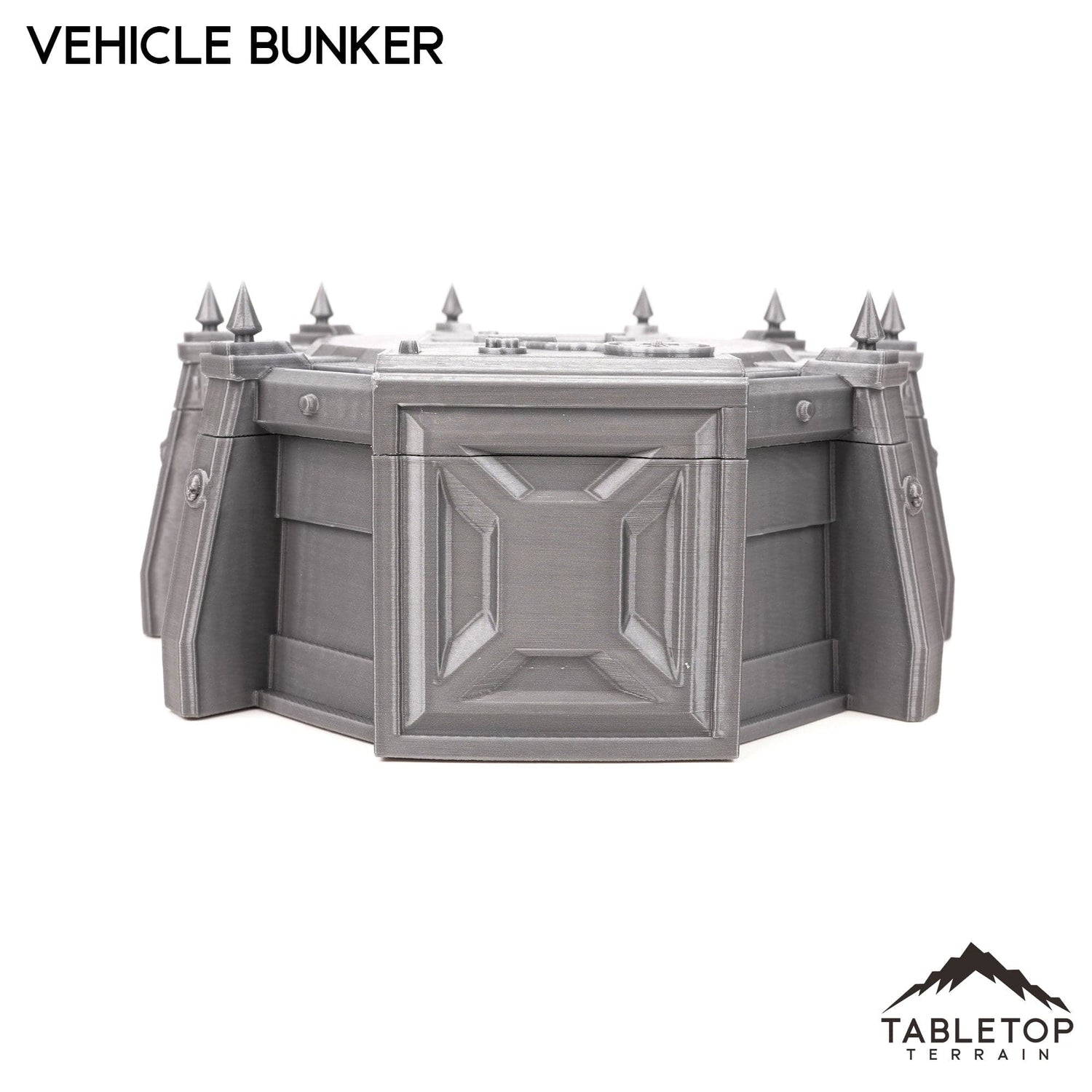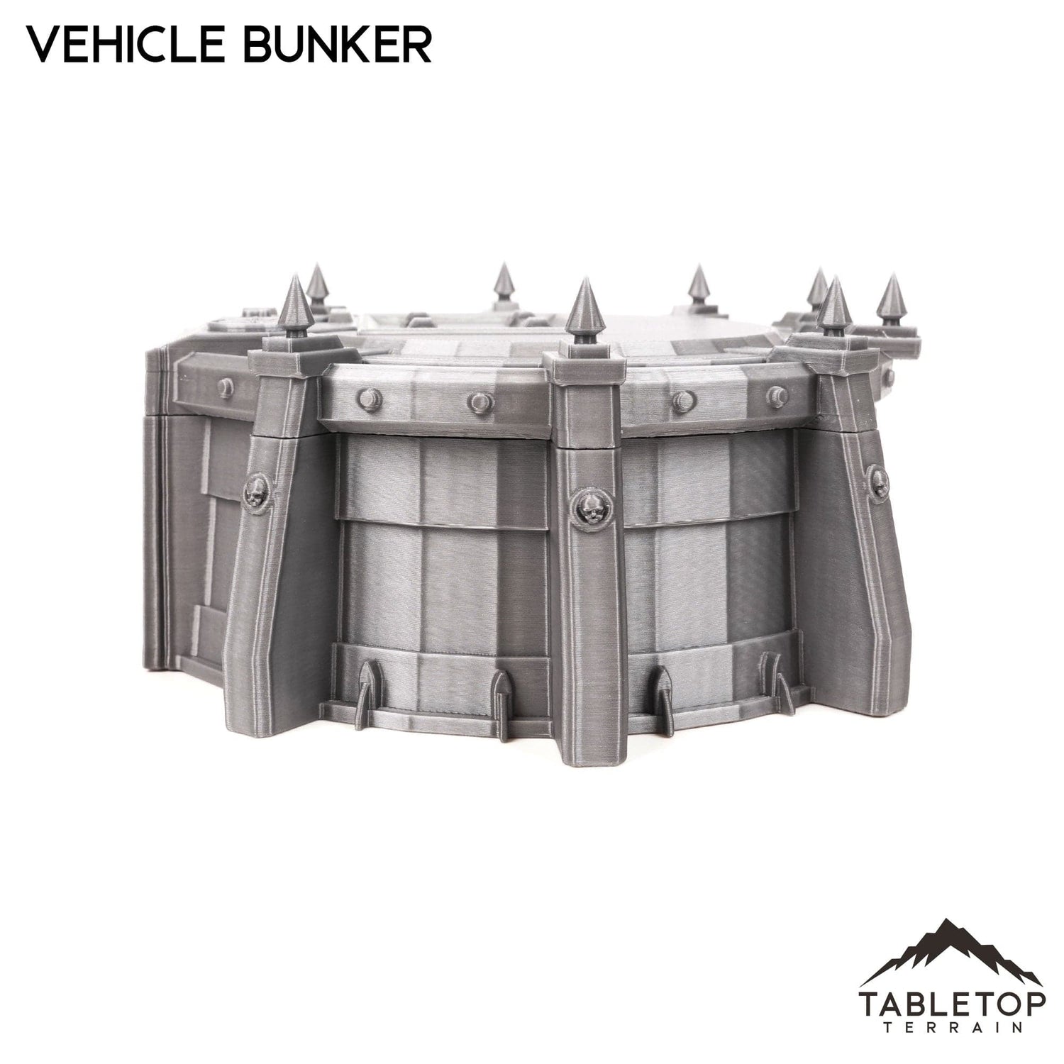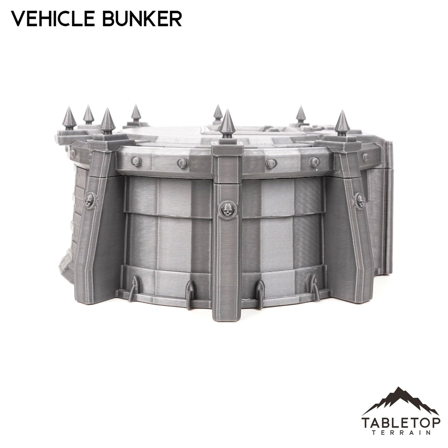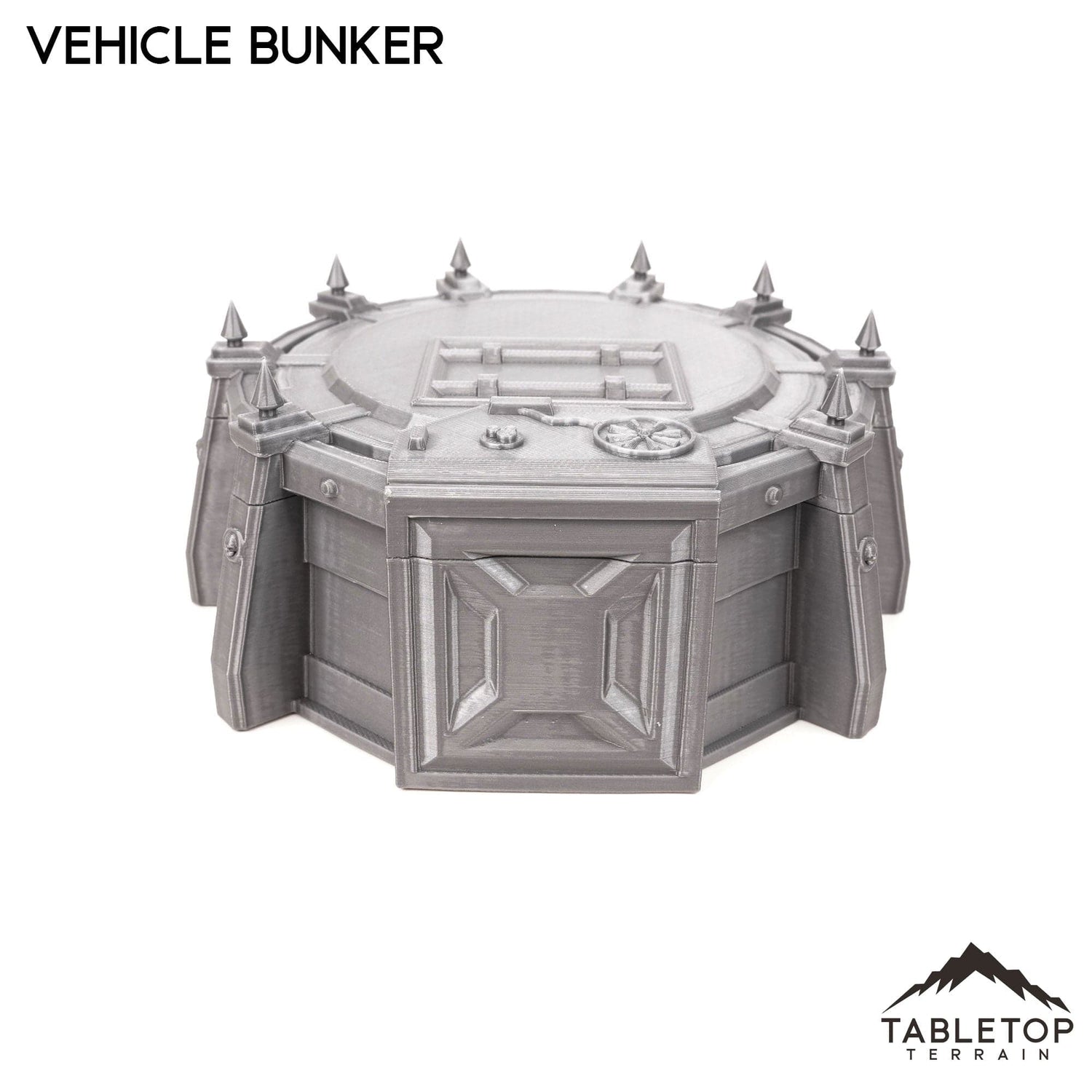 The Vehicle Bunker is a large, circular bunker for holding smaller vehicles. The building has an open interior for placing vehicles and minis, with a convenient removable roof in a single piece for easy access and storage. The Vehicle Bunker is designed for sci-fi wargames, but can be used with any system.