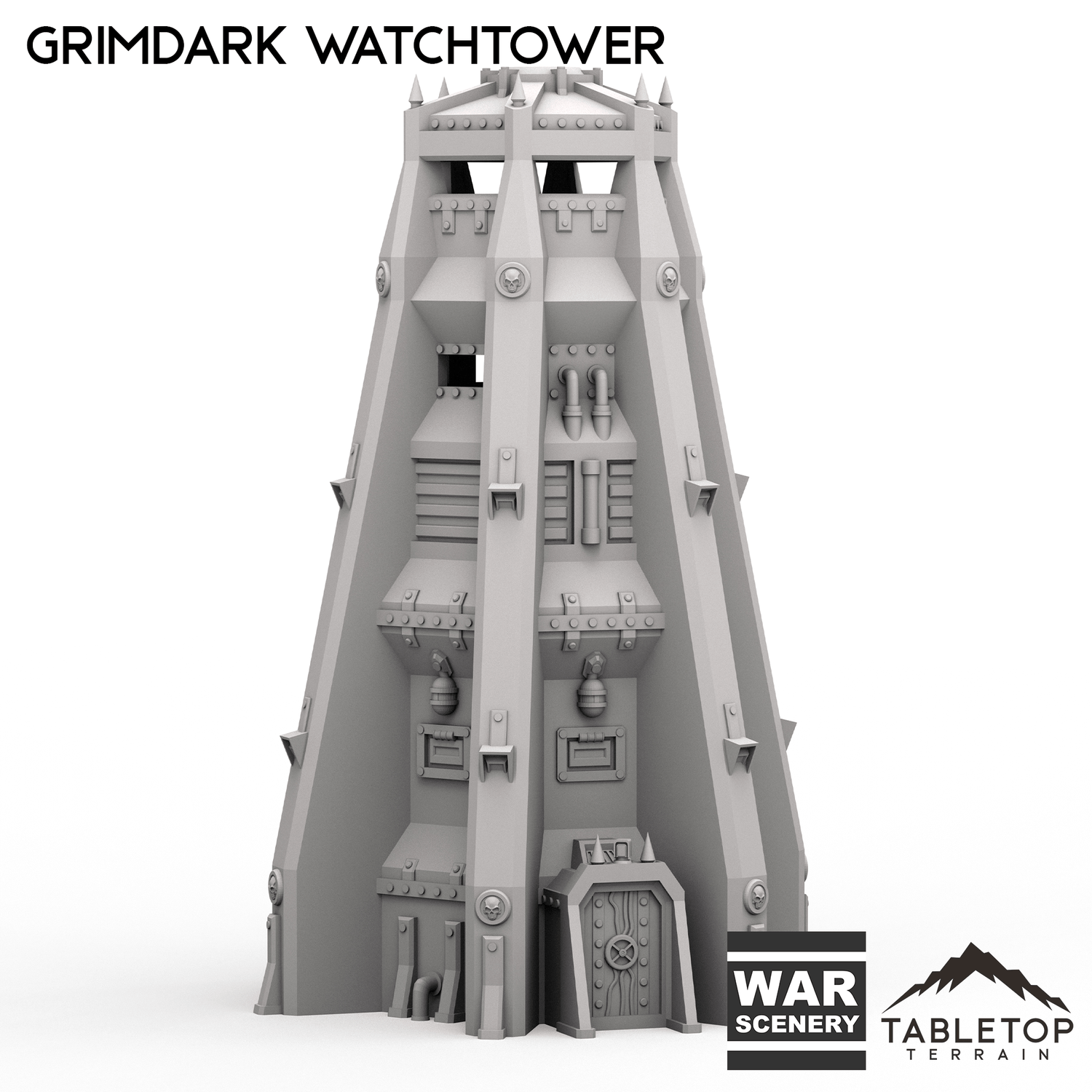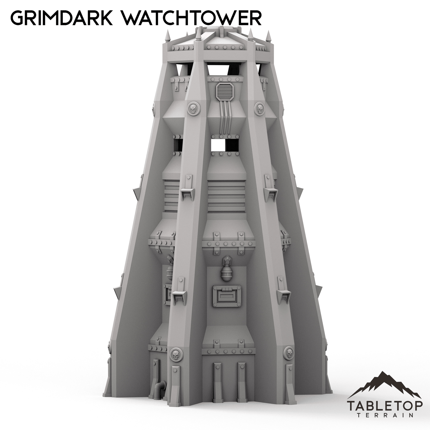 The Watchtower is a tall armored spire, complete with open-access lookout portals set into the top levels of the tower. The tower itself sits at almost 1-foot tall in 28mm scale, and adds an imposing visage to any tabletop layout. The Grimdark Watchtower is designed for sci-fi wargames, but can be used with any system.