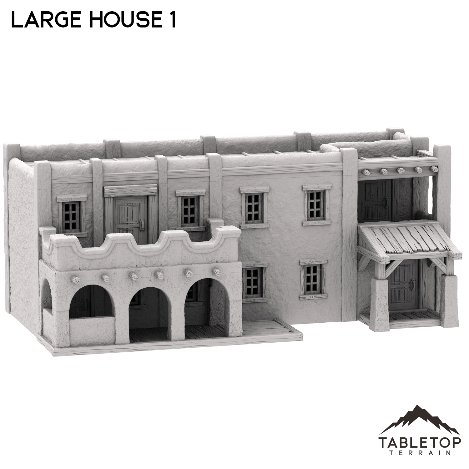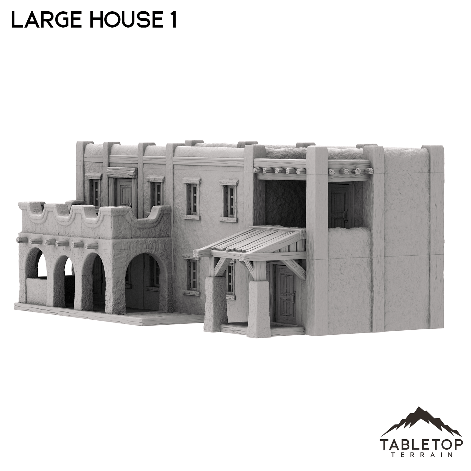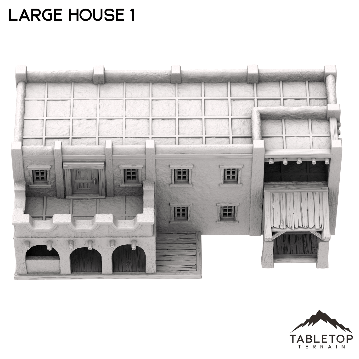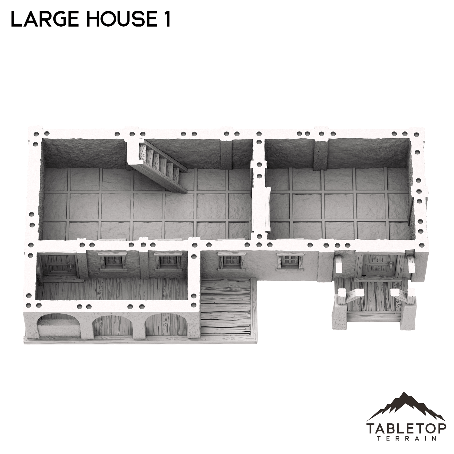 The Large House 1 is a multi-level Spanish structure with removable roof for interior miniature placement.