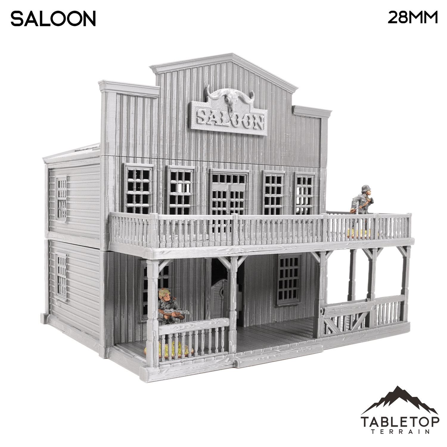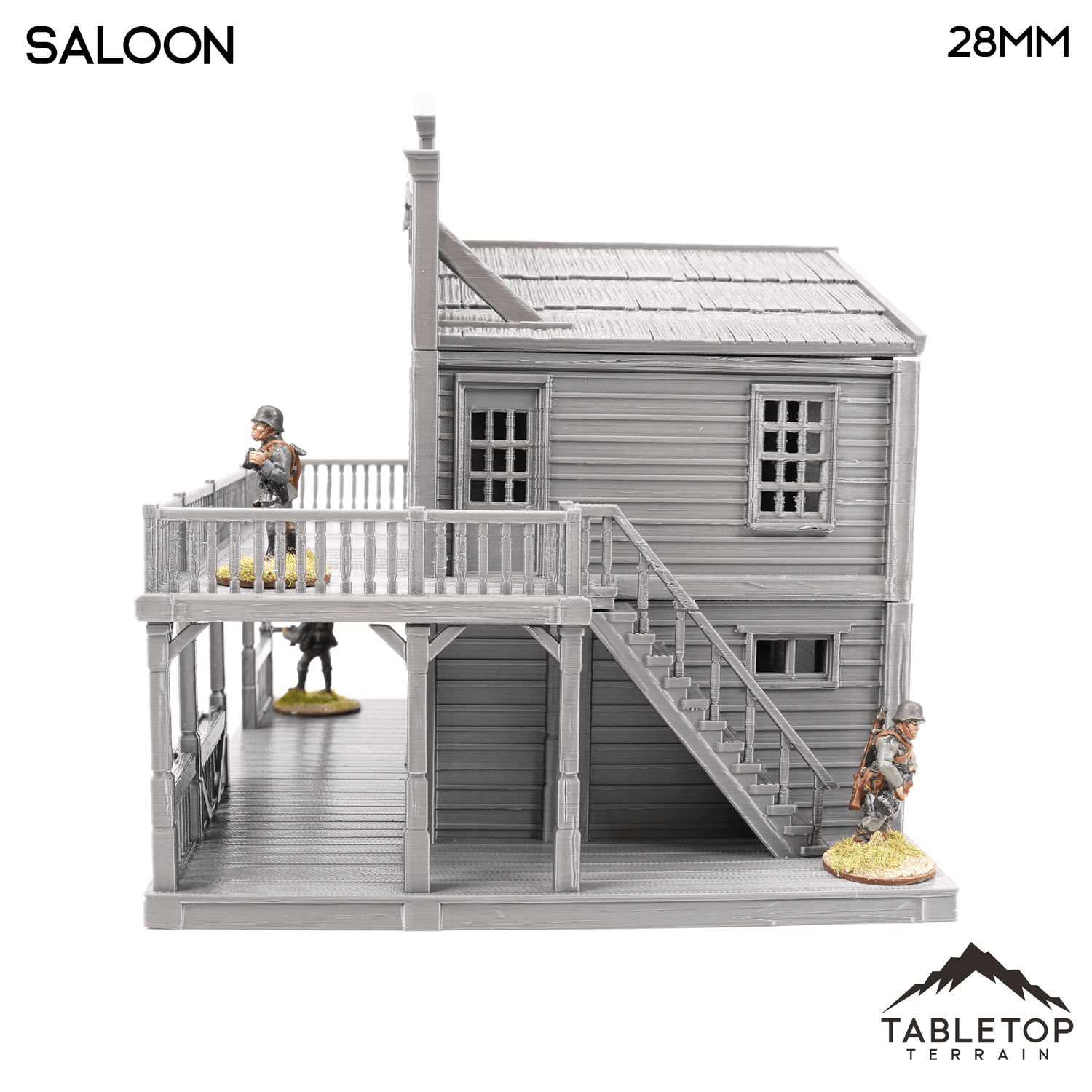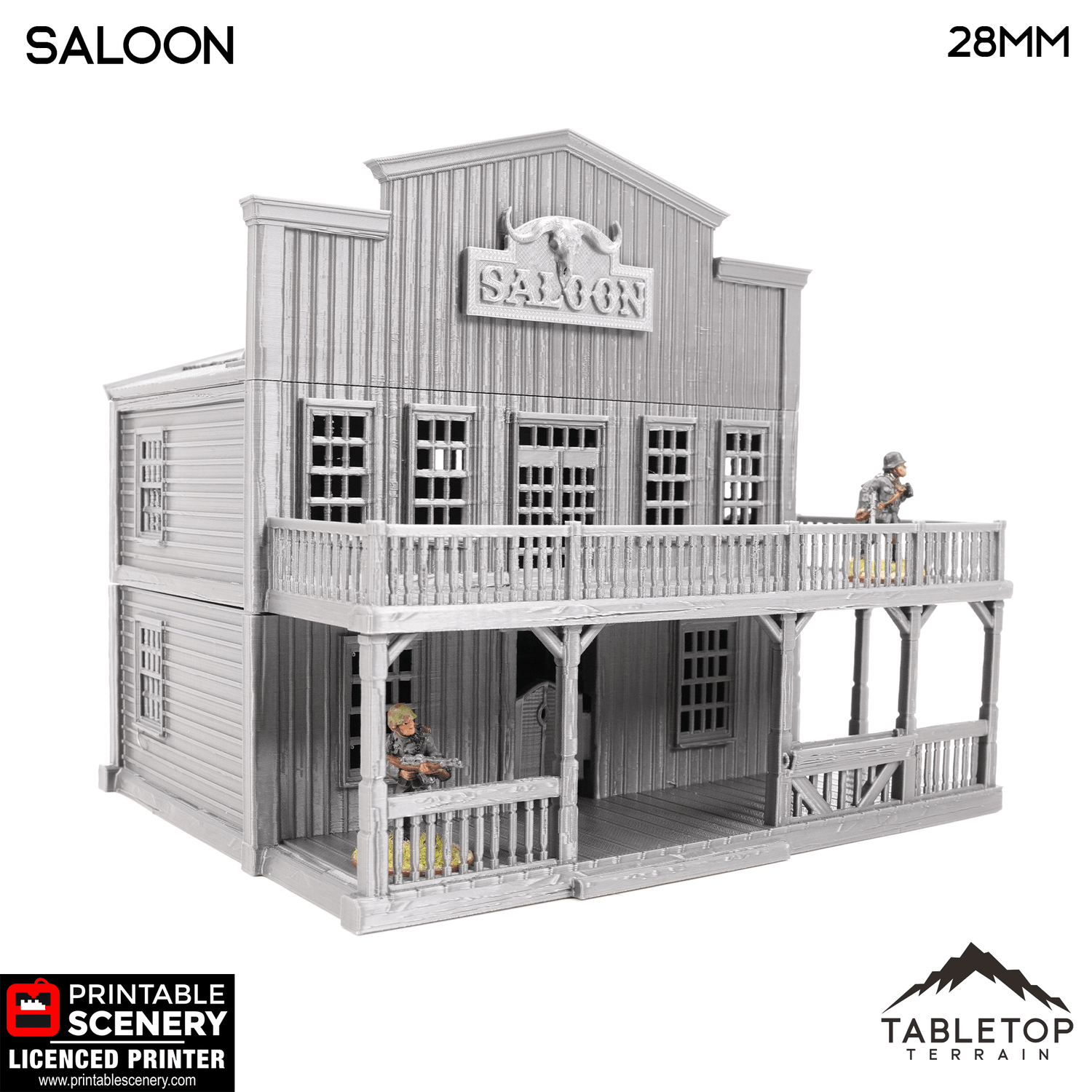 The saloon is a Wild West themed building with multiple floors, removable roofs, and detailed interior. Perfect for Wild West tabletop wargames such as Wild West Exodus or Deadlands.