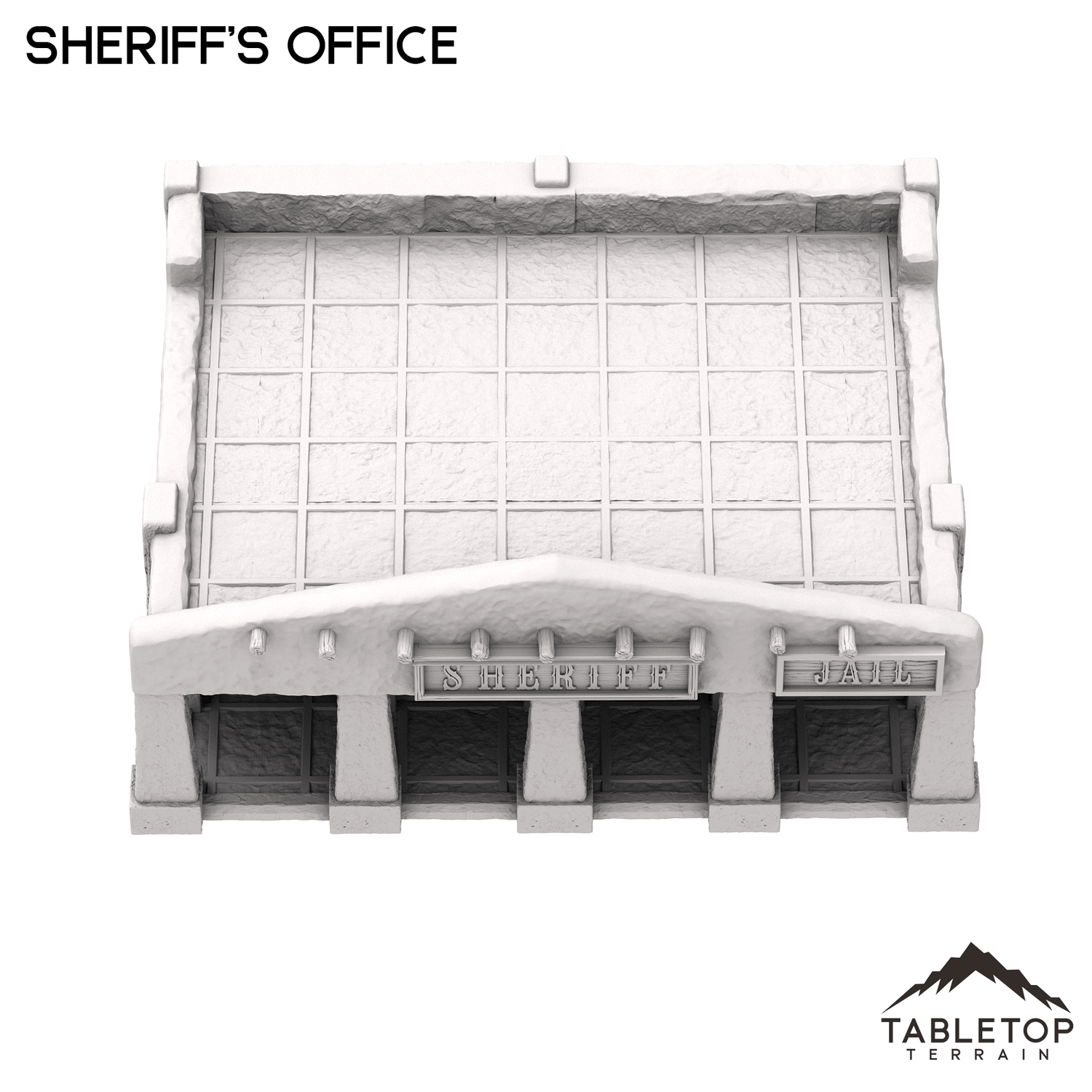 The Spanish Sheriff's Office + Jail is an Old West themed building. The roof is removable for interior miniature placement on the upper and lower levels.