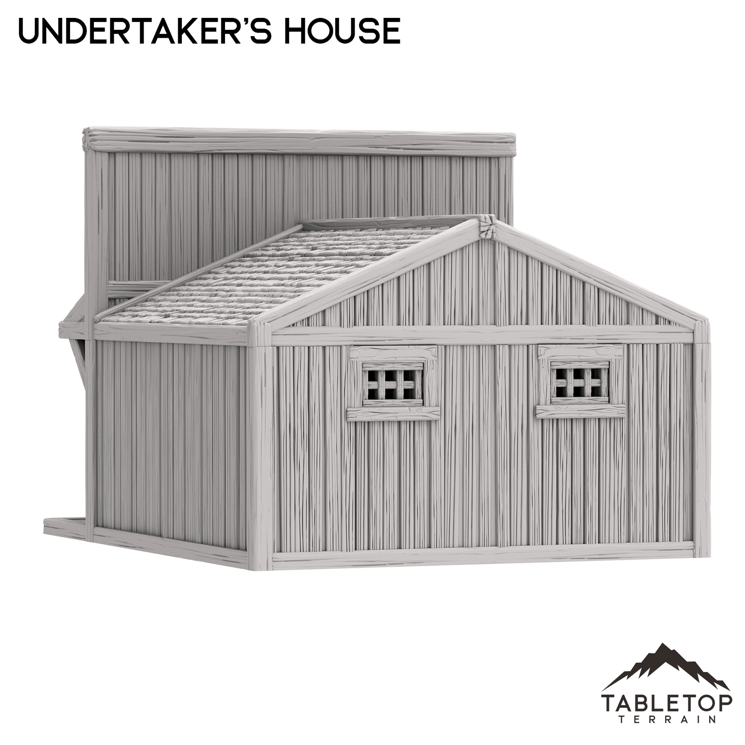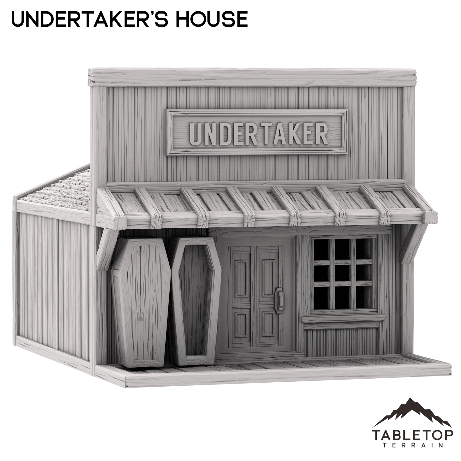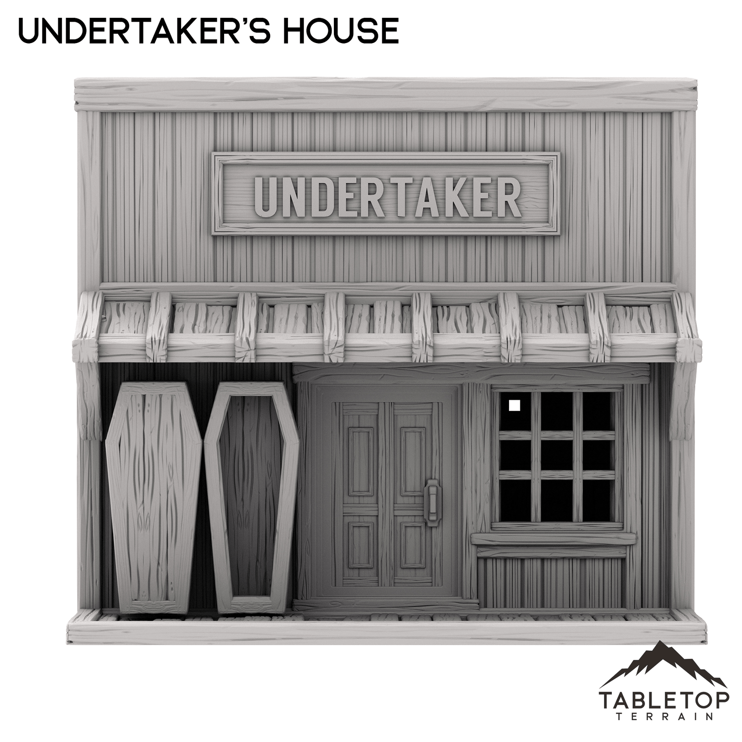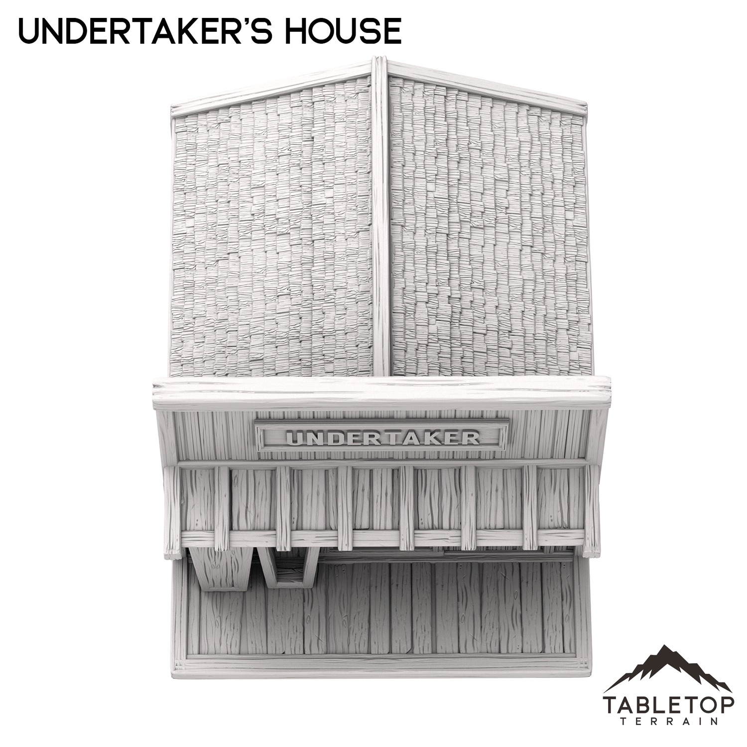The Undertaker's House is an Old West themed building. The roof is removable for interior miniature placement.