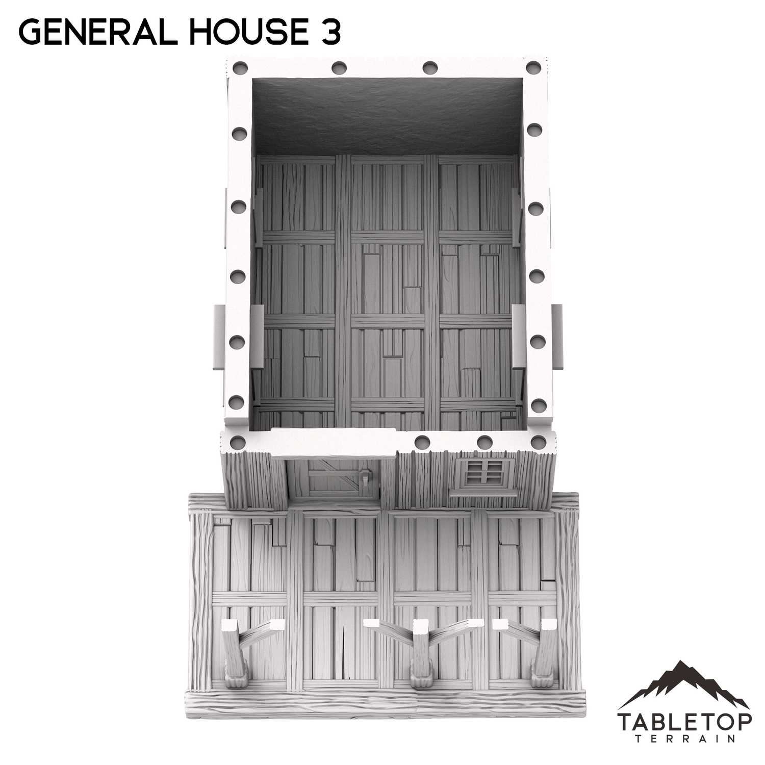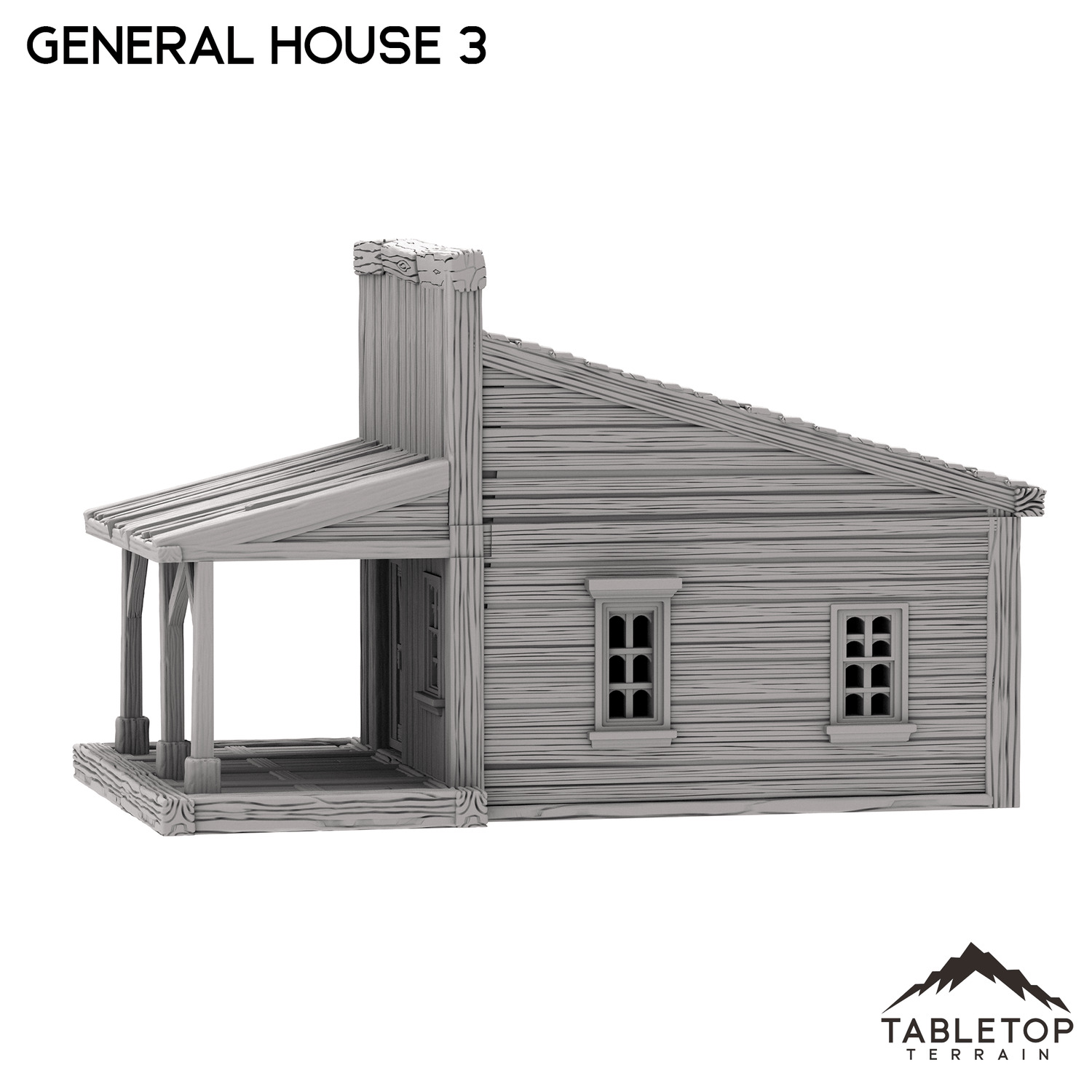 The Western General House 3 is a Old West style house. It has a removable roof for interior miniature placement.
