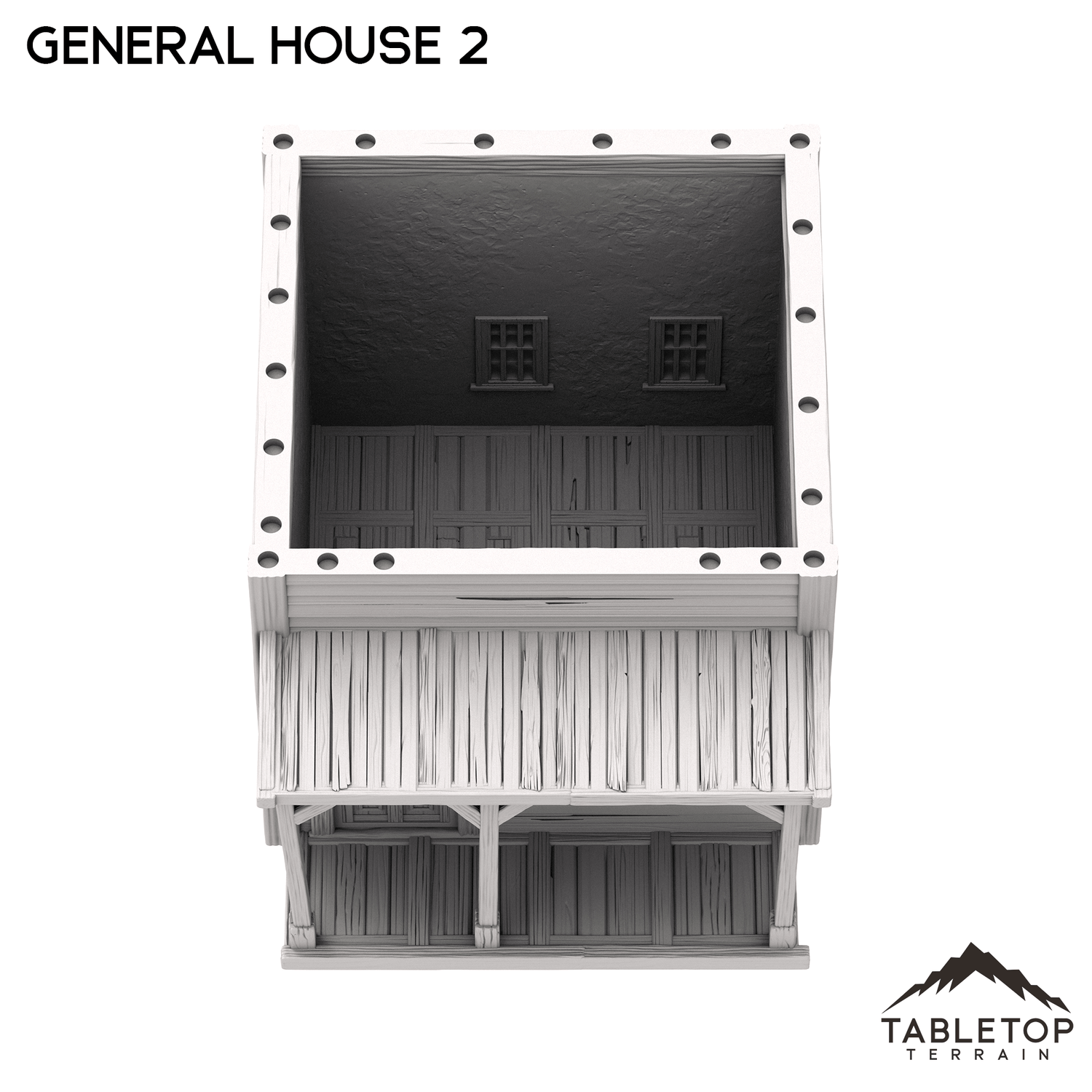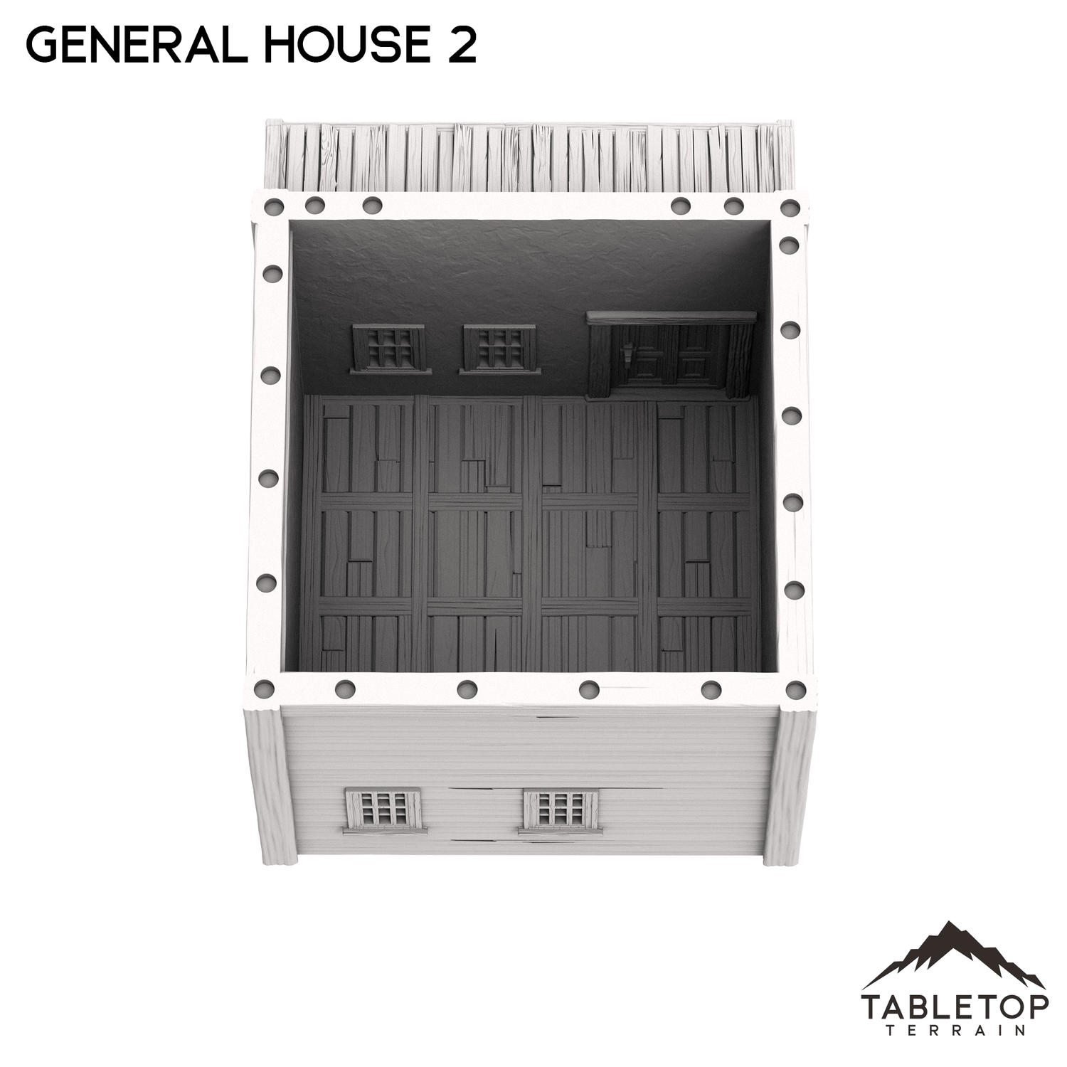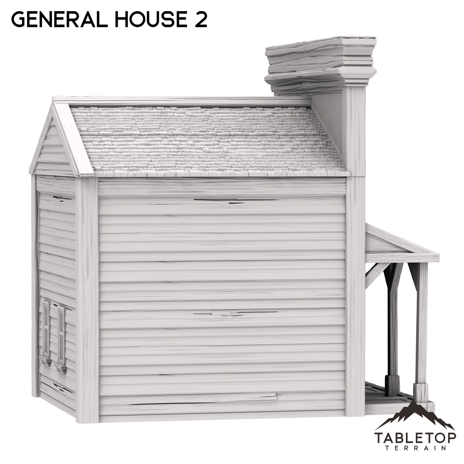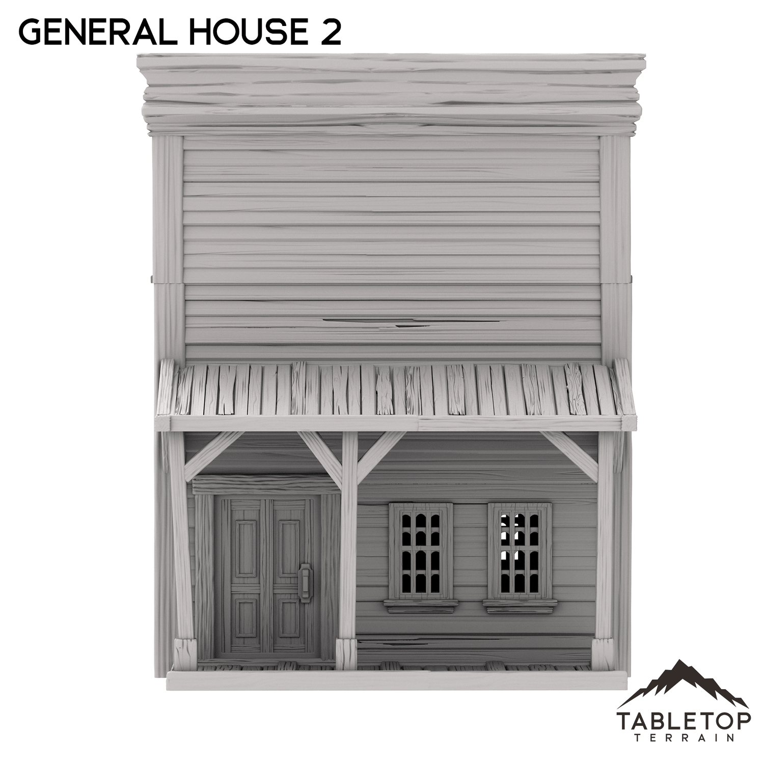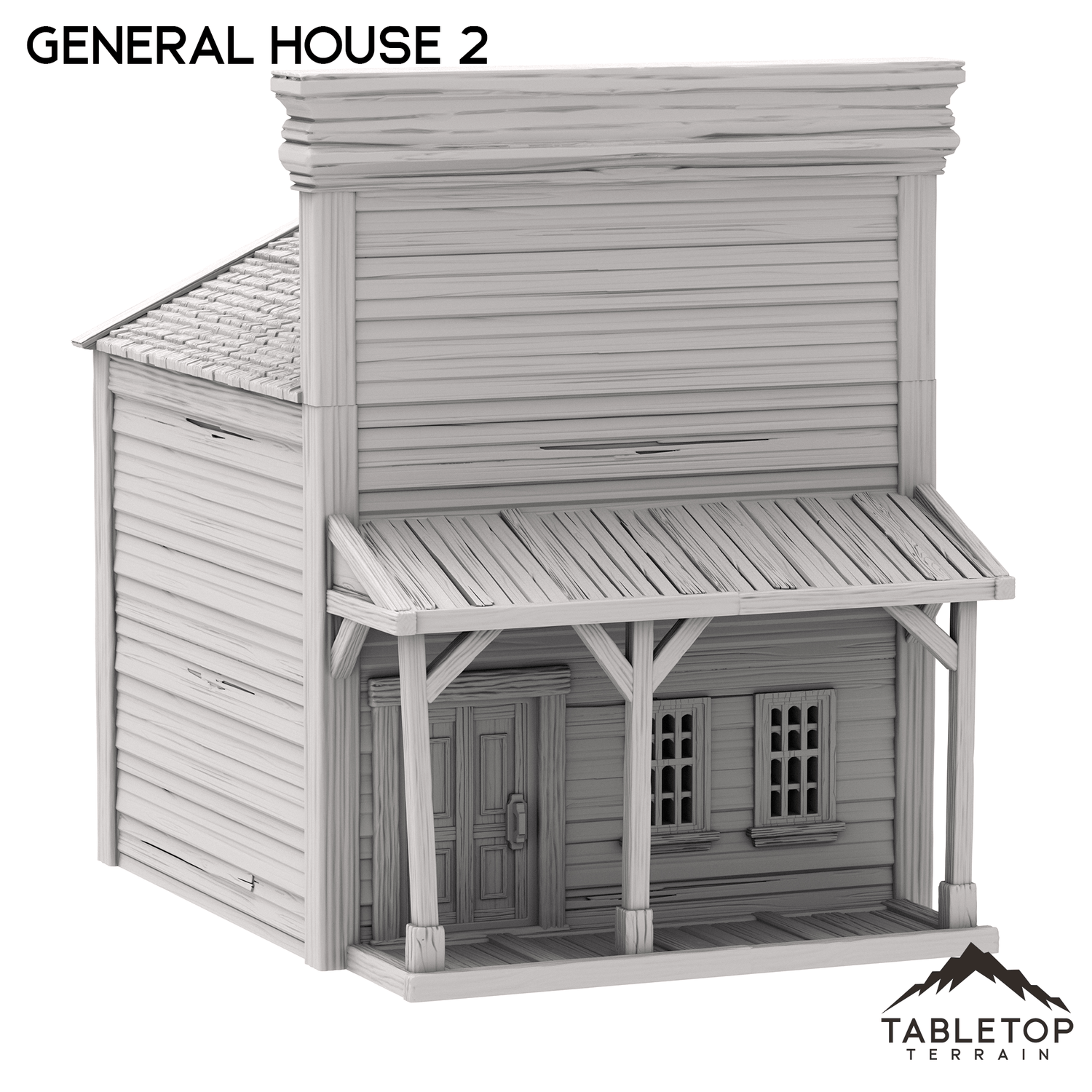 The Western General House 2 is a Old West style house. It has a removable roof for interior miniature placement.