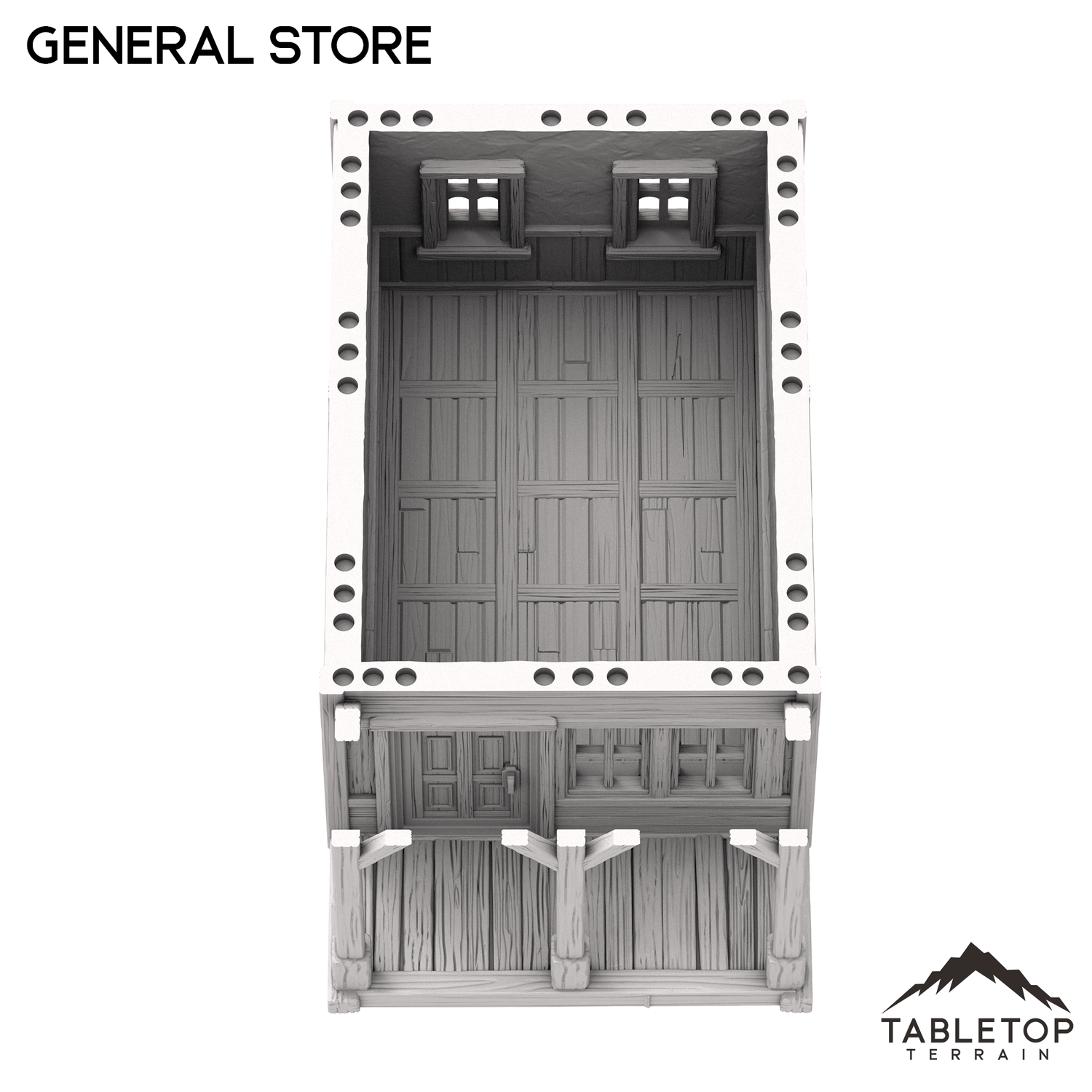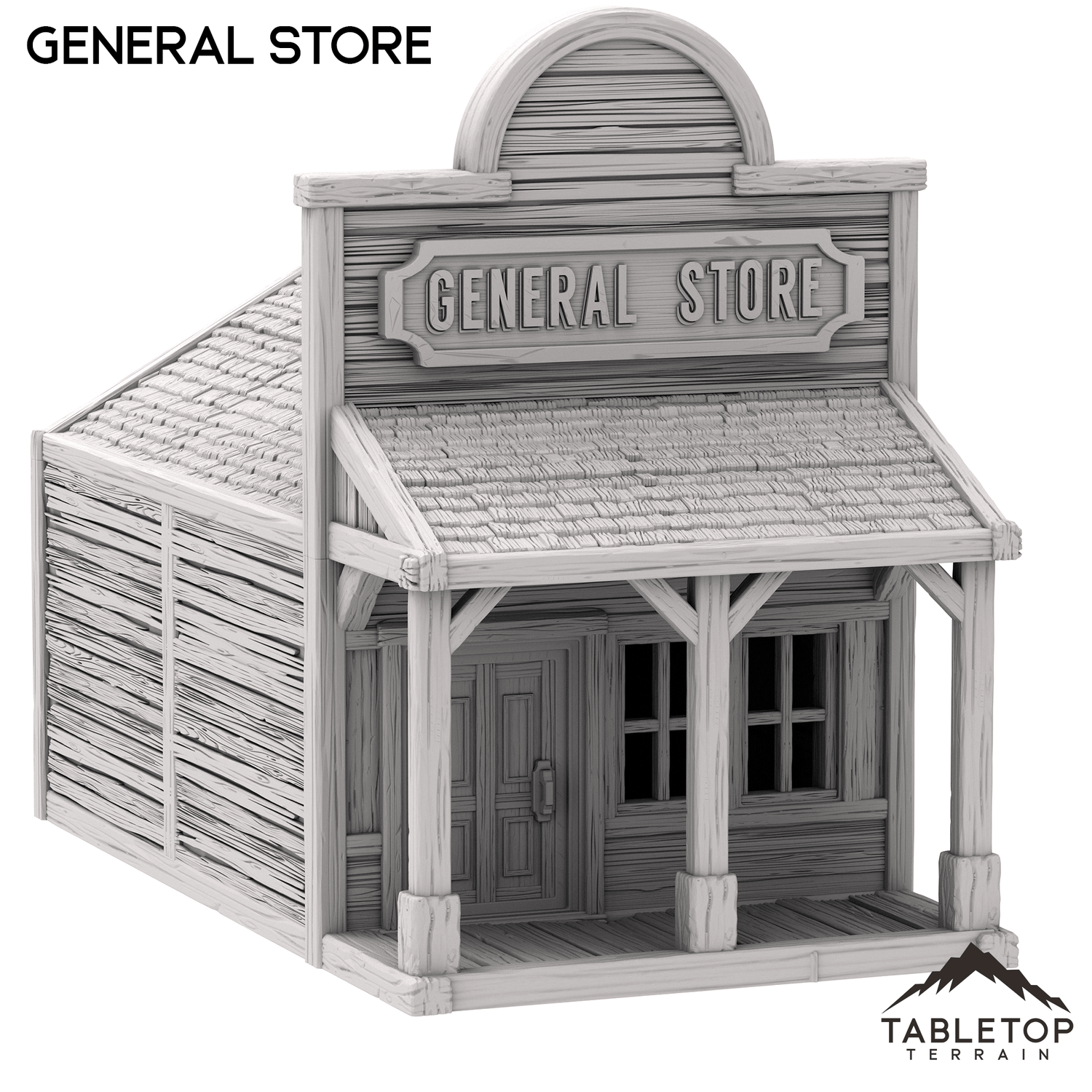 The Western General Store is a old West themed store. It has a removable roof for interior miniature placement.