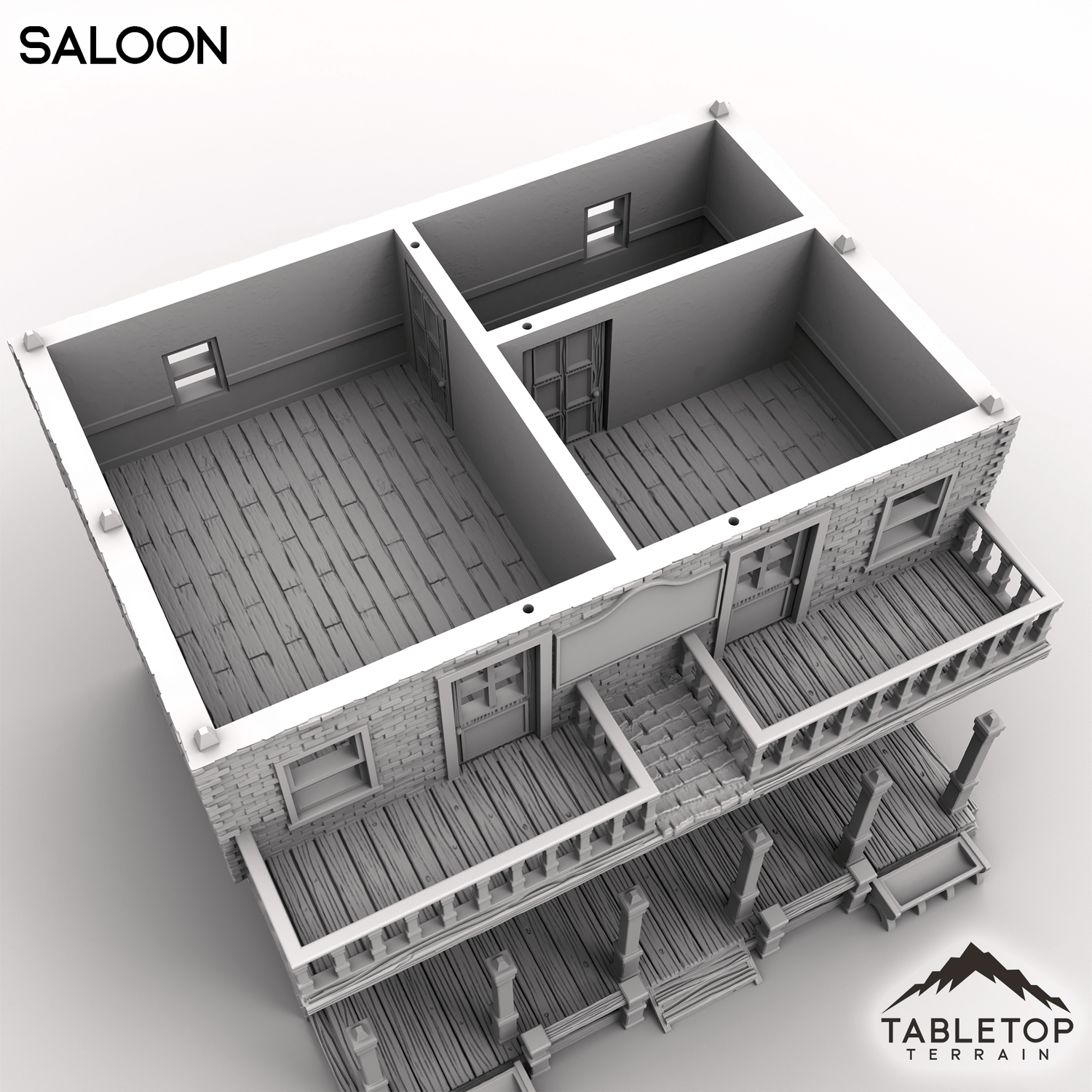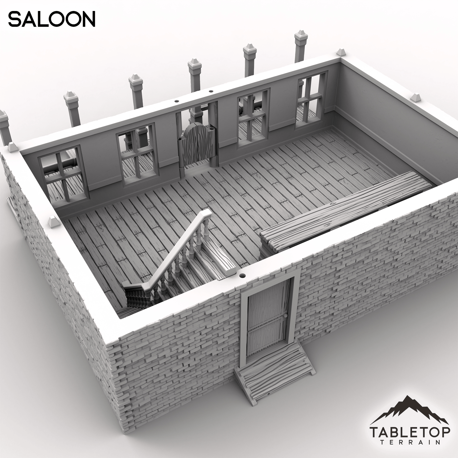 Dreadwood Saloon is a massive building featuring 2 full stories inside of useable play space, a long bar for the front, and a detailed porch. The town of Dreadwood features a wide range of highly functional buildings for making your own Wild West style town. Each building from Deadwood is made to be easy to paint, have working doors and open windows, designed to look good from the inside and out.