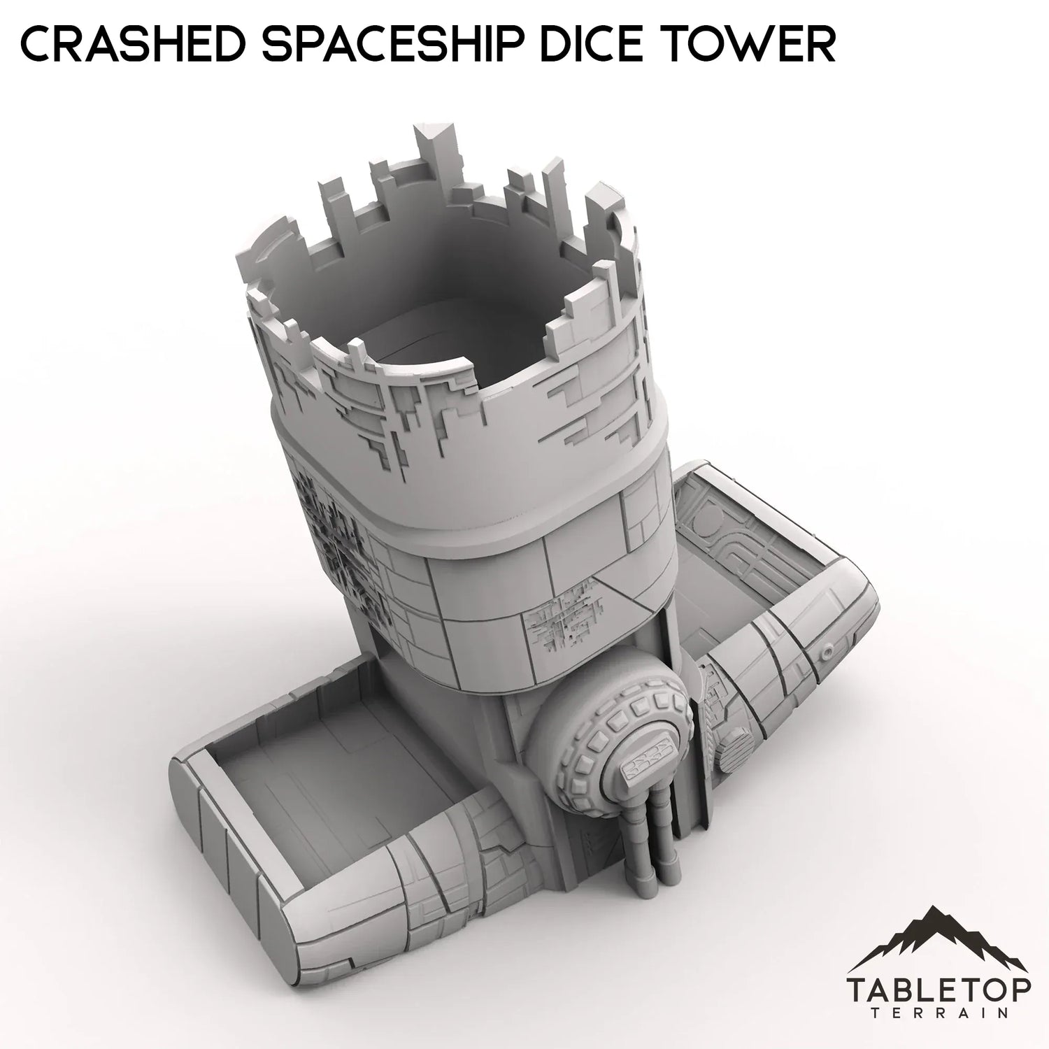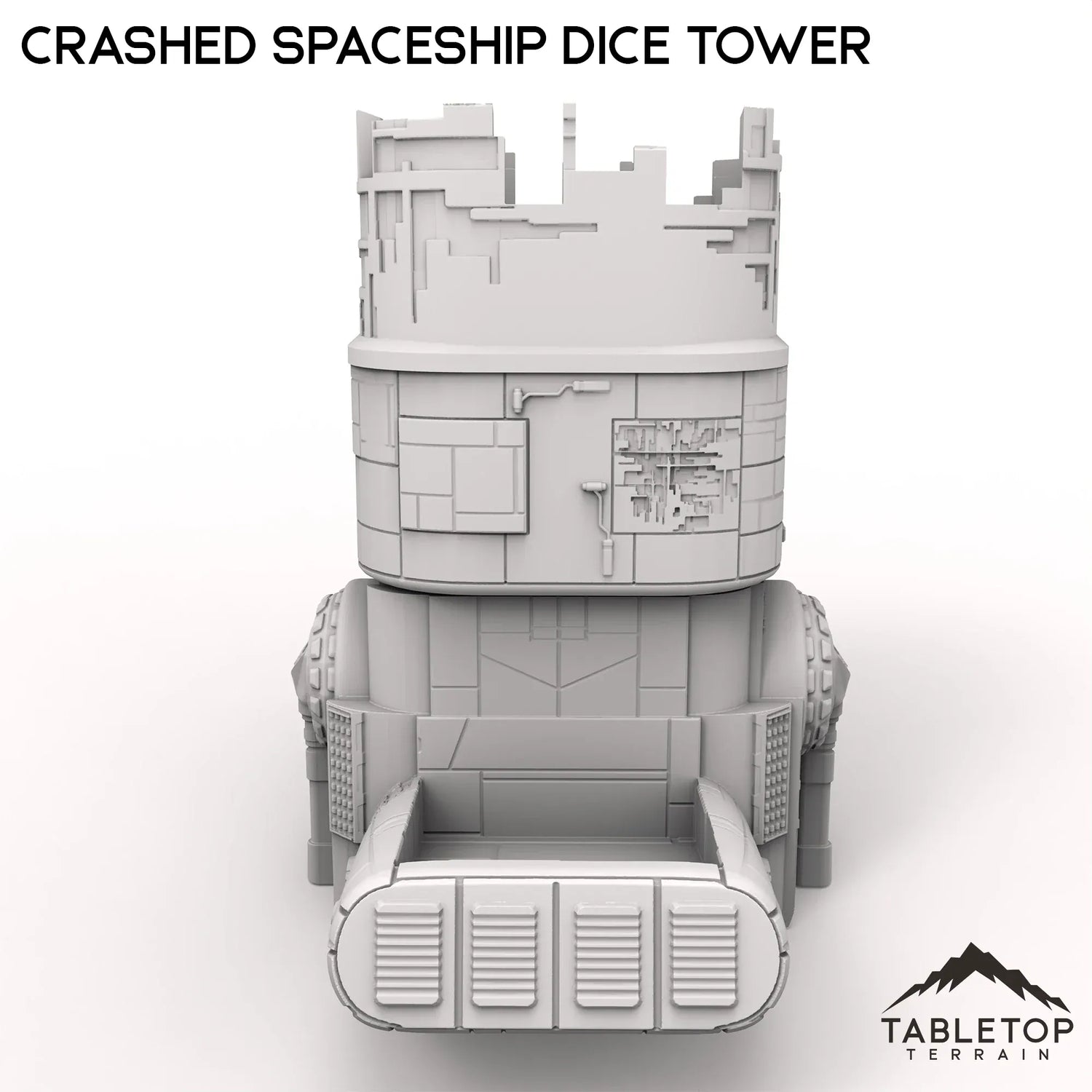 Abgestürzte Raumschiffe machen sich gut auf dem Tisch – im Gegensatz zu Würfeln, die überall auf dem Tisch verstreut sind. In diesem Sinne haben wir dieses Modell eines abgestürzten Raumschiffs entworfen, das auch als Würfelturm dient (mit zusätzlicher kleiner Ablage für Spielmarken, Drehregler oder ähnliches). Es wird mit OpenLOCK-Clips befestigt, kein Klebstoff erforderlich.
